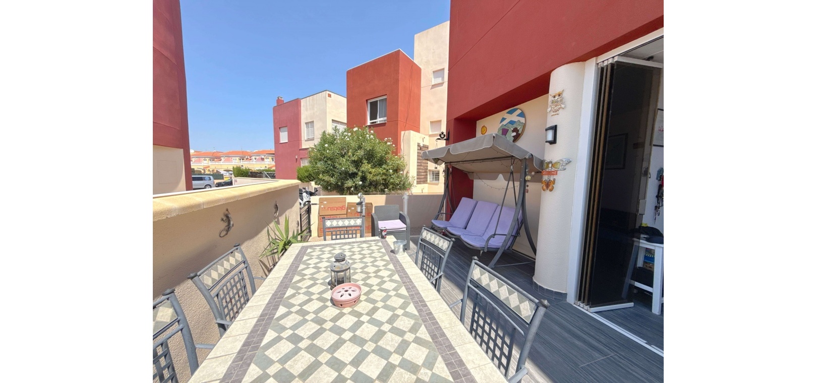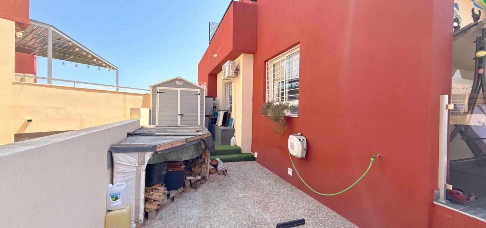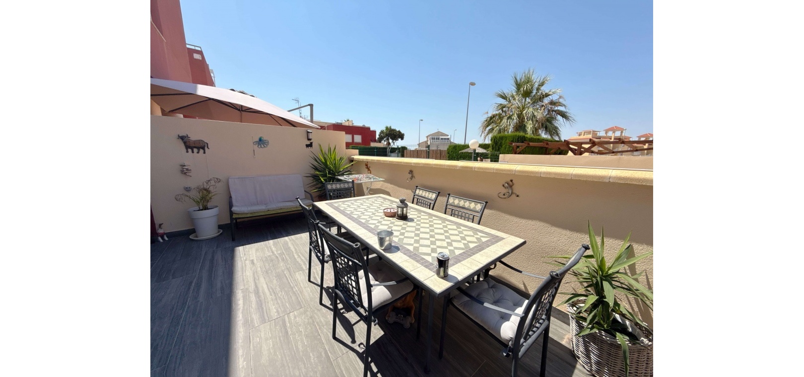 Das Highlight ist die großzügige Terrasse mit freiem Ausblick, die sich perfekt zum Essen, Entspannen oder Unterhalten eignet. Dieses Haus liegt in einer gepflegten Anlage und in der Nähe von Geschäften, Restaurants und Verkehrsanbindungen. Damit ist es die ideale Wahl für einen dauerhaften Wohnsitz, den Urlaub oder eine Investition.