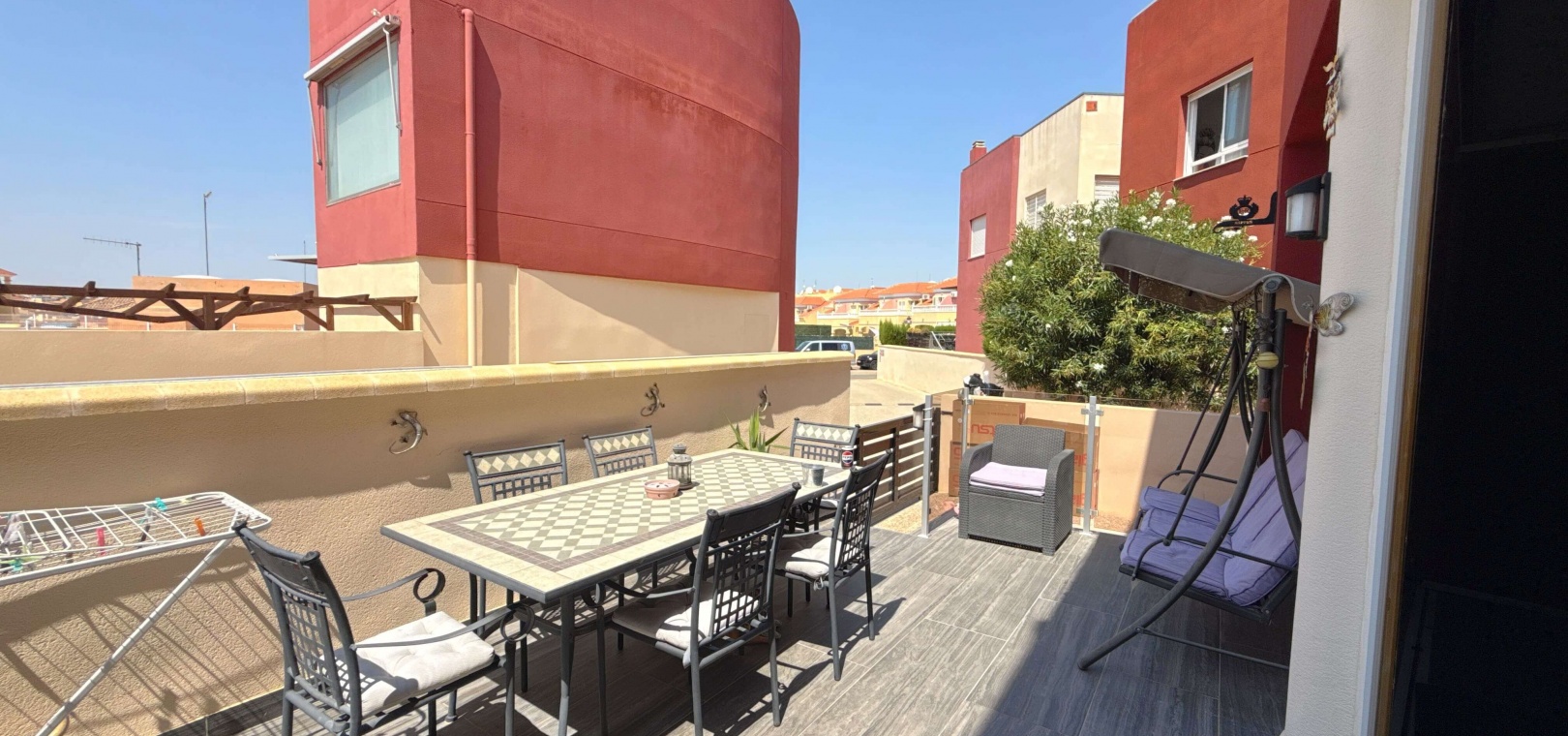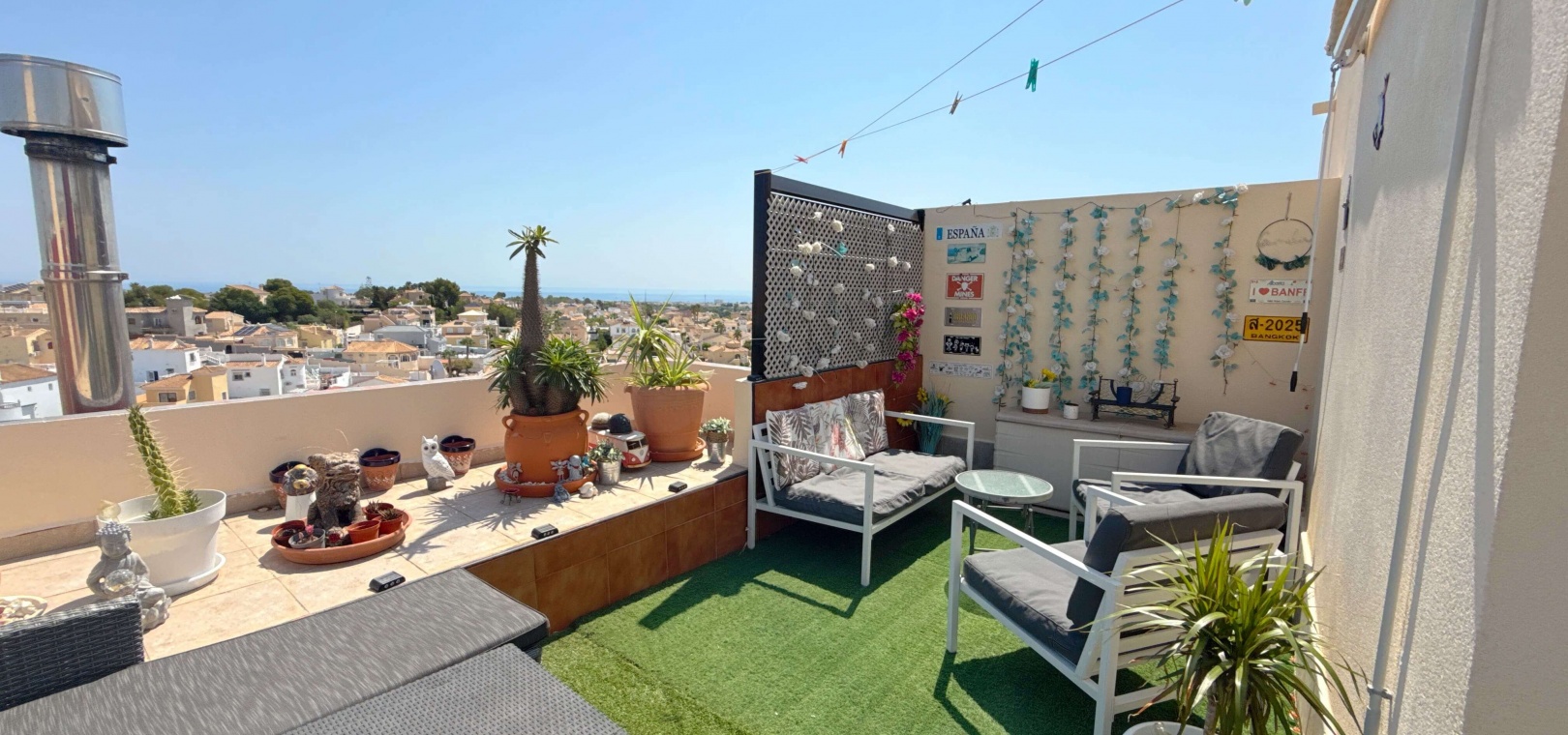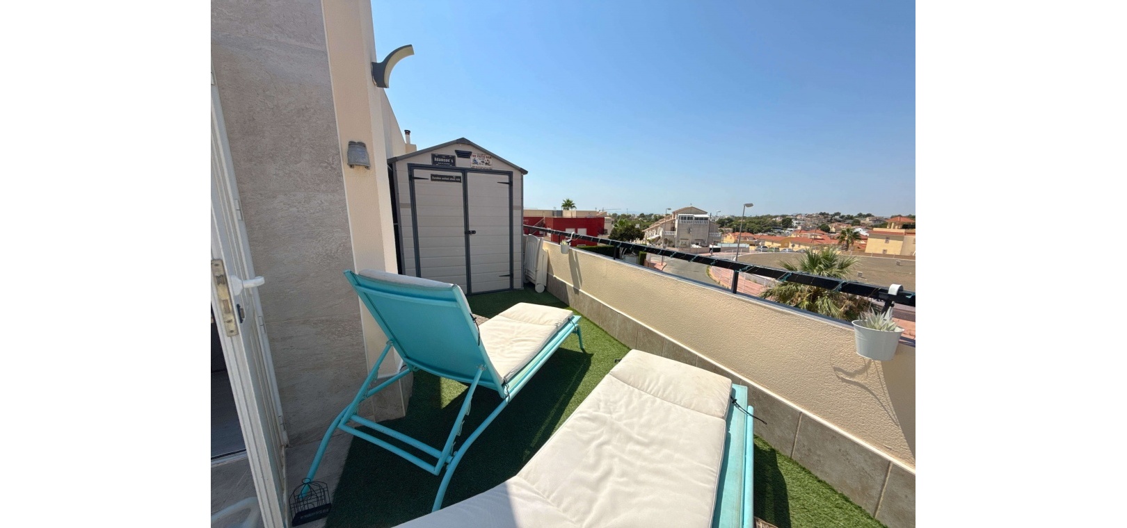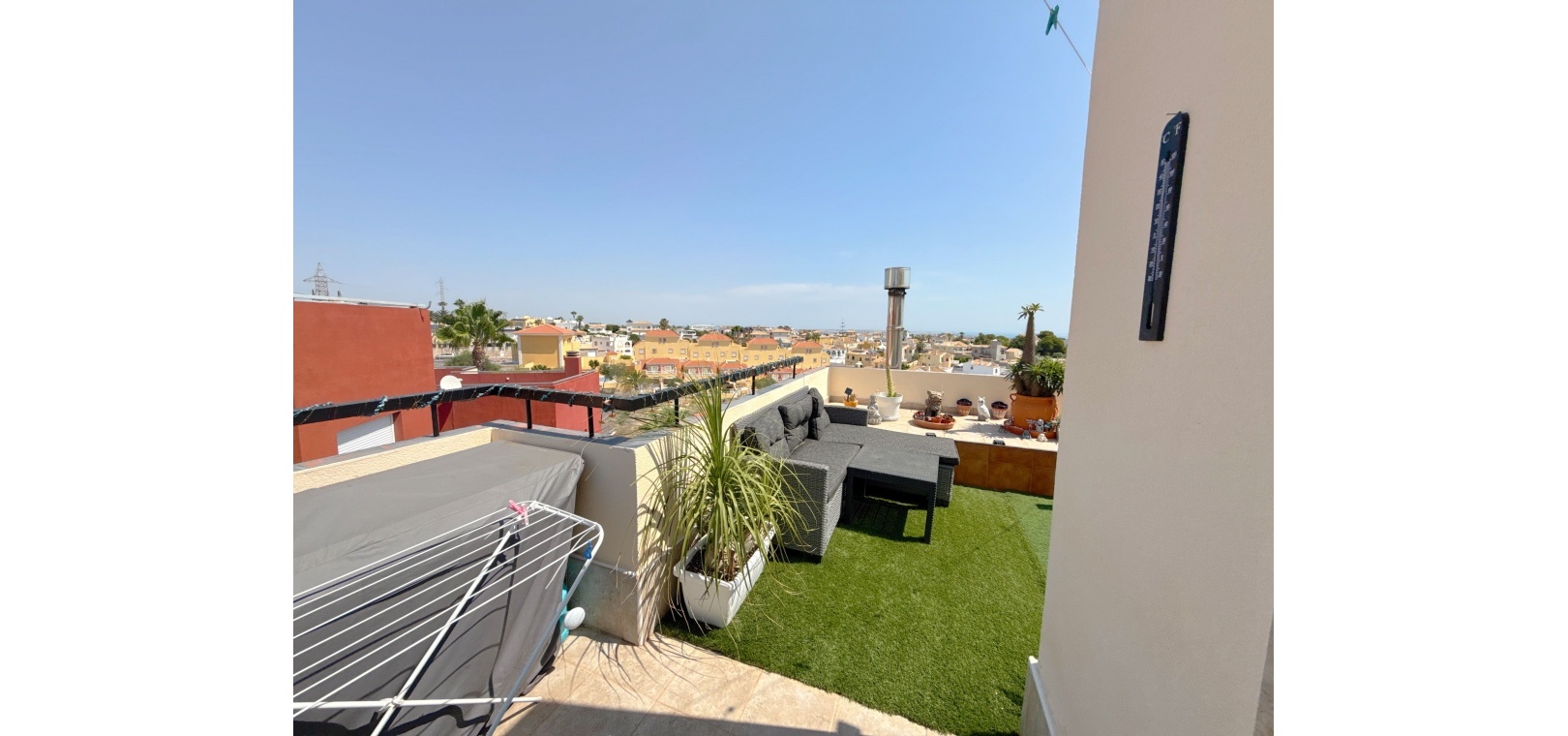 Das Highlight ist die großzügige Terrasse mit freiem Ausblick, die sich perfekt zum Essen, Entspannen oder Unterhalten eignet. Dieses Haus liegt in einer gepflegten Anlage und in der Nähe von Geschäften, Restaurants und Verkehrsanbindungen. Damit ist es die ideale Wahl für einen dauerhaften Wohnsitz, den Urlaub oder eine Investition.