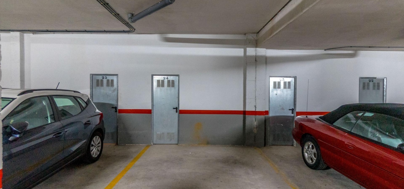 Es wird mit einem Parkplatz und einem Abstellraum in der Tiefgarage verkauft. Die Wohnanlage bietet einen Swimmingpool und angelegte Grünflächen.