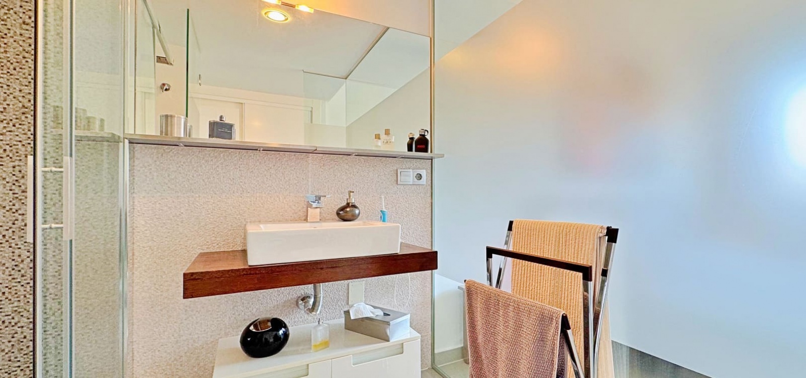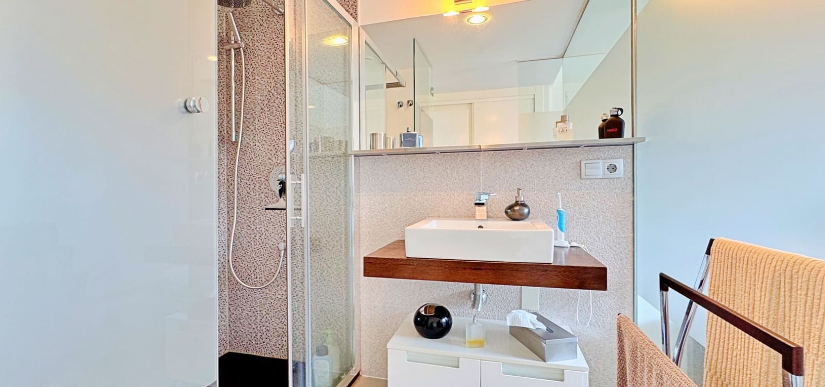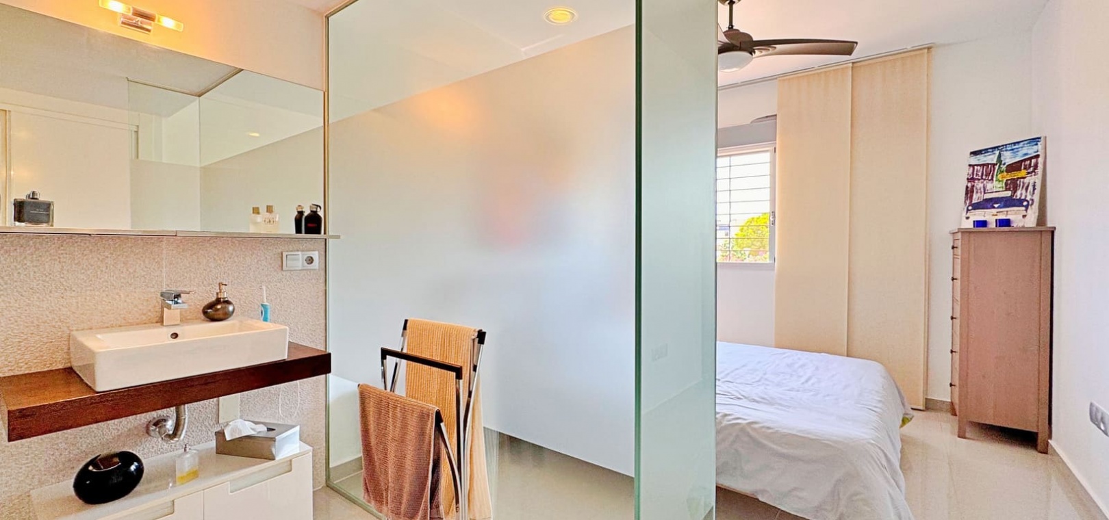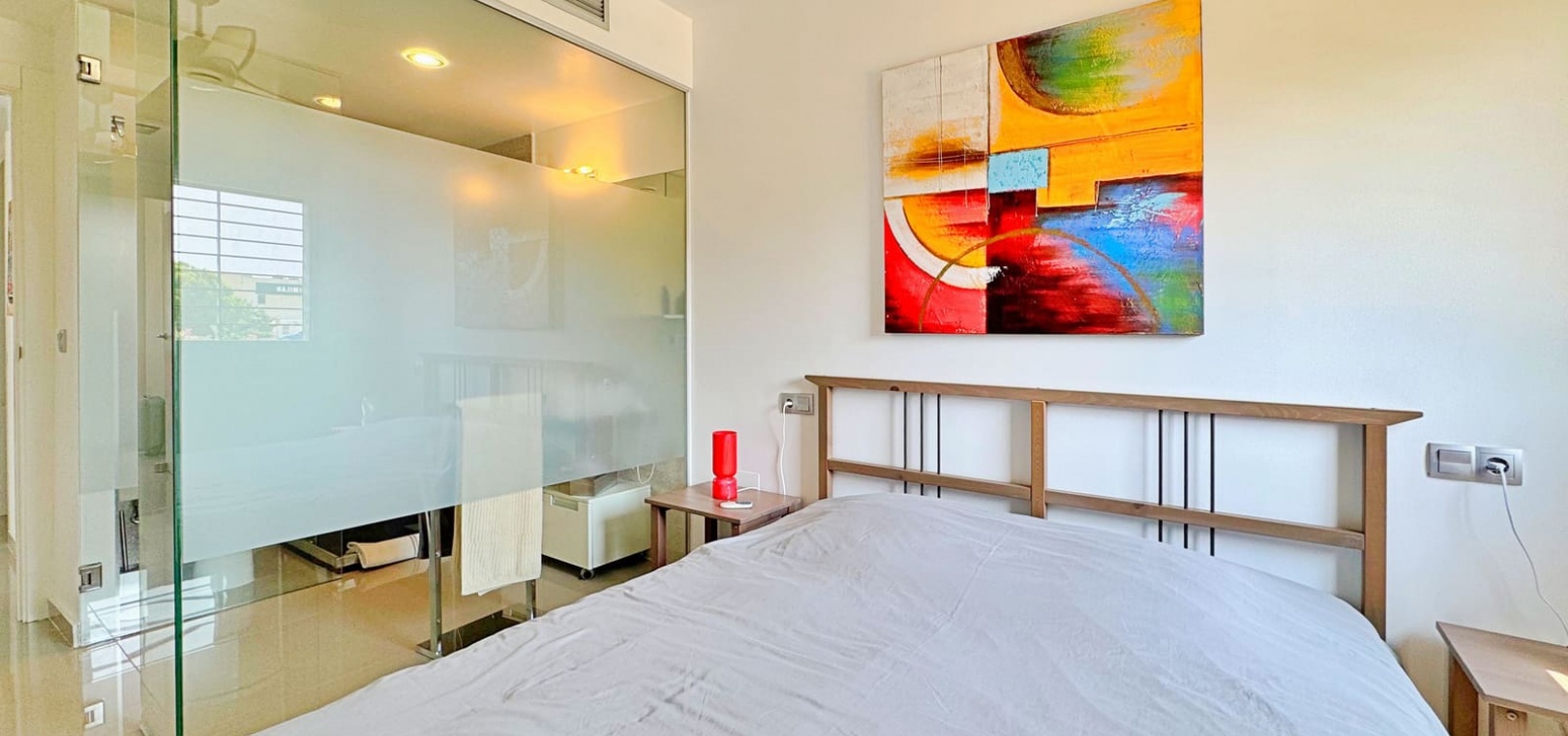 Dieses moderne Anwesen bietet zwei geräumige Schlafzimmer und zwei Badezimmer, die auf Funktionalität und Komfort ausgelegt sind. Zur Wohnung gehört ein privater Parkplatz innerhalb der geschlossenen Wohnanlage, der Komfort und Sicherheit gewährleistet.