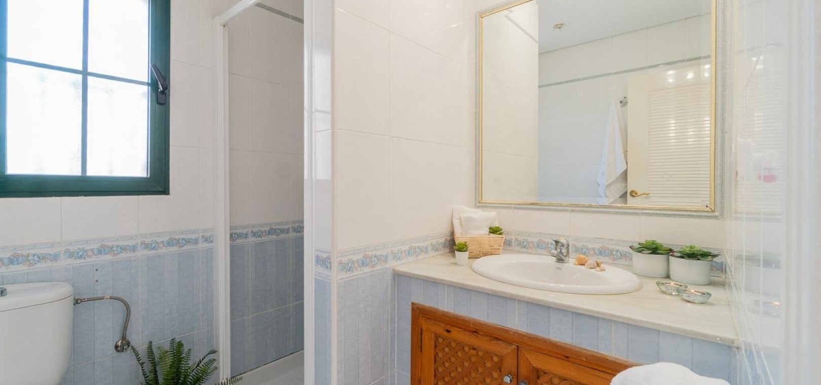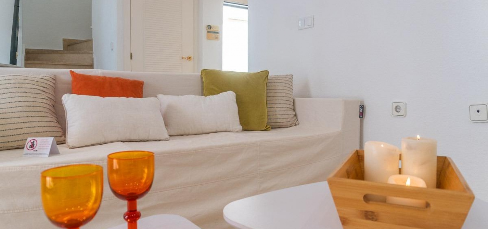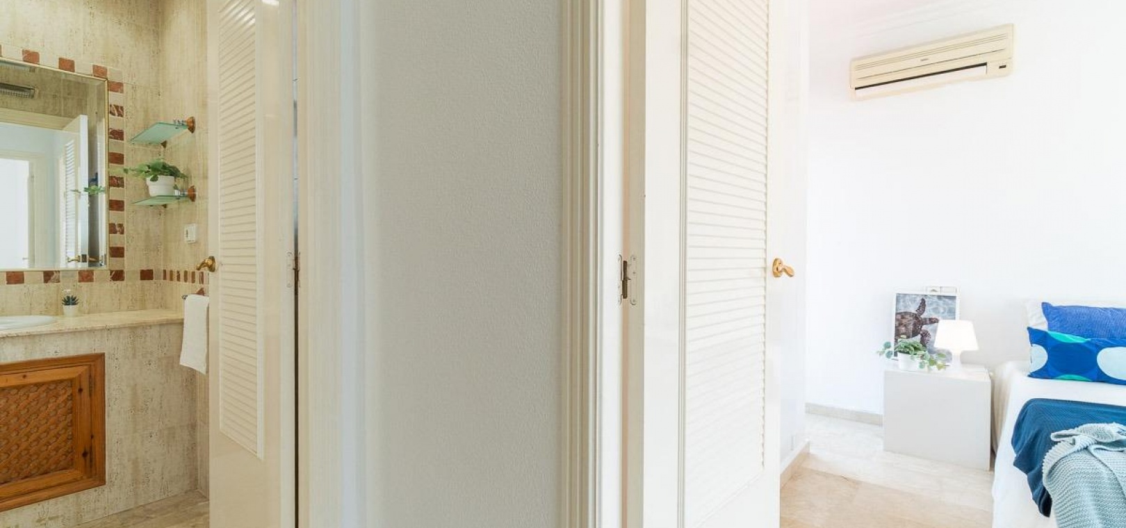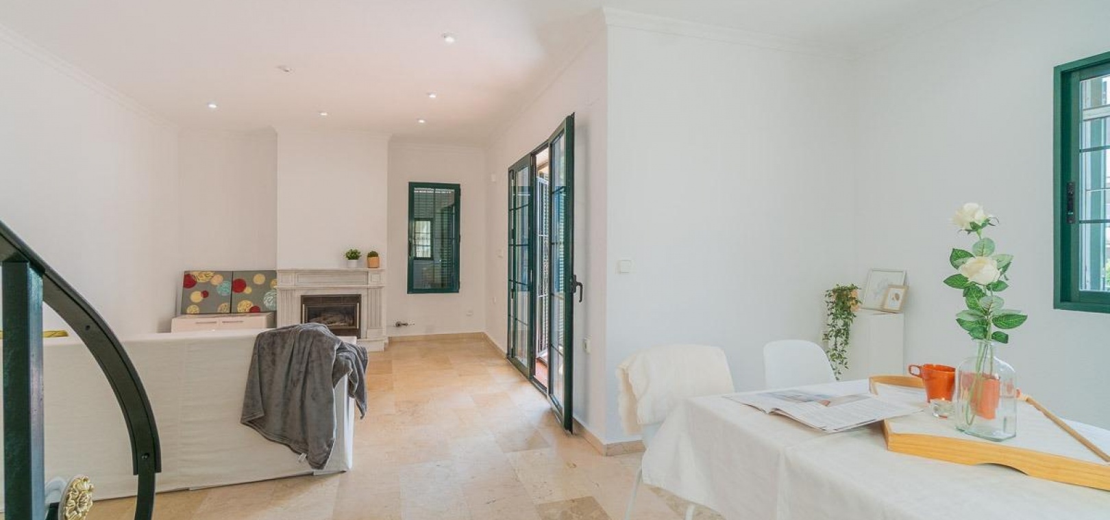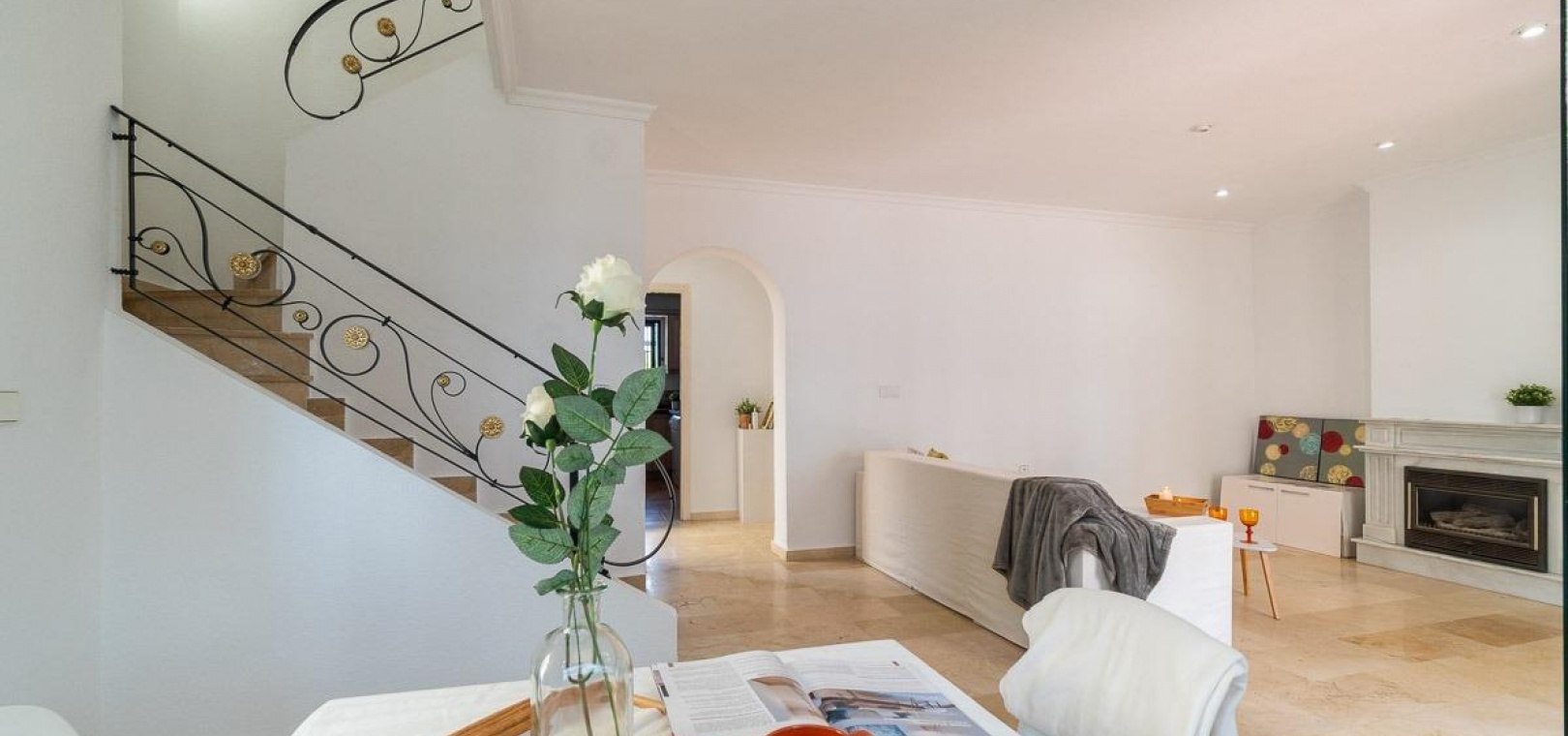 Erdgeschoss: Betreten Sie die Wohnung über eine sonnige Südterrasse, die sich ideal zum Essen im Freien oder Entspannen eignet. Im Inneren empfängt Sie ein heller und luftiger Wohn- und Essbereich mit gemütlichem Kamin. Eine separate, voll ausgestattete Küche ermöglicht komfortables Kochen, ohne den Rest des Hauses zu beeinträchtigen. Auf dieser Ebene befinden sich außerdem ein großes Doppelzimmer mit Einbauschränken und ein modernes Badezimmer mit ebenerdiger Dusche – ideal für Gäste oder Bewohner mit eingeschränkter Mobilität. Erster Stock: Eine breite, leicht zu begehende Treppe führt zu zwei weiteren geräumigen Schlafzimmern, beide mit Einbauschränken und direktem Zugang zu einer großzügigen Sonnenterrasse und einem Balkon – ideal, um die freie Aussicht und die mediterrane Brise zu genießen. Ein zweites Badezimmer mit Badewanne vervollständigt die obere Etage.