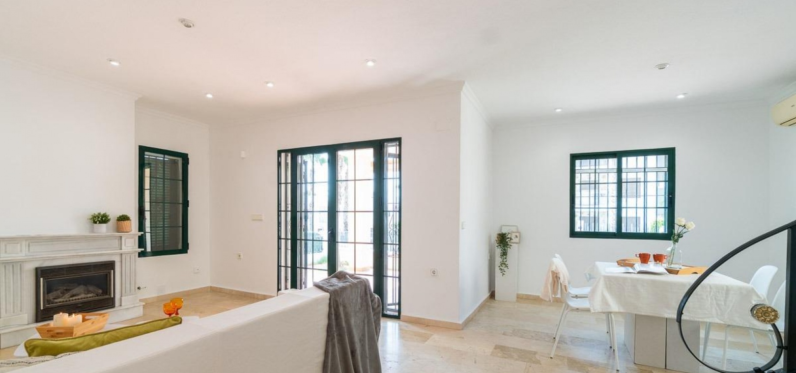 3 Schlafzimmer & 2 Badezimmer Privates 410 m² großes Grundstück mit pflegeleichten gefliesten Gärten (vorne und hinten) Privater Pool (renovierungsbedürftig) Zugang zum Gemeinschaftspool und Garten Südterrassen & Solarium – Sonne den ganzen Tag Geräumiges Wohnzimmer mit Kamin Separate Küche mit Tageslicht und Belüftung Parkplätze vor Ort mit Zufahrt für Fahrzeuge Ruhige und private Lage mit freier Aussicht