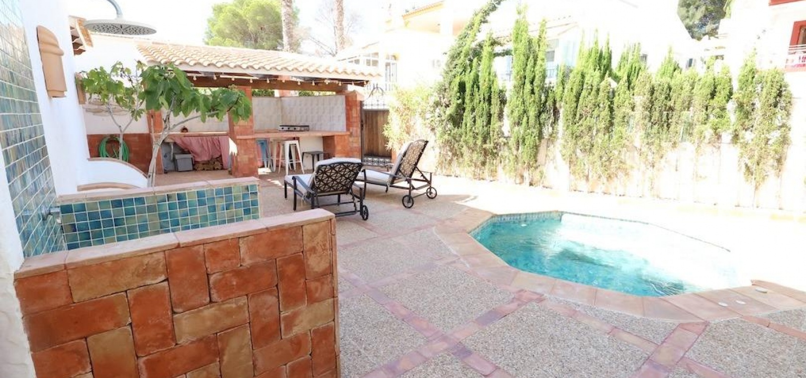 Geräumige, freistehende Villa in einer der besten Gegenden von Villamartín, nur wenige Schritte vom Eingang zum Golfplatz entfernt. Erbaut auf einem 240 m² großen Grundstück mit 189 m² Wohnfläche auf zwei Etagen plus Keller, bietet sie Komfort, Stil und eine hervorragende Ausrichtung.