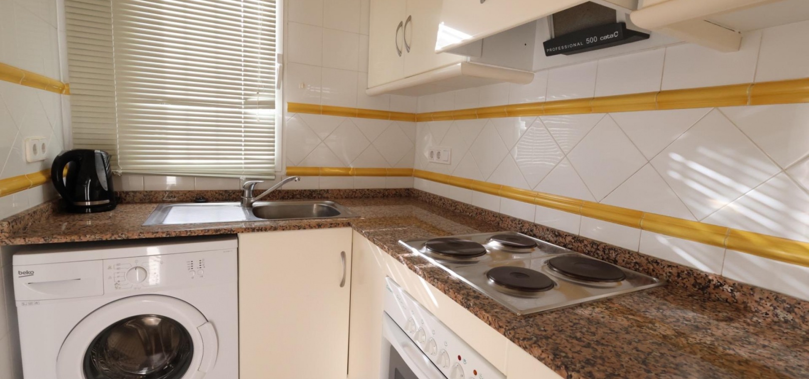 2 habitaciones dobles espaciosas 1 baño completo Cocina abierta conectada al salón-comedor. Luminoso salón con acceso a una terraza con vistas a la piscina comunitaria. Jardín privado en planta baja con trastero.
