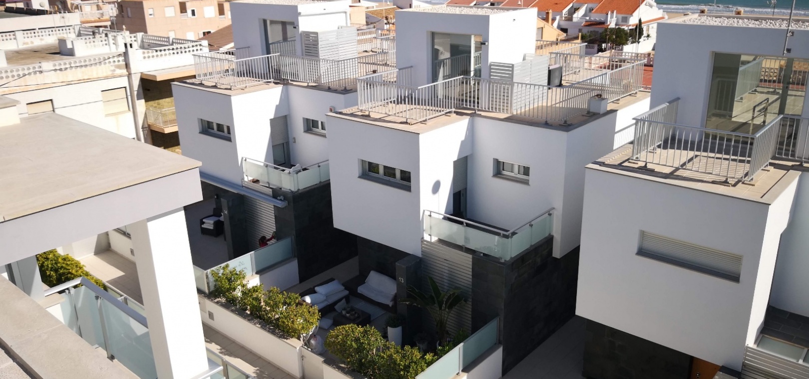 Immobilienübersicht Wir freuen uns, Ihnen diese Luxusimmobilie in Guardamar del Segura zum Verkauf anbieten zu können, die nur 250 Meter vom Strand entfernt liegt. Dieses fast neue Haus bietet eine perfekte Mischung aus modernem Design und einer privilegierten Lage und ist bezugsfertig – ziehen Sie sofort ein und beginnen Sie, den mediterranen Lebensstil zu genießen. Mit ca. 200 m² Wohnfläche auf drei Ebenen bietet die Residenz vier Schlafzimmer und vier Badezimmer, eine private Sonnenterrasse mit Meerblick und eine sichere Tiefgarage mit Platz für zwei Autos plus zusätzlichem Lagerraum. Immobilien dieses Standards so nah am Meer sind sehr gefragt, was dies zu einer außergewöhnlichen Gelegenheit an der Costa Blanca Süd macht. Innenausstattung Zeitgenössische Wohnräume Das Erdgeschoss öffnet sich zu einem hellen und geräumigen offenen Wohn- und Essbereich, wo große Fenster eine einladende, mit natürlichem Licht gefüllte Atmosphäre schaffen. Die moderne Küche ist komplett ausgestattet und mit stilvollen Materialien verarbeitet, die sowohl Funktionalität als auch Eleganz bieten. Schlafzimmer und Badezimmer Dieses Haus umfasst vier großzügige Schlafzimmer, die auf Komfort und Flexibilität ausgelegt sind. Die Master-Suite im oberen Stockwerk hat direkten Zugang zur privaten Sonnenterrasse mit beeindruckendem Blick auf das Mittelmeer. Insgesamt bietet das Anwesen vier gut ausgestattete Badezimmer, jedes mit modernen Armaturen und Oberflächen gestaltet, um sowohl Stil als auch Komfort zu gewährleisten. Potenzial im Untergeschoss Das Untergeschoss bietet einen großen, vielseitig nutzbaren Raum mit direktem Zugang zu einer Terrasse. Obwohl es derzeit nicht als Gästeapartment genutzt wird, bietet es hervorragendes Potenzial, es je nach Ihren Lebensstilanforderungen für Besucher, als zusätzlichen Wohnraum oder sogar als privates Büro umzubauen. Komfort und Ausstattung Das Anwesen verfügt über eine Klimaanlage für ganzjährigen Komfort und wurde durchgehend unter Verwendung hochwertiger Materialien gebaut. Jedes Detail wurde sorgfältig bedacht, um ein modernes, funktionales und luxuriöses Wohnumfeld zu schaffen. Leben im Freien und Annehmlichkeiten Diese Residenz ist darauf ausgelegt, das Leben im Freien zu maximieren. Das private Solarium ist das herausragendste Merkmal und bietet Meerblick und Sonnenschein den ganzen Tag über. Zusätzliche Terrassen bieten Platz für Mahlzeiten im Freien oder einfach zum Entspannen an der frischen Küstenluft. Innerhalb der Anlage können die Bewohner auch einen großen Swimmingpool und eine geräumige Sonnenterrasse nutzen, die sich perfekt zum Abkühlen oder für geselliges Beisammensein im mediterranen Klima eignen. Erstklassige Lage in Guardamar del Segura. Das Anwesen liegt nur 250 Meter von den Sandstränden entfernt und in Gehweite der Promenade, Geschäfte, Restaurants und des Stadtzentrums von Guardamar. Guardamar del Segura ist berühmt für seine mit der Blauen Flagge ausgezeichneten Strände, natürlichen Dünen und Pinienwälder und bietet eine entspannte und malerische Umgebung. Für Golfer liegen Plätze wie La Marquesa und La Finca Golf in der Nähe. Da der Flughafen Alicante nur 30 Minuten entfernt ist, ist dies auch ein praktischer Standort für internationale Reisen, Wochenendausflüge oder den Empfang von Gästen. Investitions- und Lifestyle-Potenzial Moderne, schlüsselfertige Häuser in Guardamar del Segura sind sehr gefragt. Diese Immobilie ist sofort bezugsfertig und somit ein problemloser Kauf für Käufer, die ohne Renovierung oder Verzögerungen einziehen möchten. Seine Lage und sein Design bieten auch ein starkes Potenzial als Investition zur Ferienvermietung und sind attraktiv für Besucher, die in Strandnähe bleiben und gleichzeitig ein luxuriöses Ambiente genießen möchten. Ob als Familienhaus, Zweitwohnsitz oder renditebringende Immobilie, dieses Haus bietet sowohl Lifestyle als auch Wert. Ihr lokaler Immobilienmakler in Guardamar del Segura. Dieses luxuriöse Anwesen mit 4 Schlafzimmern und 4 Bädern in Strandnähe in Guardamar del Segura bietet das Beste des modernen mediterranen Wohnens. Als Ihr lokaler Immobilienmakler in Guardamar del Segura begleiten wir Sie durch jeden Schritt des Kaufprozesses. Kontaktieren Sie uns noch heute, um einen Besichtigungstermin zu vereinbaren und dieses außergewöhnliche Zuhause zu erwerben.