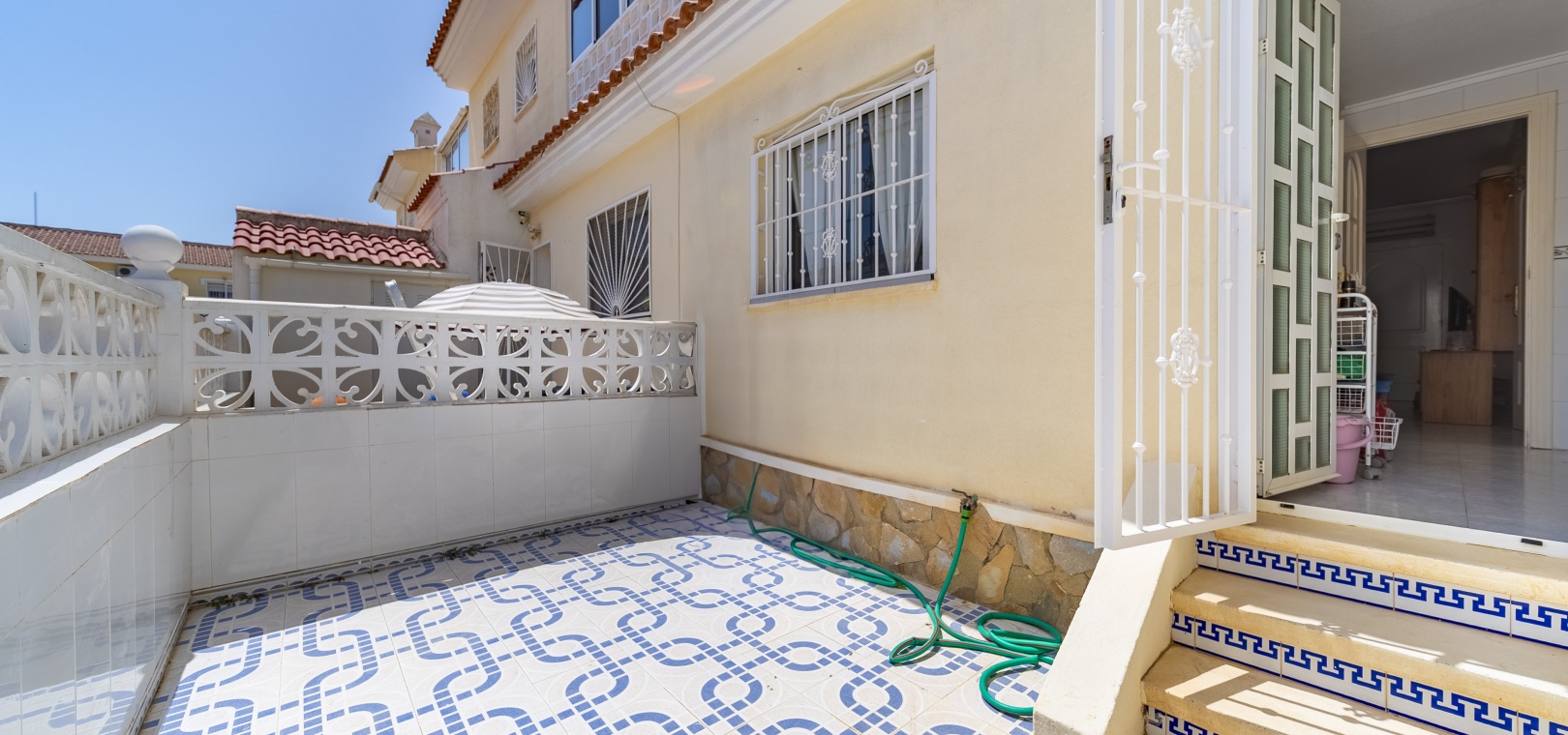 Dieses charmante Stadthaus liegt in einer ruhigen Wohngegend von Doña Pepa, Ciudad Quesada, und bietet 101 m² Wohnfläche sowie einen 50 m² großen Garten . Es erstreckt sich über zwei Etagen und verfügt über 3 Schlafzimmer (eines im Erdgeschoss), 2 Badezimmer , eine separate Küche mit Zugang zur hinteren Terrasse und mehrere Terrassen mit freier Aussicht , darunter eine mit Blick auf den Gemeinschaftspool .