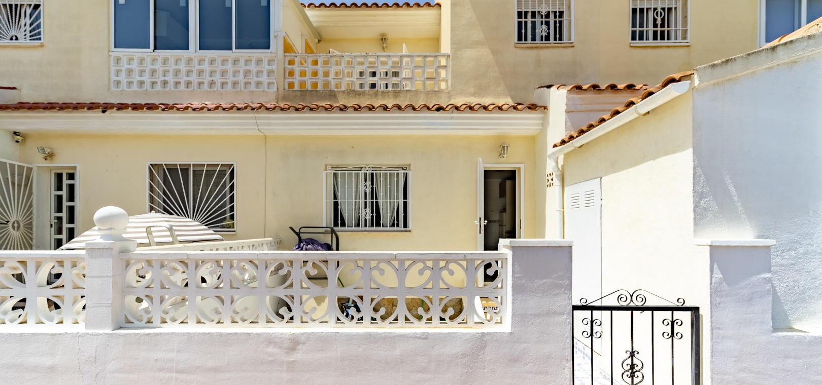 3 Schlafzimmer (1 im Erdgeschoss) und 2 Badezimmer 101 m² gebaut / 50 m² Garten Ost- und Westausrichtung Separate Küche mit Zugang zur hinteren Terrasse Vordere, hintere und obere Terrassen mit freier Aussicht Klimaanlage im Wohnzimmer und Hauptschlafzimmer Möbliert und ausgestattet Abstellraum Gemeinschaftspool und Parkplatz Baujahr: 2004