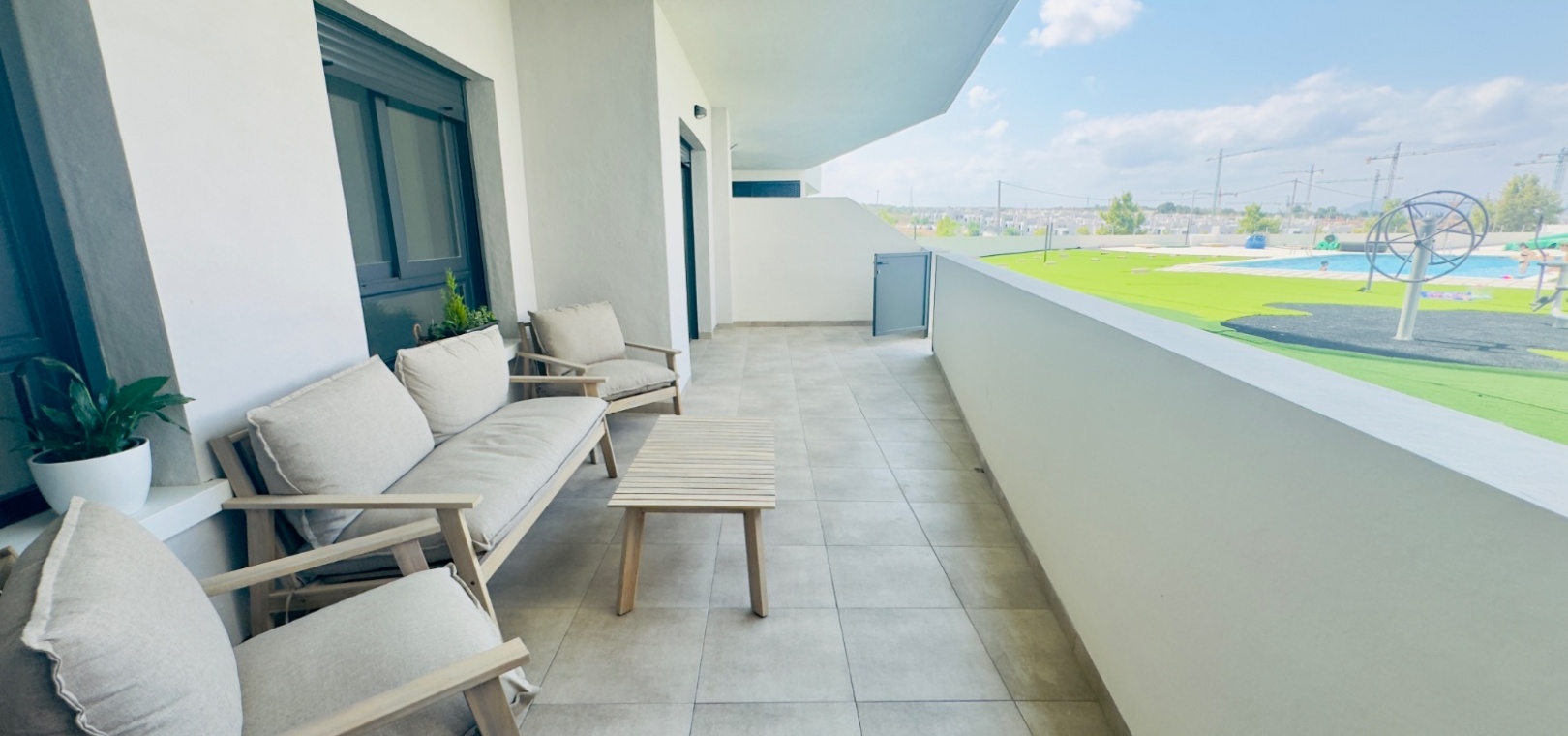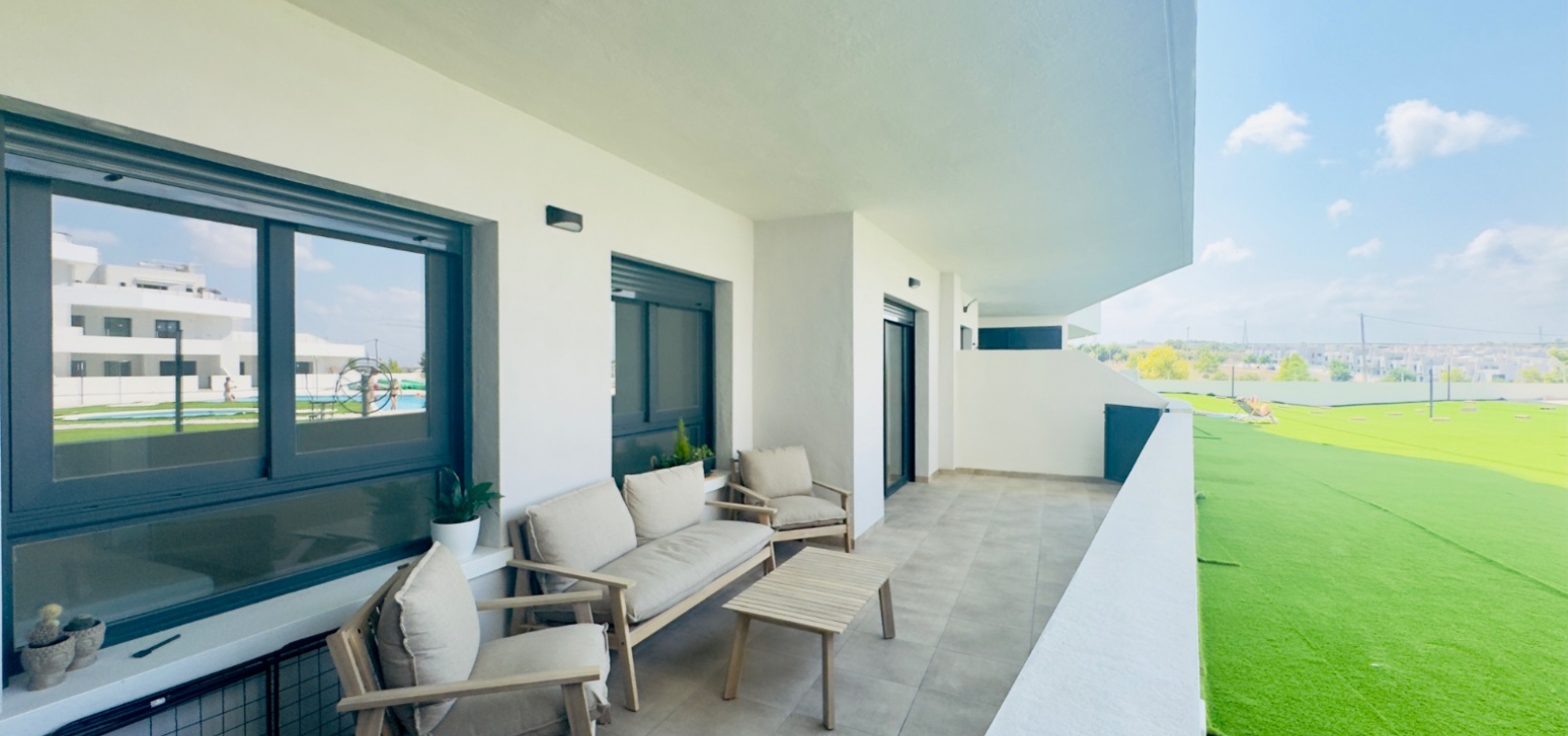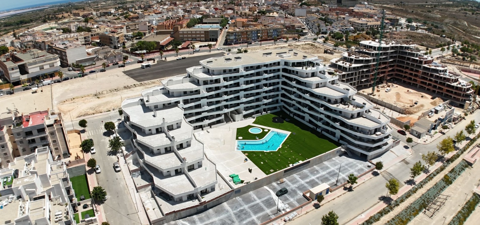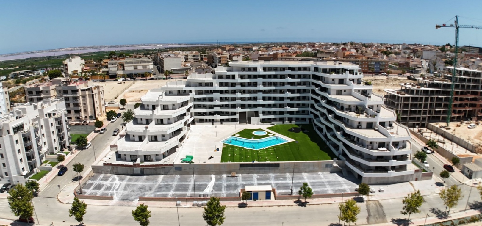 Vollständig abgeschlossene Wohnanlage mit Gemeinschaftspools für Erwachsene und Kinder, Grünflächen, Kinderspielplatz und einem Erwachsenenbereich mit Bio-Fitness-Parcours. Gelegen an der Costa Blanca in San Miguel de Salinas, in der Nähe von Golfplätzen, Stränden und Einkaufszentren.