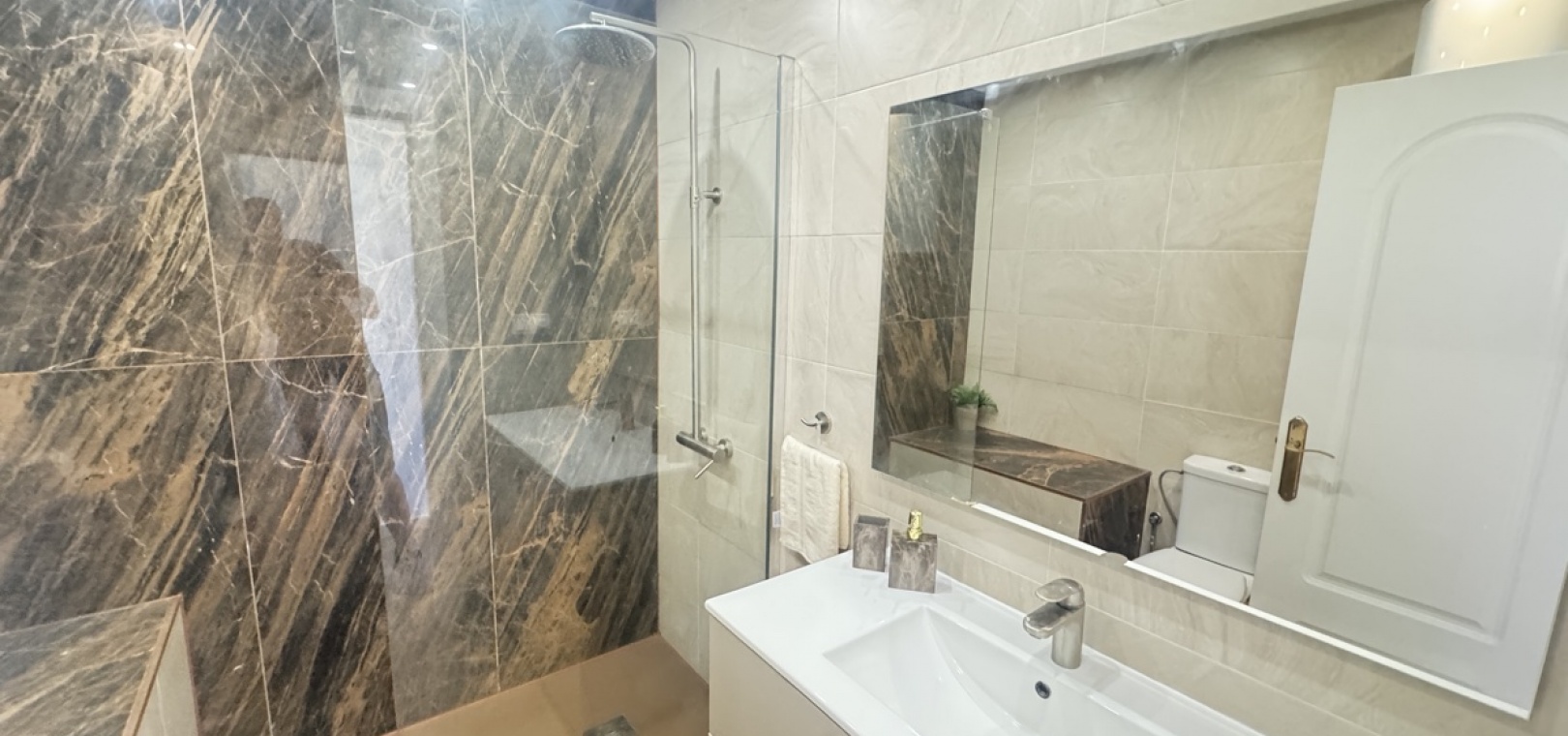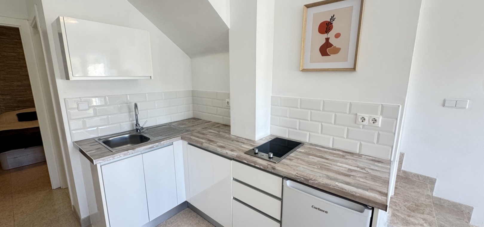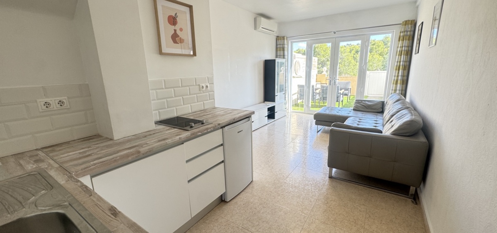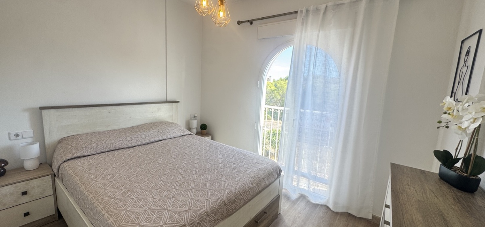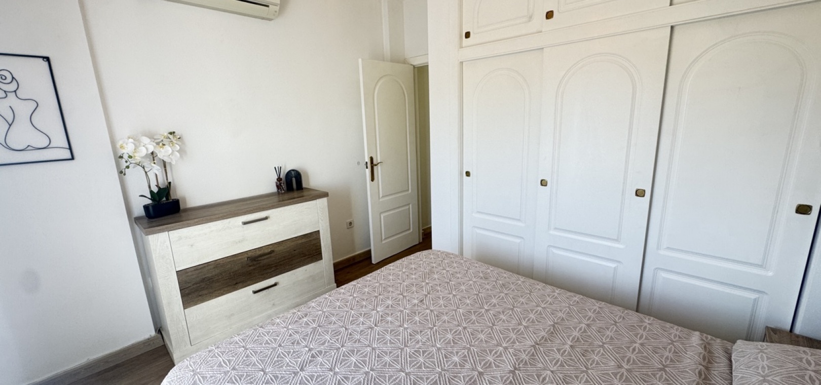 Drei Wohnebenen – flexible Aufteilung für Familie oder Gäste Option für ein abgeschlossenes Apartment im Untergeschoss mit Schlafzimmer, Küche, Bad und Wohnzimmer – ideal für Besucher oder zur Vermietung Moderne, voll ausgestattete Küche im mittleren Stockwerk, offen zum Wohnzimmer Zwei Schlafzimmer im Obergeschoss , eines davon mit direktem Zugang zum Balkon und zum privaten Solarium auf dem Dach Gemeinschaftspool zu Fuß erreichbar Sofort bezugsfertig – sofortiger Bezug möglich