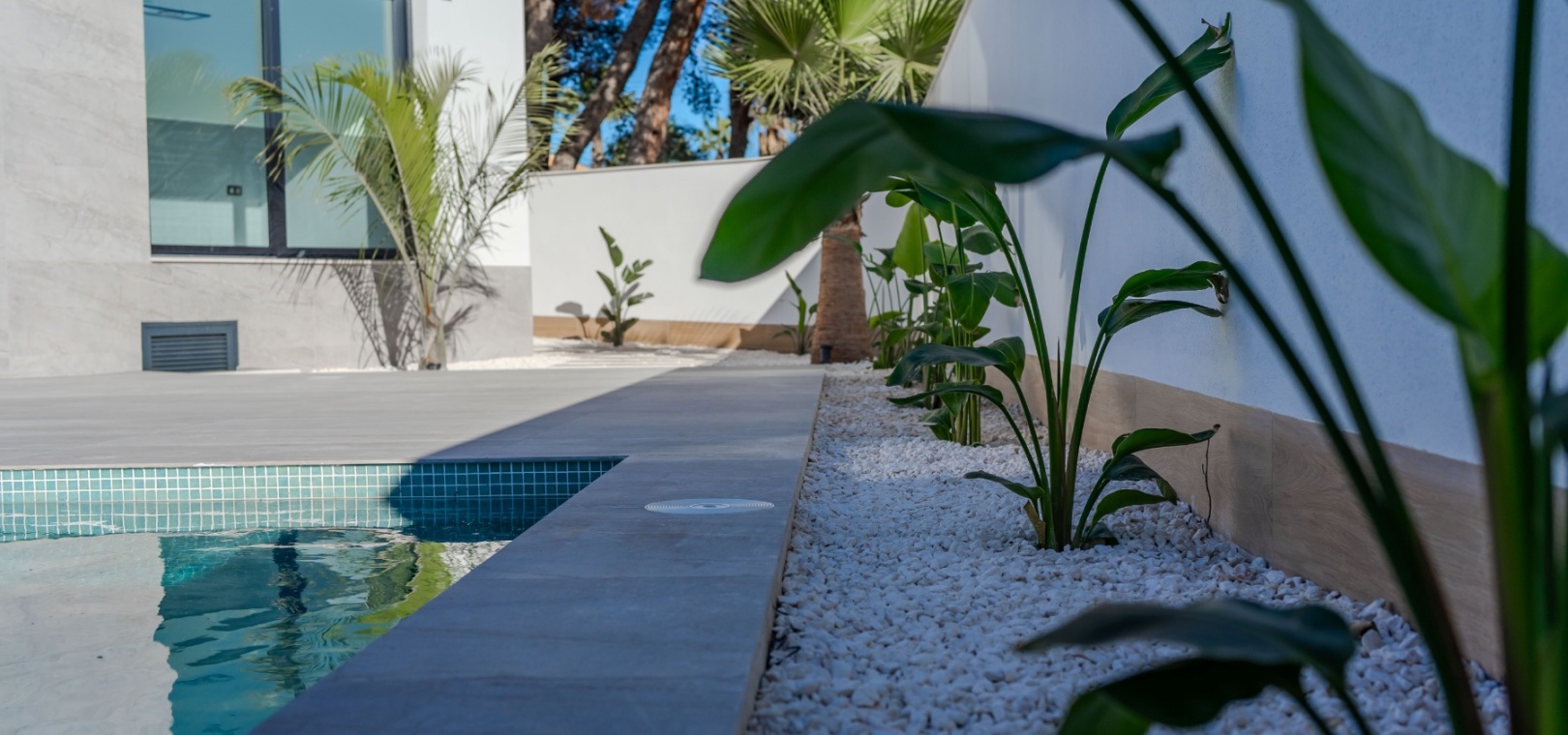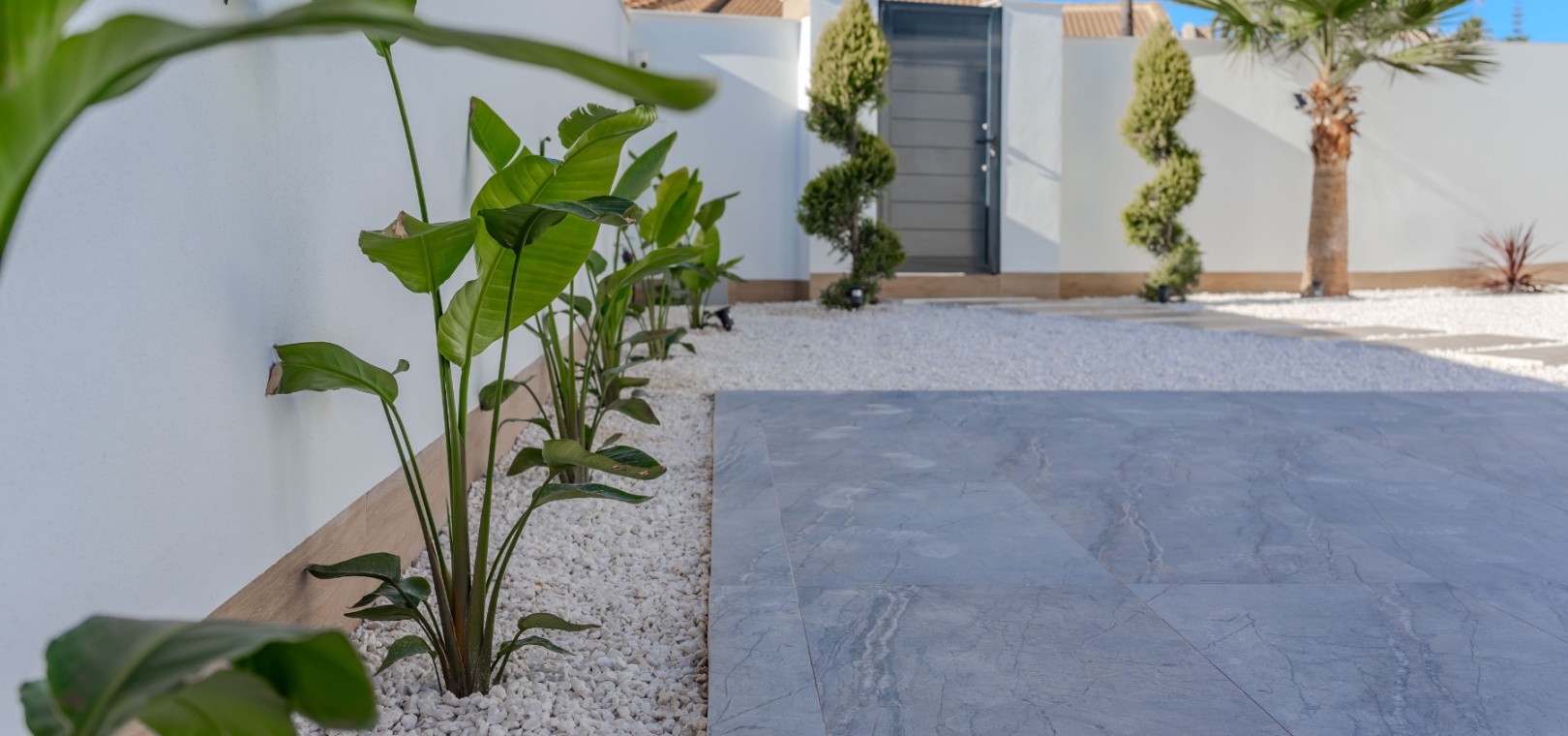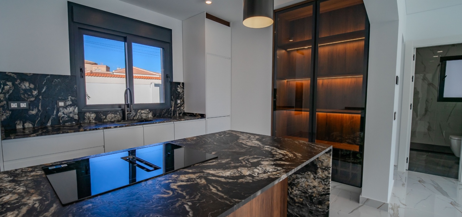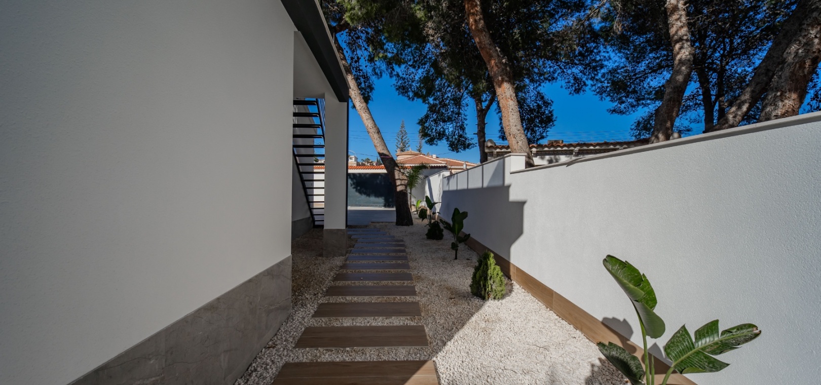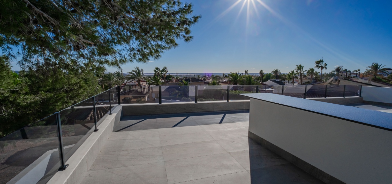 Atemberaubende, komplett sanierte Bungalowvilla in Ciudad Quesada (Alicante) – Die perfekte Verbindung von modernem Luxus und mediterraner Eleganz. In der begehrten Gegend von Ciudad Quesada (Alicante) und nur wenige Schritte vom lebhaften Stadtzentrum entfernt, wurde diese exquisite Bungalowvilla mit außergewöhnlicher Liebe zum Detail komplett saniert. Traditioneller mediterraner Charme trifft auf ein modernes, elegantes Design. Das Anwesen bietet Luxus, Komfort und Privatsphäre in einer der begehrtesten Lagen der Costa Blanca. Auf einem 650 m² großen Privatgrundstück gelegen, bietet die Villa 180 m² wunderschön gestaltete Wohnfläche und ist bezugsfertig. Die Ausstattung entspricht höchsten Standards – hier wurde an nichts gespart. Außenbereich: Hinter dem elektrischen Einfahrtstor erwartet Sie ein stilvoller, pflegeleichter mediterraner Garten, der das Haus perfekt einrahmt. Der private Swimmingpool grenzt an großzügige Terrassen, die zum Sonnenbaden, Essen oder für gesellige Stunden einladen. Das beeindruckende, große Solarium auf dem Dach bietet einen weiten Ausblick und einen exklusiven Bereich zum Entspannen, für Feiern oder um das milde Mikroklima von Alicante zu genießen. Raumaufteilung: Das Interieur besticht durch ein helles, offenes Raumkonzept mit viel Tageslicht. Vier bis fünf geräumige Schlafzimmer, alle als Suiten gestaltet, verfügen über vier luxuriöse Badezimmer en suite. Die Schlafzimmer sind mit Einbauschränken ausgestattet, die individuell nach den Wünschen der Kunden angepasst werden können. Die moderne offene Küche bietet hochwertige Geräte und beeindruckende Naturstein-Arbeitsplatten. Fußbodenheizung sorgt im gesamten Haus für angenehme Temperaturen. Klimaanlage (warm/kalt) ist in jedem Zimmer vorhanden. Die Kombination aus Raumaufteilung, Licht und edlen Materialien schafft ein komfortables und elegantes Wohnambiente. Weitere Merkmale: Ein fortschrittliches Smart-Home-System steuert Beleuchtung, Klima und Sicherheit. Separater Wasch- und Abstellraum. Hochwertige Ausstattung im gesamten Haus, darunter Designerleuchten, edle Fliesen und hochwertige Schreinerarbeiten. Bezugsfertiger Luxus, makellos renoviert. Lage: Nur wenige Minuten vom Stadtzentrum von Ciudad Quesada mit seinen Restaurants, Supermärkten, Dienstleistungen und Freizeiteinrichtungen entfernt, bietet diese Villa die ideale Balance zwischen Komfort, Privatsphäre und modernem mediterranem Wohnstil.