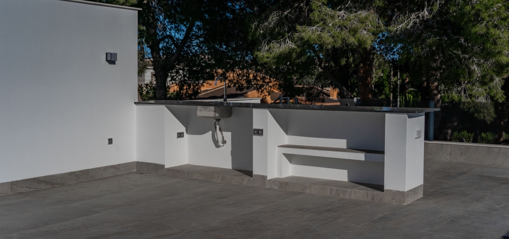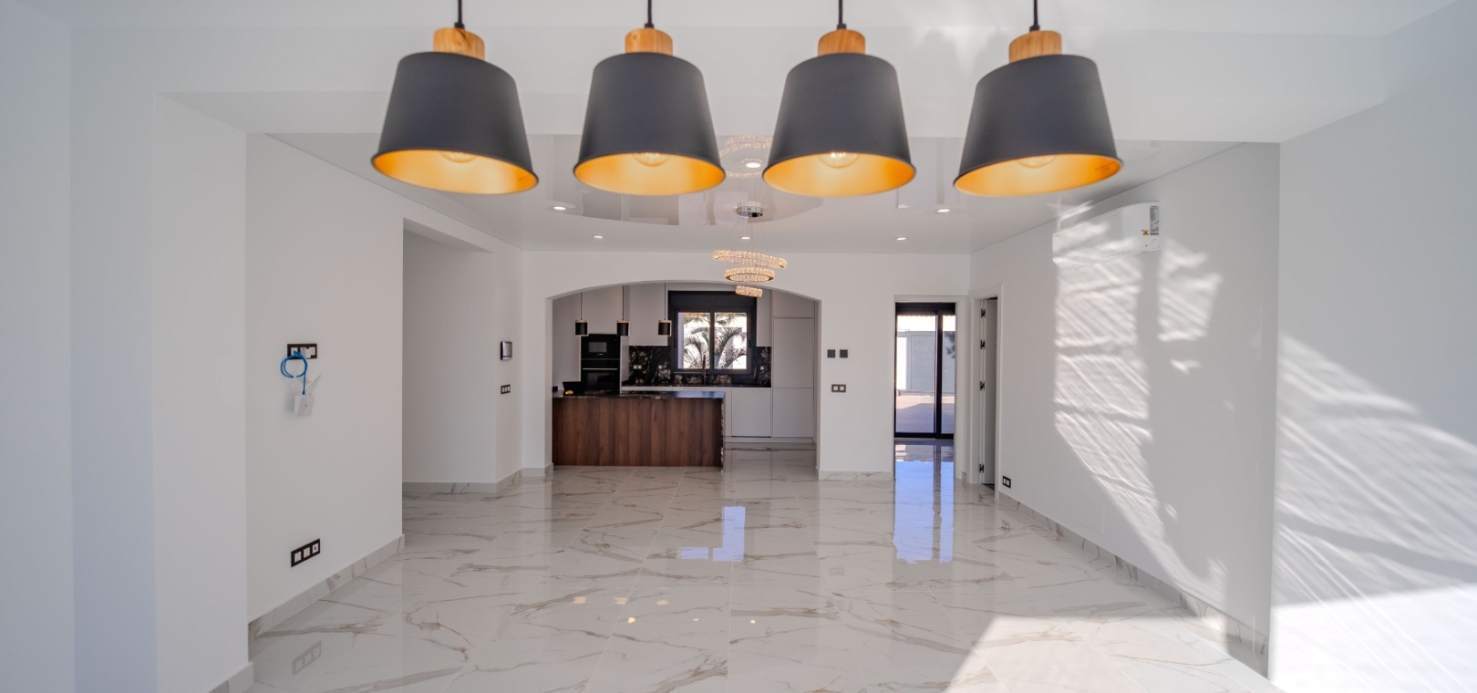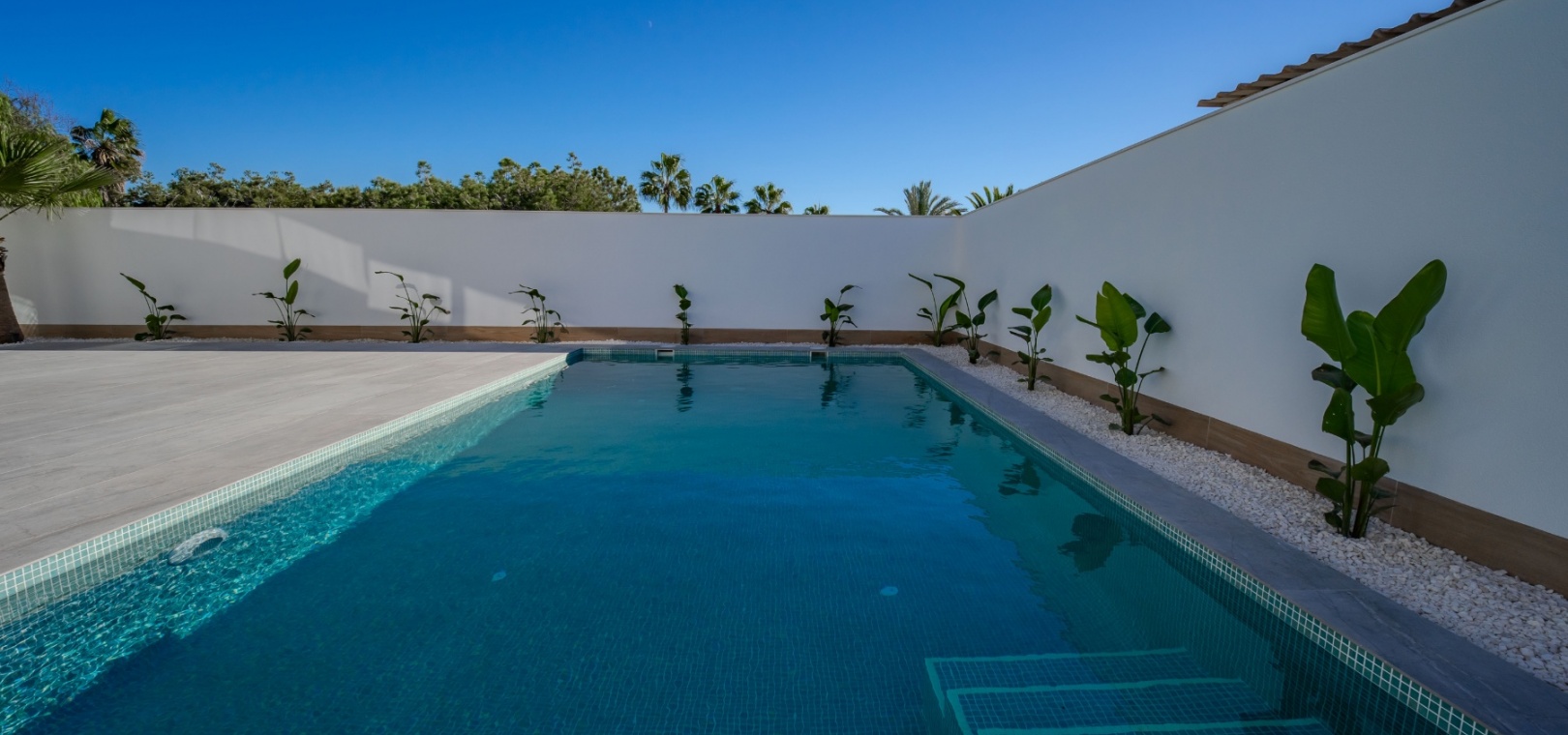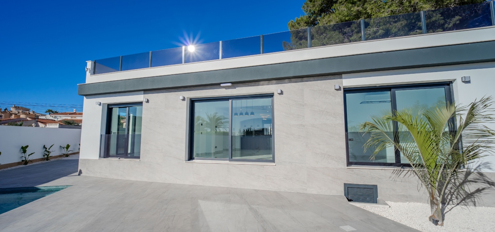 Atemberaubende, komplett sanierte Bungalowvilla in Ciudad Quesada (Alicante) – Die perfekte Verbindung von modernem Luxus und mediterraner Eleganz. In der begehrten Gegend von Ciudad Quesada (Alicante) und nur wenige Schritte vom lebhaften Stadtzentrum entfernt, wurde diese exquisite Bungalowvilla mit außergewöhnlicher Liebe zum Detail komplett saniert. Traditioneller mediterraner Charme trifft auf ein modernes, elegantes Design. Das Anwesen bietet Luxus, Komfort und Privatsphäre in einer der begehrtesten Lagen der Costa Blanca. Auf einem 650 m² großen Privatgrundstück gelegen, bietet die Villa 180 m² wunderschön gestaltete Wohnfläche und ist bezugsfertig. Die Ausstattung entspricht höchsten Standards – hier wurde an nichts gespart. Außenbereich: Hinter dem elektrischen Einfahrtstor erwartet Sie ein stilvoller, pflegeleichter mediterraner Garten, der das Haus perfekt einrahmt. Der private Swimmingpool grenzt an großzügige Terrassen, die zum Sonnenbaden, Essen oder für gesellige Stunden einladen. Das beeindruckende, große Solarium auf dem Dach bietet einen weiten Ausblick und einen exklusiven Bereich zum Entspannen, für Feiern oder um das milde Mikroklima von Alicante zu genießen. Raumaufteilung: Das Interieur besticht durch ein helles, offenes Raumkonzept mit viel Tageslicht. Vier bis fünf geräumige Schlafzimmer, alle als Suiten gestaltet, verfügen über vier luxuriöse Badezimmer en suite. Die Schlafzimmer sind mit Einbauschränken ausgestattet, die individuell nach den Wünschen der Kunden angepasst werden können. Die moderne offene Küche bietet hochwertige Geräte und beeindruckende Naturstein-Arbeitsplatten. Fußbodenheizung sorgt im gesamten Haus für angenehme Temperaturen. Klimaanlage (warm/kalt) ist in jedem Zimmer vorhanden. Die Kombination aus Raumaufteilung, Licht und edlen Materialien schafft ein komfortables und elegantes Wohnambiente. Weitere Merkmale: Ein fortschrittliches Smart-Home-System steuert Beleuchtung, Klima und Sicherheit. Separater Wasch- und Abstellraum. Hochwertige Ausstattung im gesamten Haus, darunter Designerleuchten, edle Fliesen und hochwertige Schreinerarbeiten. Bezugsfertiger Luxus, makellos renoviert. Lage: Nur wenige Minuten vom Stadtzentrum von Ciudad Quesada mit seinen Restaurants, Supermärkten, Dienstleistungen und Freizeiteinrichtungen entfernt, bietet diese Villa die ideale Balance zwischen Komfort, Privatsphäre und modernem mediterranem Wohnstil.