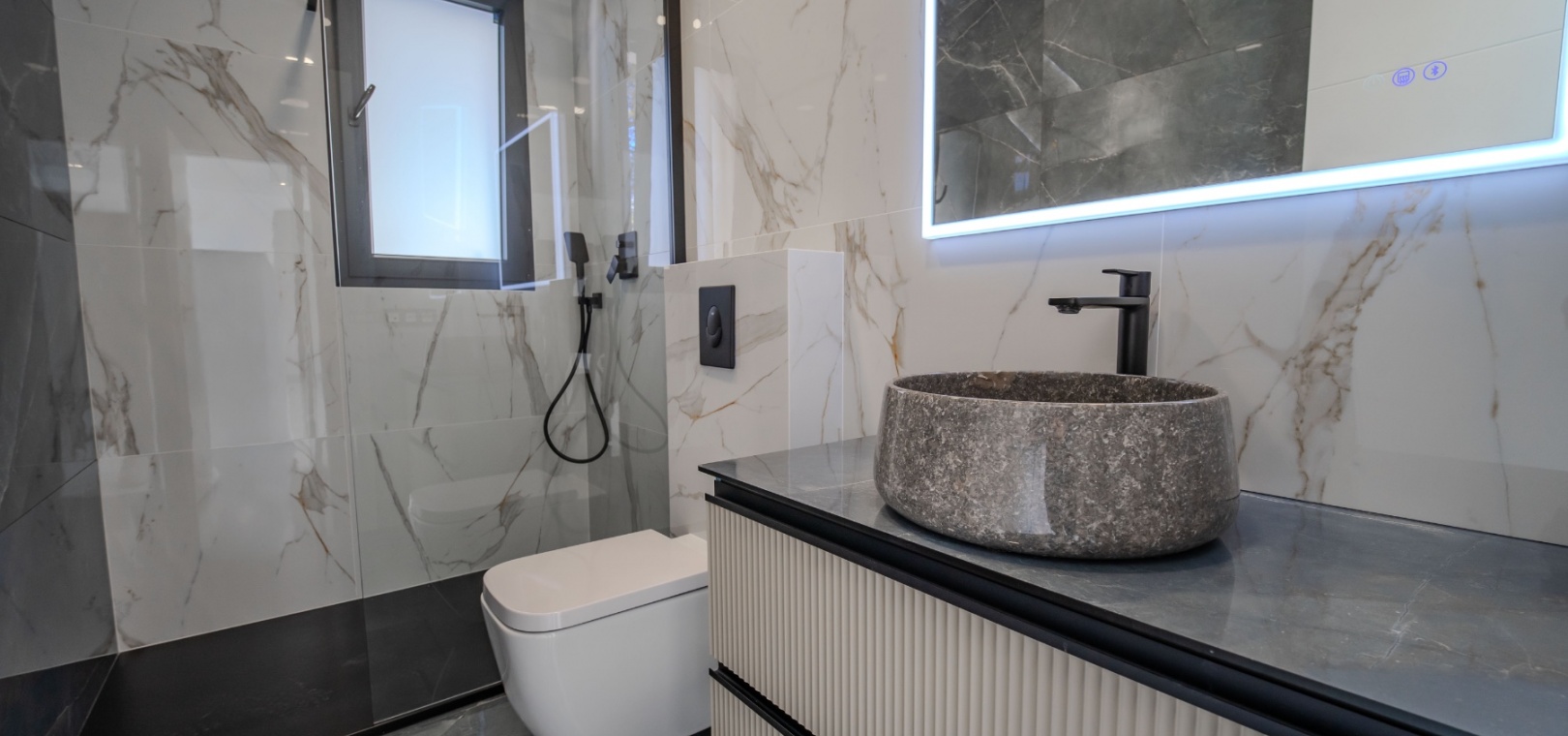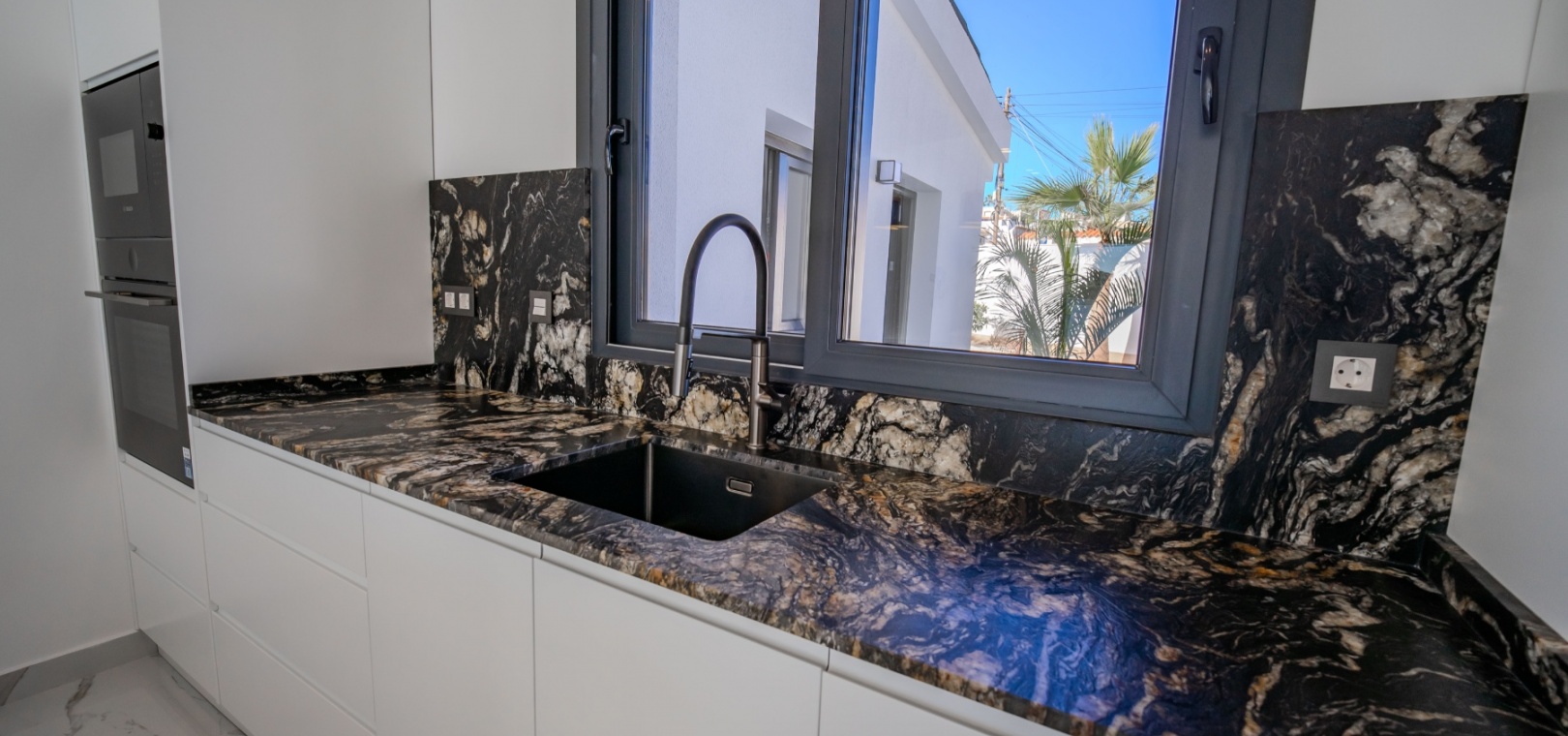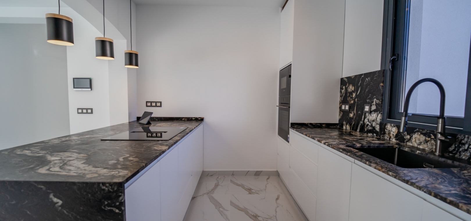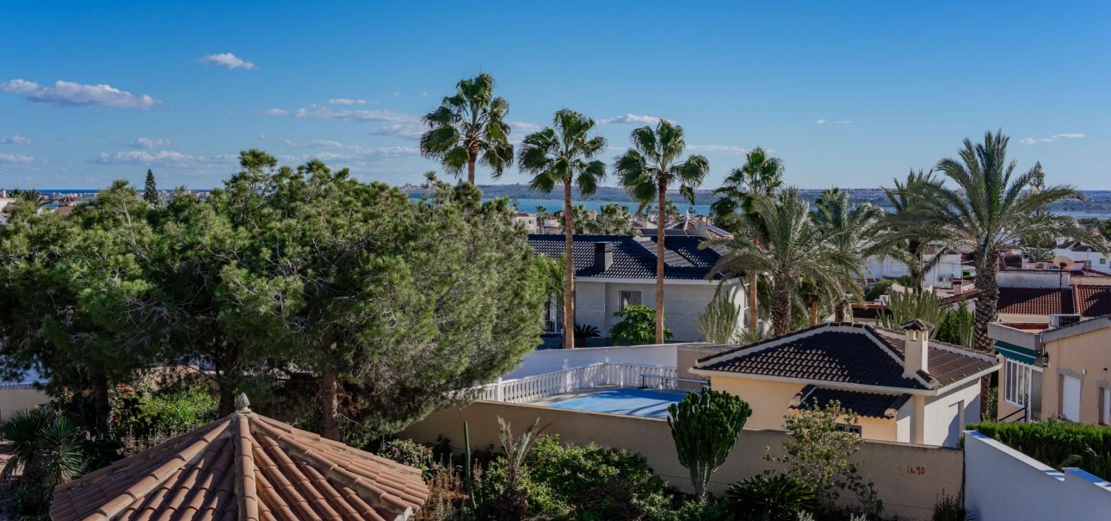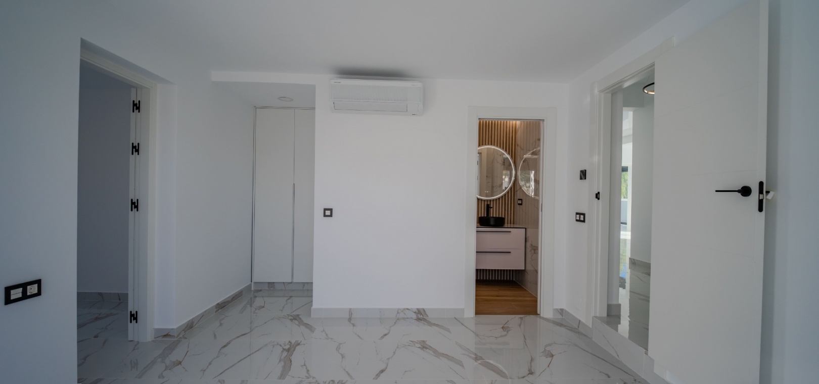 Atemberaubende, komplett sanierte Bungalowvilla in Ciudad Quesada (Alicante) – Die perfekte Verbindung von modernem Luxus und mediterraner Eleganz. In der begehrten Gegend von Ciudad Quesada (Alicante) und nur wenige Schritte vom lebhaften Stadtzentrum entfernt, wurde diese exquisite Bungalowvilla mit außergewöhnlicher Liebe zum Detail komplett saniert. Traditioneller mediterraner Charme trifft auf ein modernes, elegantes Design. Das Anwesen bietet Luxus, Komfort und Privatsphäre in einer der begehrtesten Lagen der Costa Blanca. Auf einem 650 m² großen Privatgrundstück gelegen, bietet die Villa 180 m² wunderschön gestaltete Wohnfläche und ist bezugsfertig. Die Ausstattung entspricht höchsten Standards – hier wurde an nichts gespart. Außenbereich: Hinter dem elektrischen Einfahrtstor erwartet Sie ein stilvoller, pflegeleichter mediterraner Garten, der das Haus perfekt einrahmt. Der private Swimmingpool grenzt an großzügige Terrassen, die zum Sonnenbaden, Essen oder für gesellige Stunden einladen. Das beeindruckende, große Solarium auf dem Dach bietet einen weiten Ausblick und einen exklusiven Bereich zum Entspannen, für Feiern oder um das milde Mikroklima von Alicante zu genießen. Raumaufteilung: Das Interieur besticht durch ein helles, offenes Raumkonzept mit viel Tageslicht. Vier bis fünf geräumige Schlafzimmer, alle als Suiten gestaltet, verfügen über vier luxuriöse Badezimmer en suite. Die Schlafzimmer sind mit Einbauschränken ausgestattet, die individuell nach den Wünschen der Kunden angepasst werden können. Die moderne offene Küche bietet hochwertige Geräte und beeindruckende Naturstein-Arbeitsplatten. Fußbodenheizung sorgt im gesamten Haus für angenehme Temperaturen. Klimaanlage (warm/kalt) ist in jedem Zimmer vorhanden. Die Kombination aus Raumaufteilung, Licht und edlen Materialien schafft ein komfortables und elegantes Wohnambiente. Weitere Merkmale: Ein fortschrittliches Smart-Home-System steuert Beleuchtung, Klima und Sicherheit. Separater Wasch- und Abstellraum. Hochwertige Ausstattung im gesamten Haus, darunter Designerleuchten, edle Fliesen und hochwertige Schreinerarbeiten. Bezugsfertiger Luxus, makellos renoviert. Lage: Nur wenige Minuten vom Stadtzentrum von Ciudad Quesada mit seinen Restaurants, Supermärkten, Dienstleistungen und Freizeiteinrichtungen entfernt, bietet diese Villa die ideale Balance zwischen Komfort, Privatsphäre und modernem mediterranem Wohnstil.