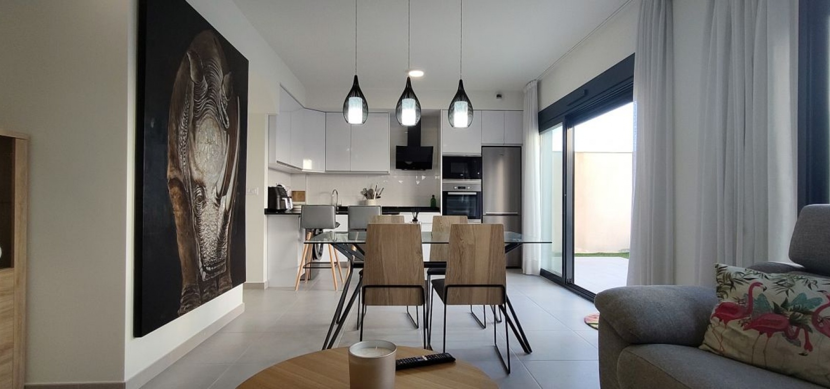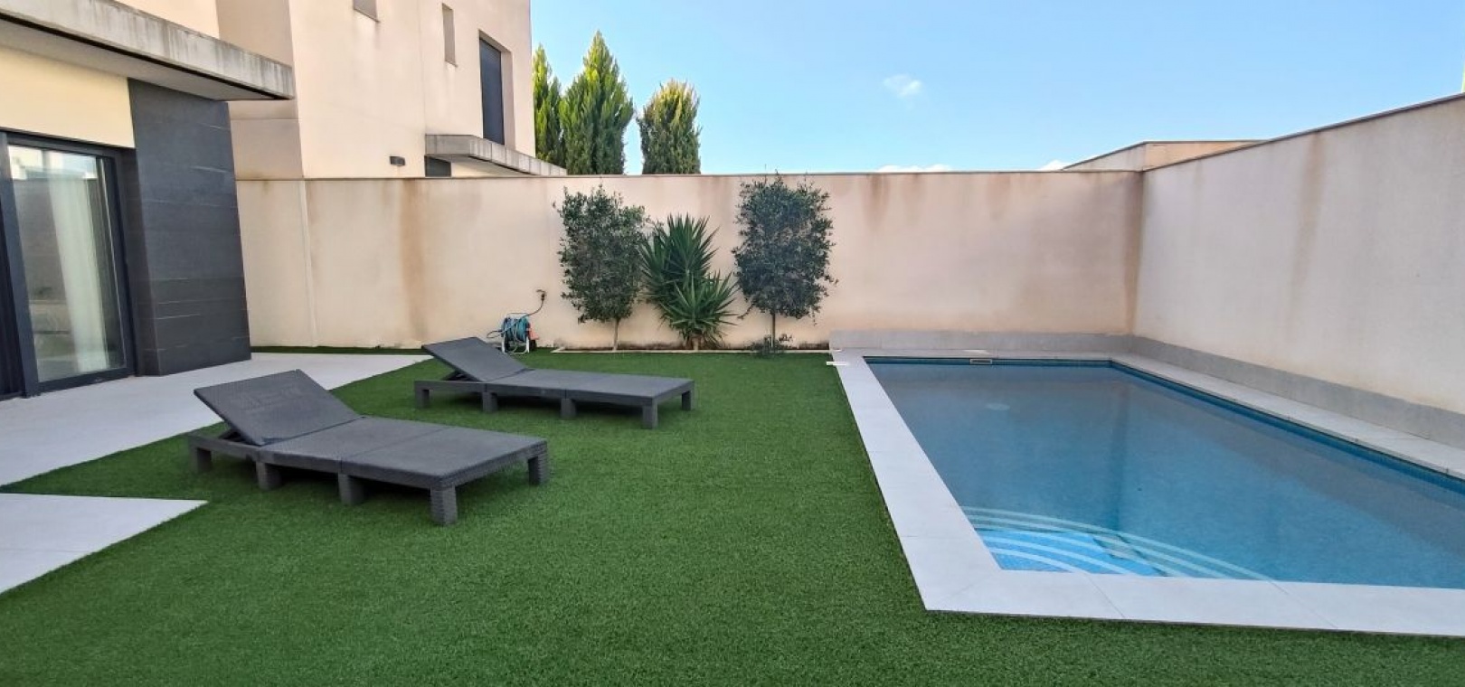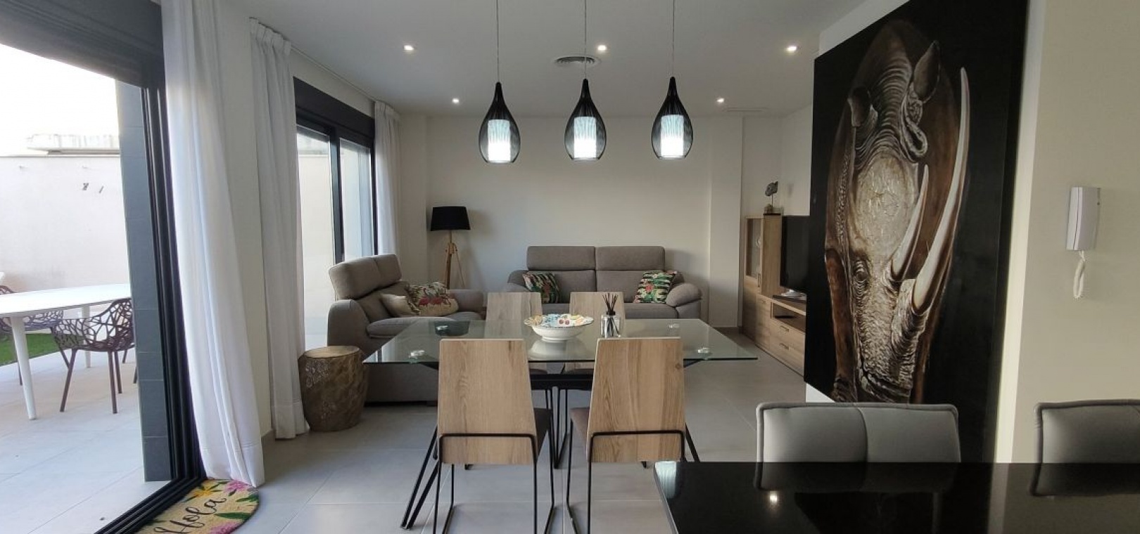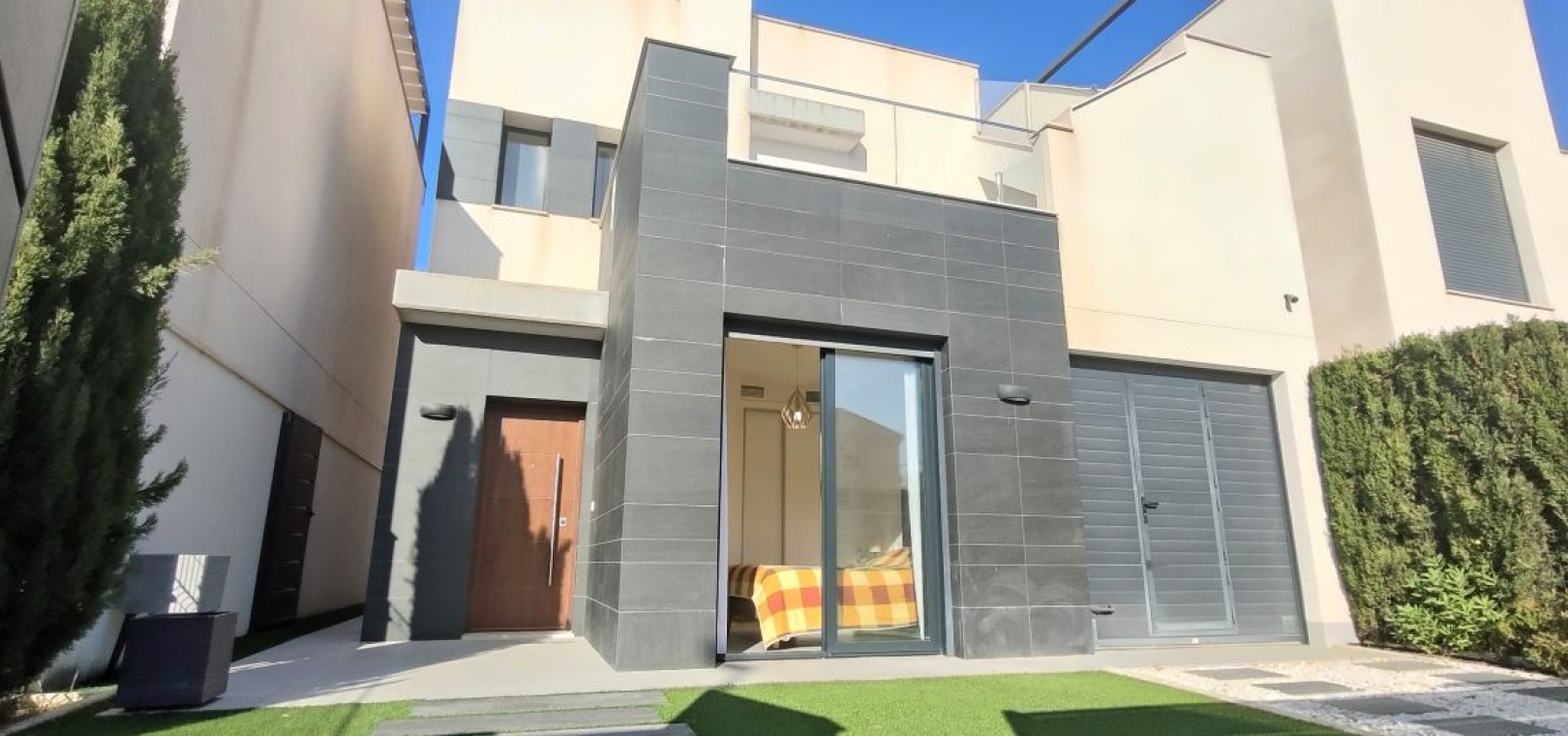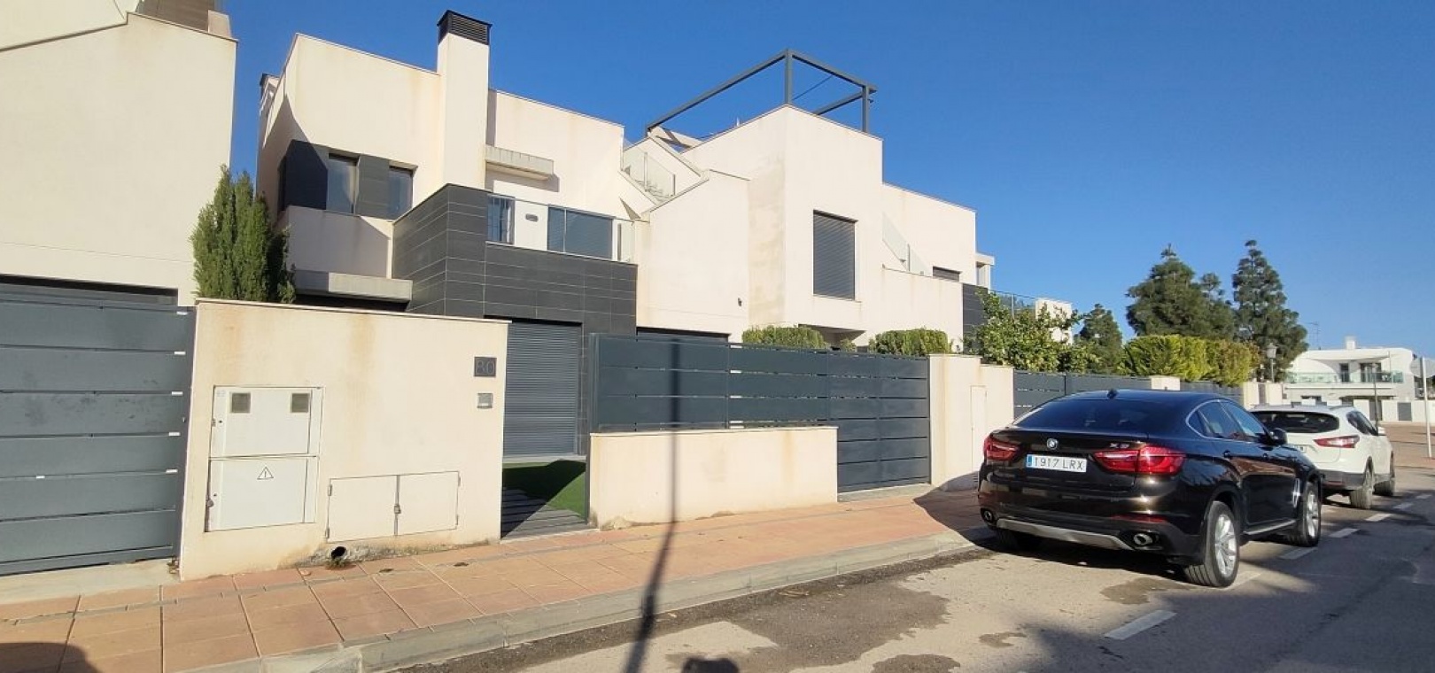 IN DER NÄHE DES GOLFPLATZES VELAPI - LOS ALCAZARES Preisgünstig zu verkaufen - Hervorragendes Preis-Leistungs-Verhältnis - Fast neue Villa - Strand und Golfplatz fußläufig erreichbar. Eine fast neue, voll möblierte freistehende Villa in Los Alcázares, nur wenige Gehminuten vom Strand, dem Golfplatz Velapi und dem Stadtzentrum entfernt. Erbaut auf einem 210 m² großen Grundstück mit ca. Diese moderne Villa mit 130 m² Wohnfläche wurde 2019 fertiggestellt und nur wenige Wochen im Jahr genutzt – sie befindet sich in einem neuwertigen Zustand. ✔ Heller, offener Wohn- und Küchenbereich mit großen Schiebetüren ✔ Privater Garten und Swimmingpool ✔ 3 Schlafzimmer, 3 Badezimmer (einschließlich Schlafzimmer im Erdgeschoss) ✔ Sonnige Terrasse + große private Dachterrasse ✔ Privater Parkplatz/Garage mit elektrischem Tor. Die Villa wird komplett möbliert und ausgestattet verkauft: Klimaanlage im gesamten Haus, Fernseher in allen Schlafzimmern und im Wohnzimmer, elektrische Rollläden, Abstellraum und viele weitere Extras. Erstklassige Lage mit optimaler Anbindung an die Autobahn AP-7, die schnelle Verbindungen nach Murcia, Cartagena und Alicante bietet, sowie in der Nähe der internationalen Flughäfen von Murcia und Alicante. Eine der preisgünstigsten Villen dieser Art in der Gegend. Hervorragendes Preis-Leistungs-Verhältnis im Vergleich zu Neubauten – keine Wartezeit, keine zusätzlichen Kosten. Besichtigungen werden dringend empfohlen. Sofort bezugsfertig.