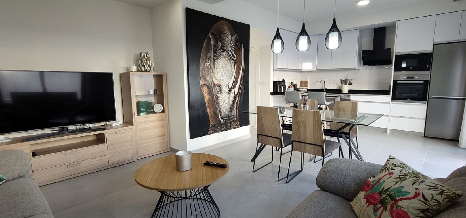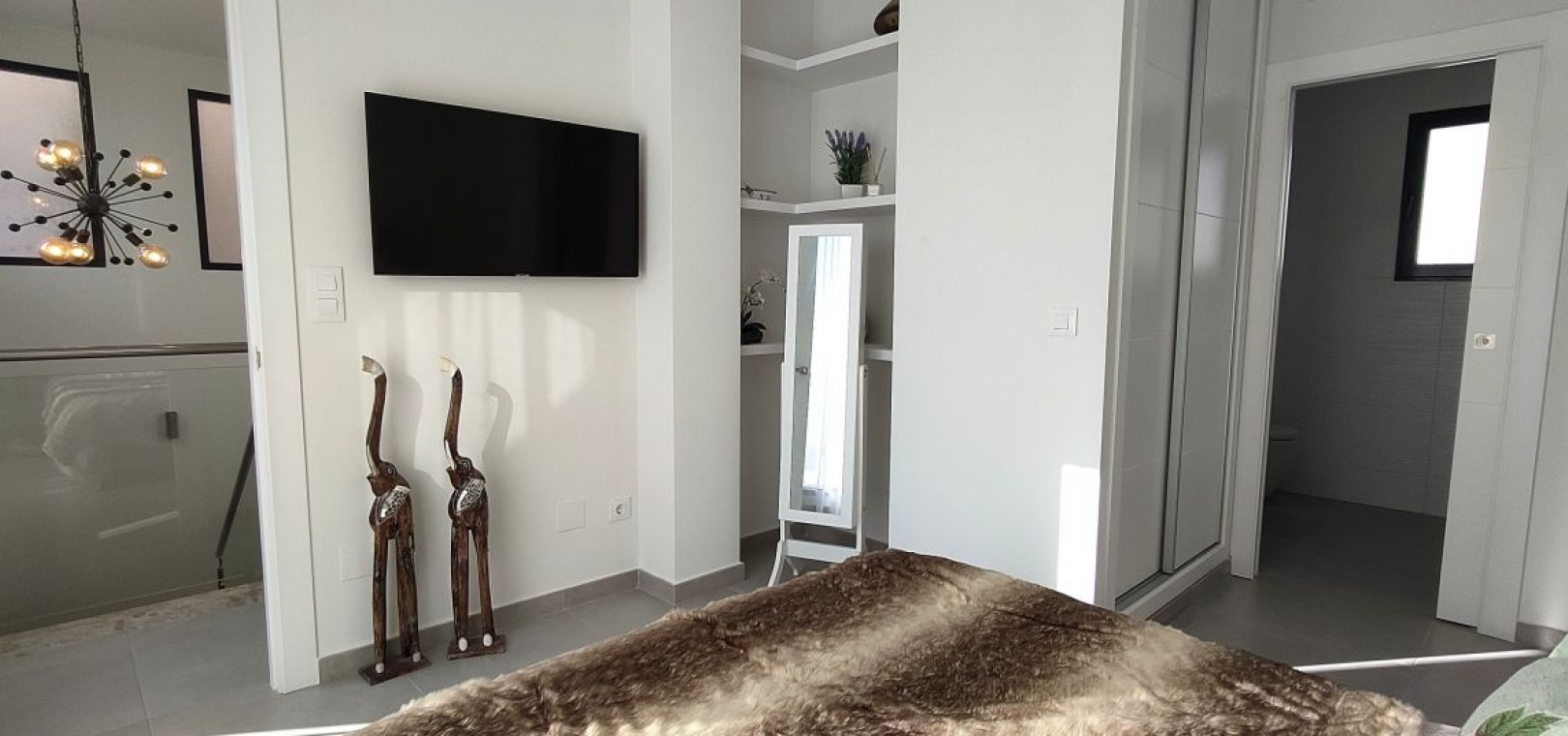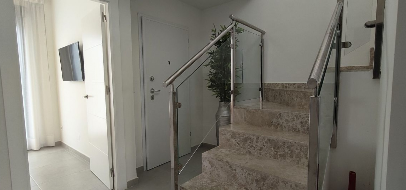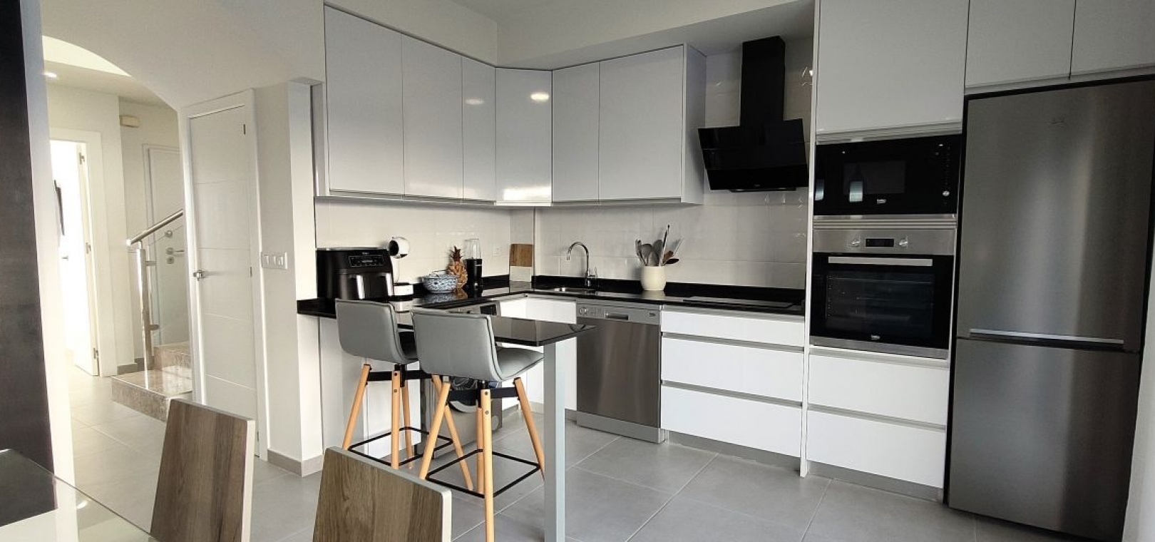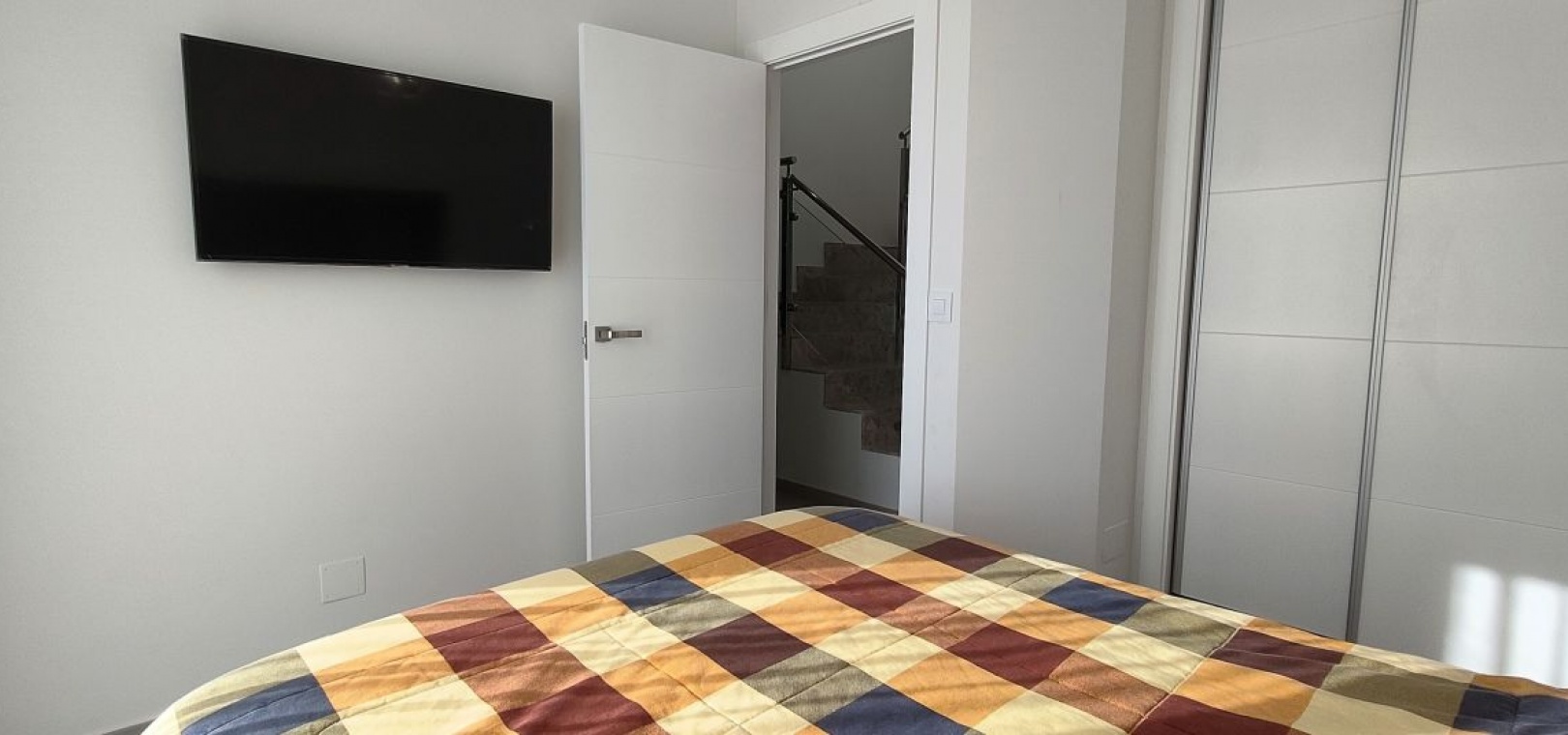 IN DER NÄHE DES GOLFPLATZES VELAPI - LOS ALCAZARES Preisgünstig zu verkaufen - Hervorragendes Preis-Leistungs-Verhältnis - Fast neue Villa - Strand und Golfplatz fußläufig erreichbar. Eine fast neue, voll möblierte freistehende Villa in Los Alcázares, nur wenige Gehminuten vom Strand, dem Golfplatz Velapi und dem Stadtzentrum entfernt. Erbaut auf einem 210 m² großen Grundstück mit ca. Diese moderne Villa mit 130 m² Wohnfläche wurde 2019 fertiggestellt und nur wenige Wochen im Jahr genutzt – sie befindet sich in einem neuwertigen Zustand. ✔ Heller, offener Wohn- und Küchenbereich mit großen Schiebetüren ✔ Privater Garten und Swimmingpool ✔ 3 Schlafzimmer, 3 Badezimmer (einschließlich Schlafzimmer im Erdgeschoss) ✔ Sonnige Terrasse + große private Dachterrasse ✔ Privater Parkplatz/Garage mit elektrischem Tor. Die Villa wird komplett möbliert und ausgestattet verkauft: Klimaanlage im gesamten Haus, Fernseher in allen Schlafzimmern und im Wohnzimmer, elektrische Rollläden, Abstellraum und viele weitere Extras. Erstklassige Lage mit optimaler Anbindung an die Autobahn AP-7, die schnelle Verbindungen nach Murcia, Cartagena und Alicante bietet, sowie in der Nähe der internationalen Flughäfen von Murcia und Alicante. Eine der preisgünstigsten Villen dieser Art in der Gegend. Hervorragendes Preis-Leistungs-Verhältnis im Vergleich zu Neubauten – keine Wartezeit, keine zusätzlichen Kosten. Besichtigungen werden dringend empfohlen. Sofort bezugsfertig.