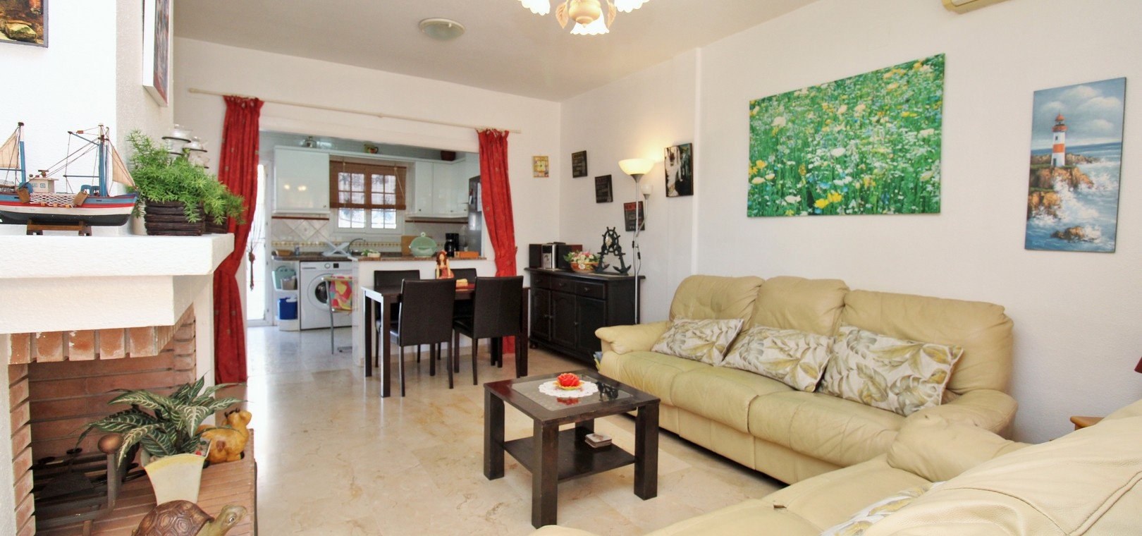 Dieses komplett möblierte Haus mit Haushaltsgeräten und Klimaanlage ist sofort bezugsfertig. Der helle und luftige Wohn- und Essbereich mit offener Küche im amerikanischen Stil , zwei geräumige Doppelschlafzimmer mit Einbauschränken und ein großes Familienbad runden das Angebot ab.