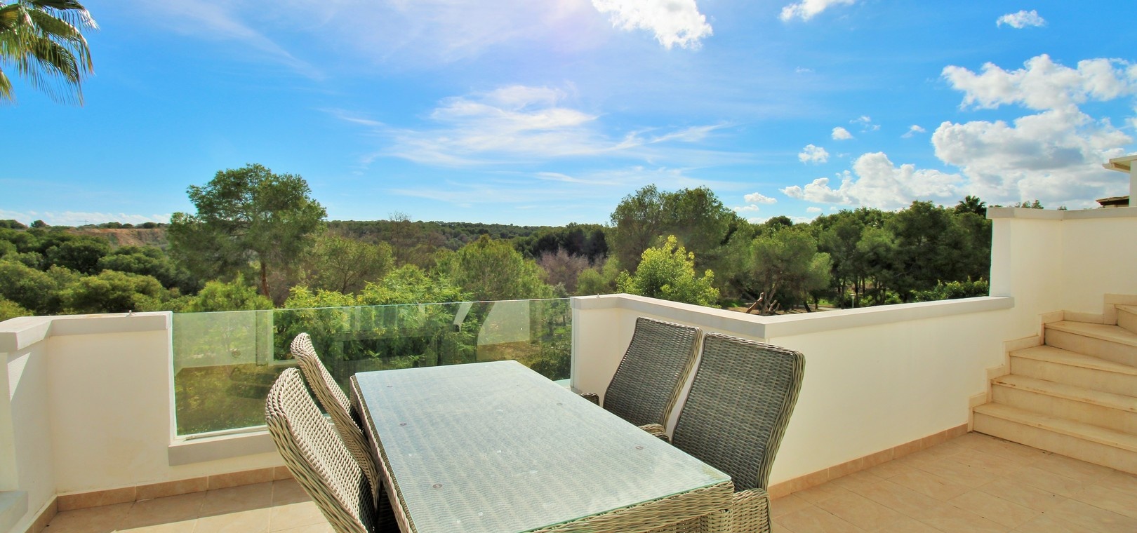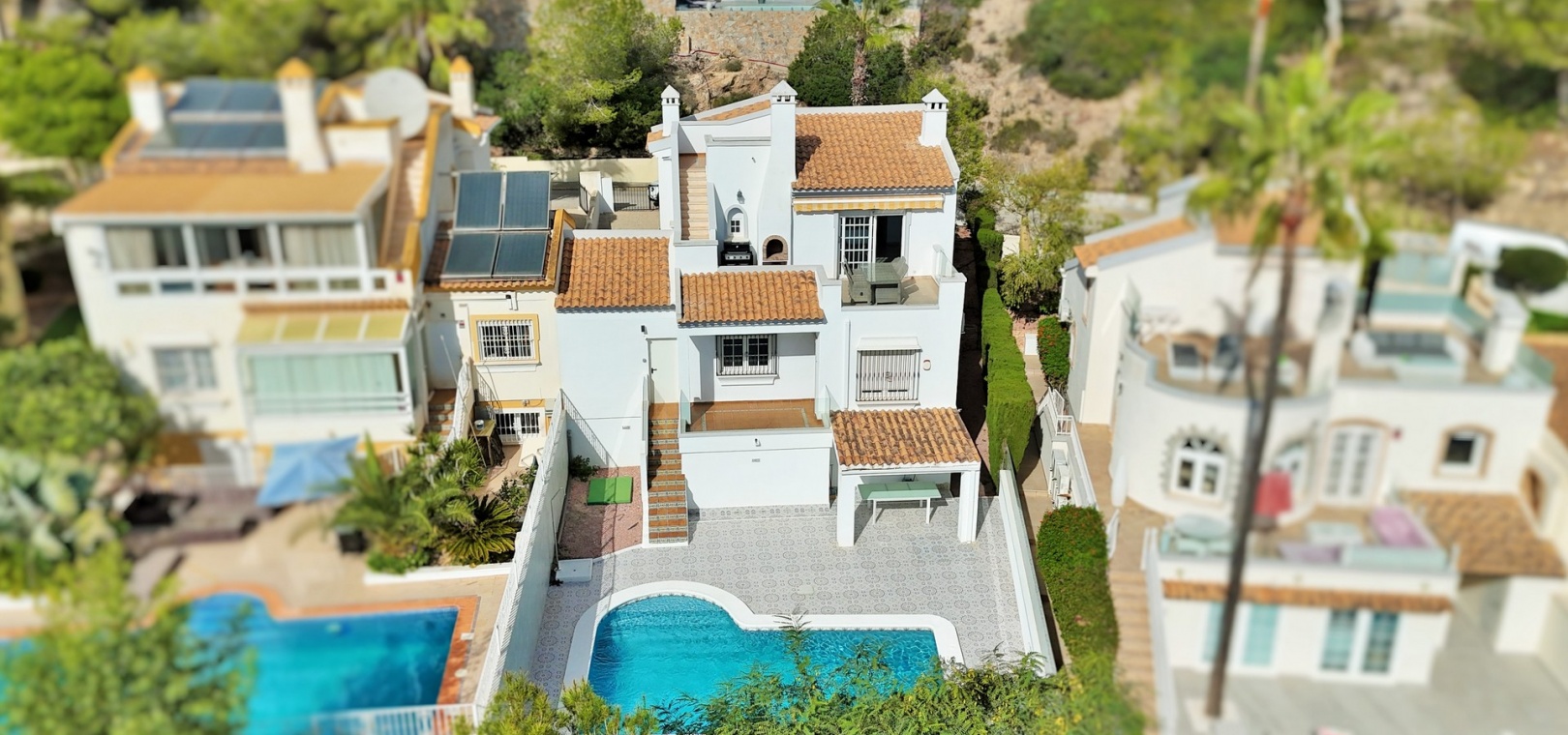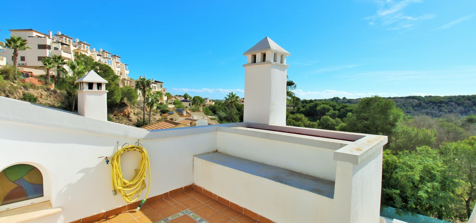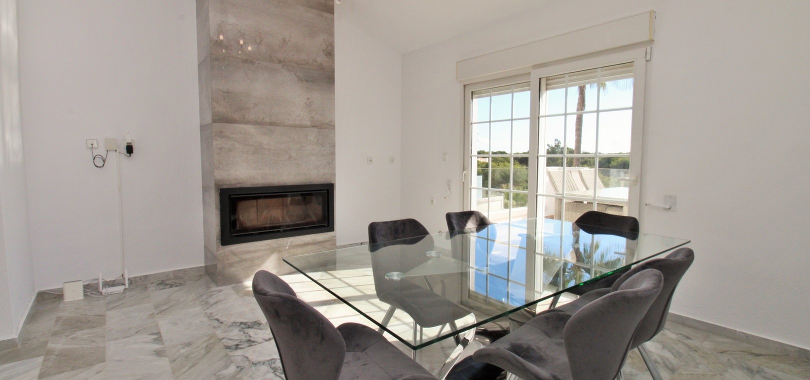 Zur Ausstattung gehören außerdem eine Klimaanlage (warm/kalt), ein Kaminofen, eine private Garage und die Nutzung der Gemeinschaftspools. Die Villa wird komplett möbliert und bezugsfertig verkauft und bietet eine seltene Gelegenheit, eine der bestgelegenen Immobilien im Las Ramblas Golf Resort zu erwerben.