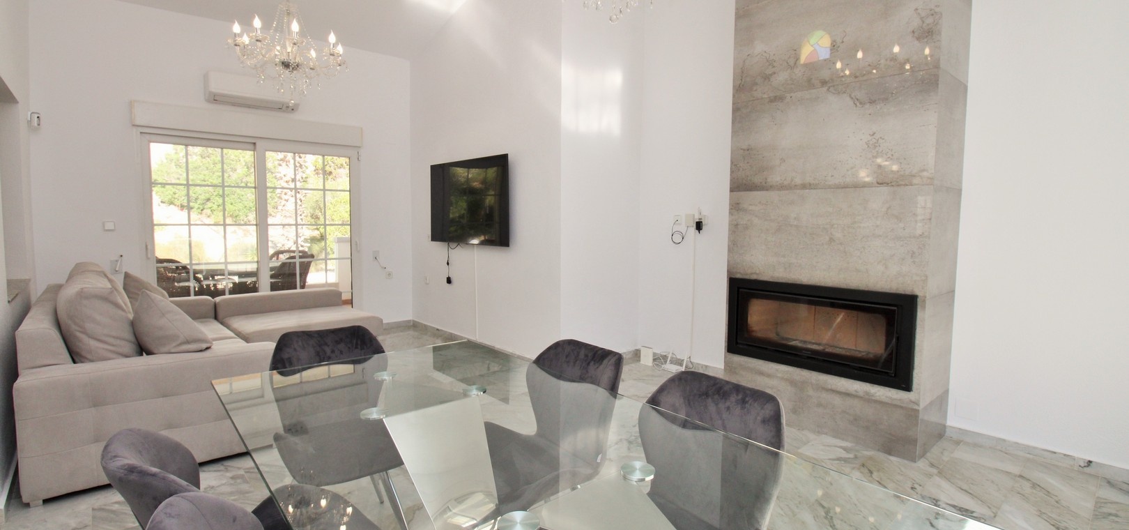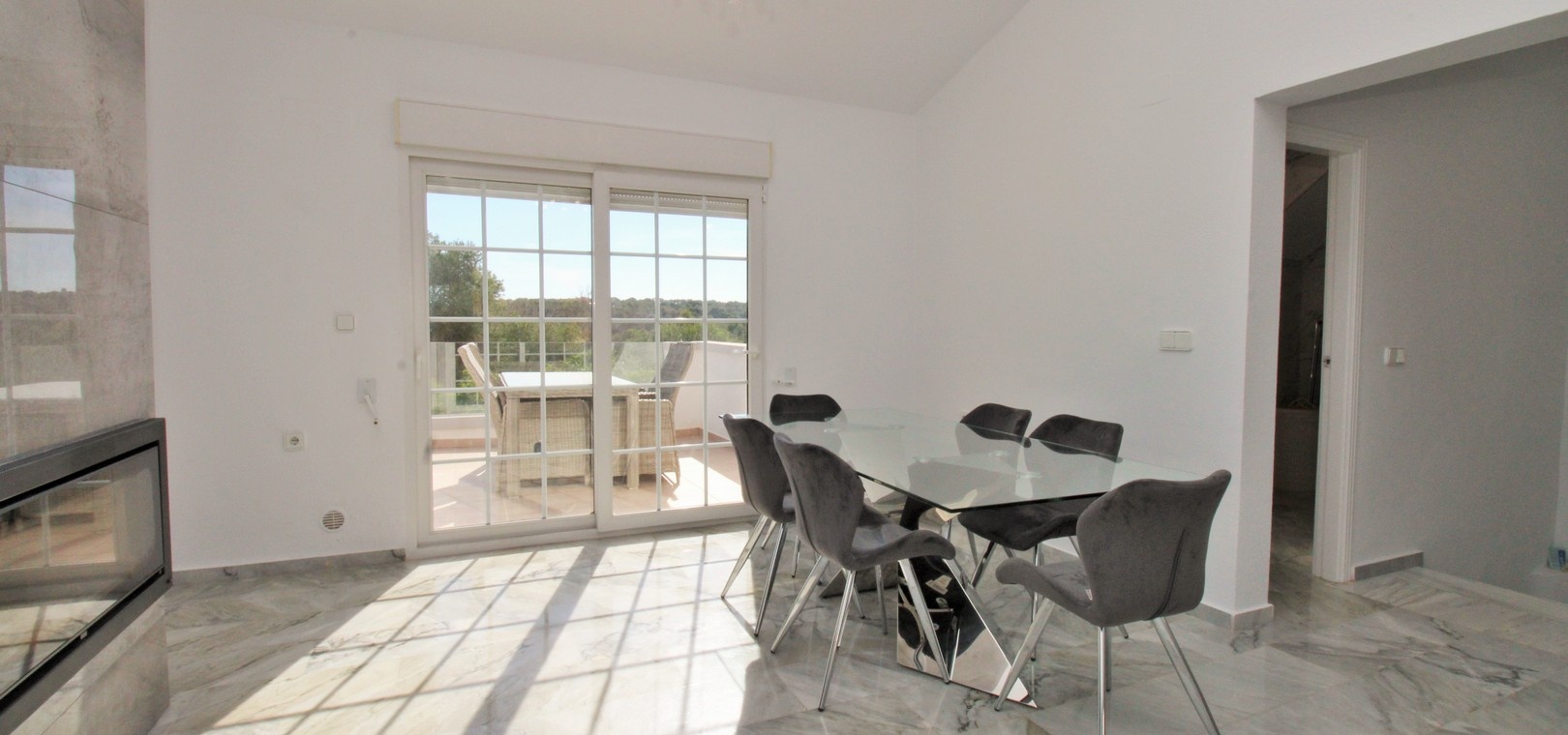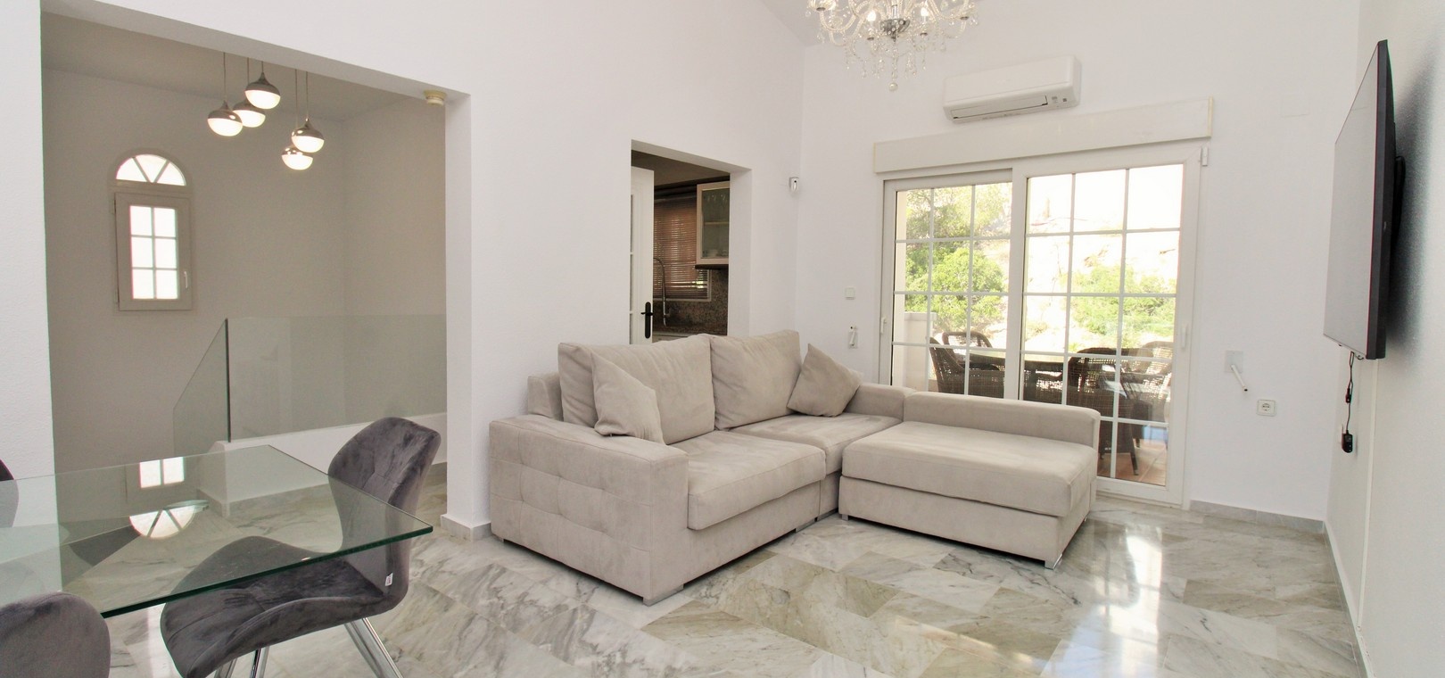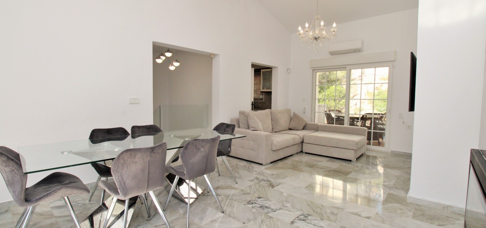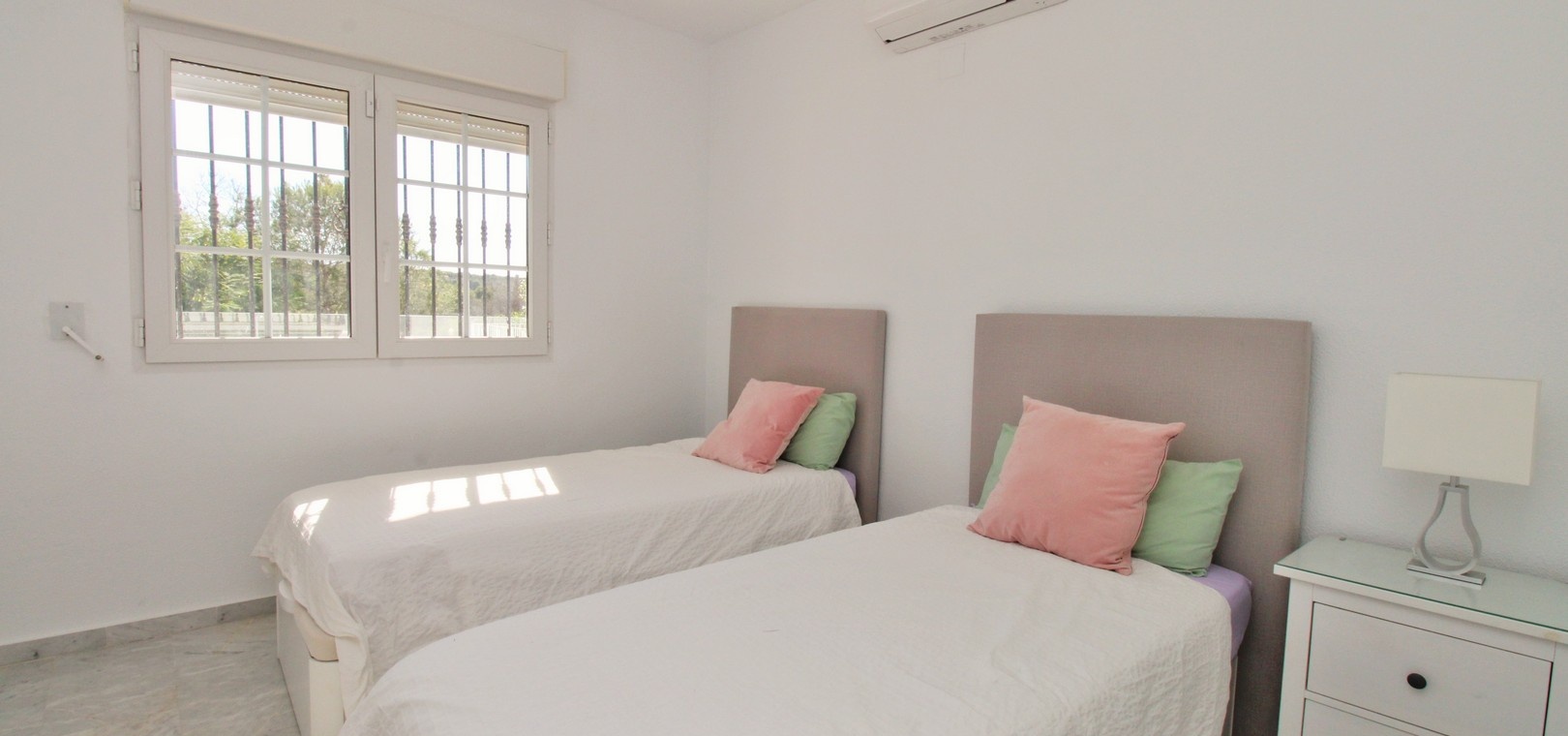 Zur Ausstattung gehören außerdem eine Klimaanlage (warm/kalt), ein Kaminofen, eine private Garage und die Nutzung der Gemeinschaftspools. Die Villa wird komplett möbliert und bezugsfertig verkauft und bietet eine seltene Gelegenheit, eine der bestgelegenen Immobilien im Las Ramblas Golf Resort zu erwerben.