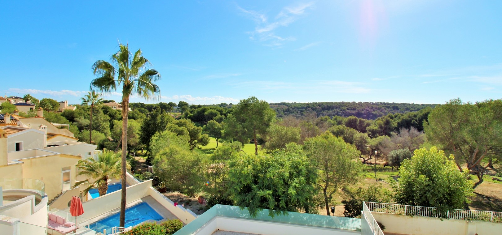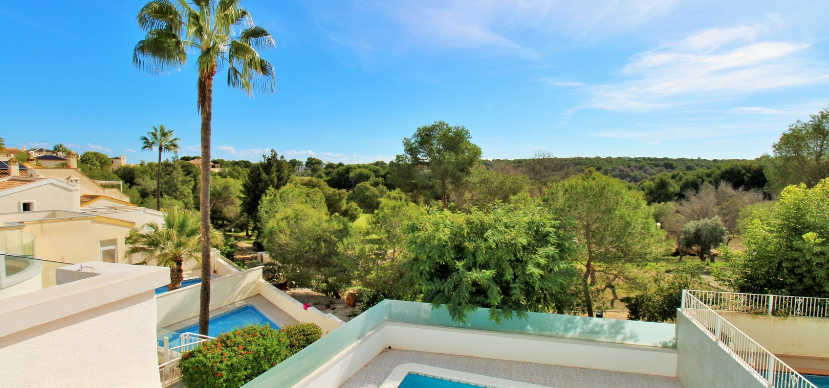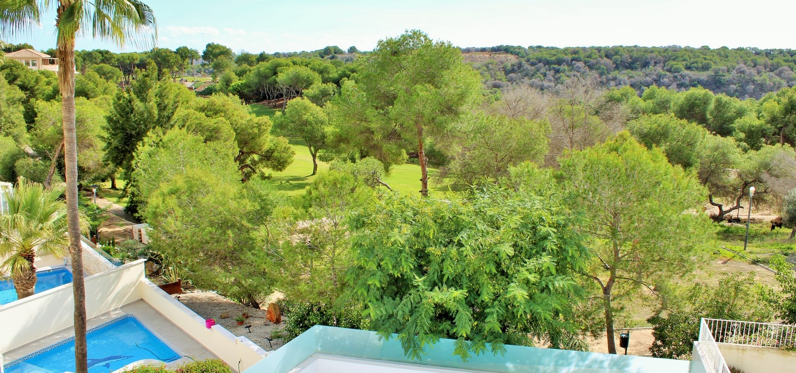 Diese außergewöhnliche, freistehende Villa mit 3 Schlafzimmern und 2 Bädern befindet sich in bester Lage direkt am renommierten Golfplatz des Las Ramblas Golf Resorts und bietet einen atemberaubenden Blick über die Fairways, die umliegende Landschaft und das Mittelmeer. Die Villa ist ideal gelegen, nur fünf Gehminuten vom Clubhaus mit Restaurant und Driving Range entfernt und in unmittelbarer Nähe des beliebten Einkaufszentrums La Fuente mit einer großen Auswahl an Bars, Geschäften und Restaurants. Die mit der Blauen Flagge ausgezeichneten Strände von Campoamor und Cabo Roig sind in weniger als zehn Autominuten erreichbar.