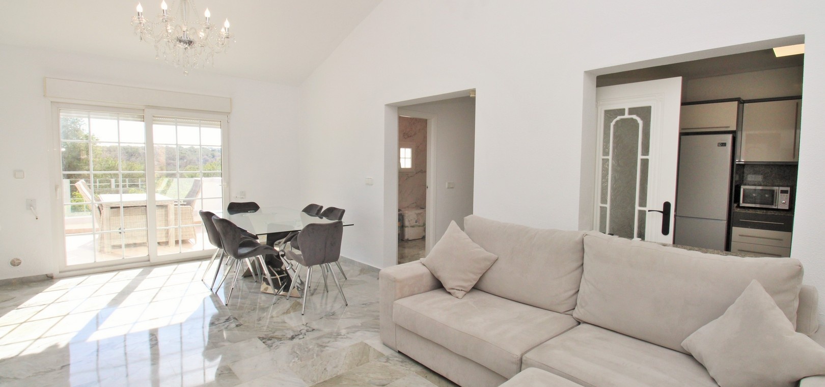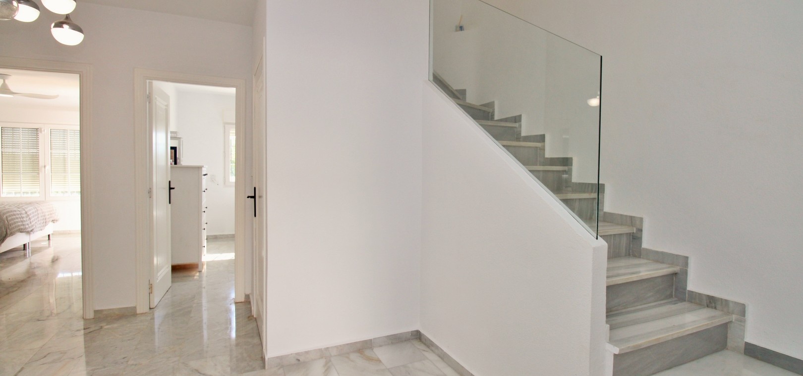 Das kürzlich aufwendig renovierte Erdgeschoss besticht durch einen hellen und geräumigen Wohnbereich mit Essbereich, eine separate, voll ausgestattete Küche und einen praktischen Hauswirtschaftsraum. Zwei Sonnenterrassen laden zum Entspannen und Genießen der Aussicht ein, und eine Außentreppe führt hinauf zu einem privaten Dachsolarium .