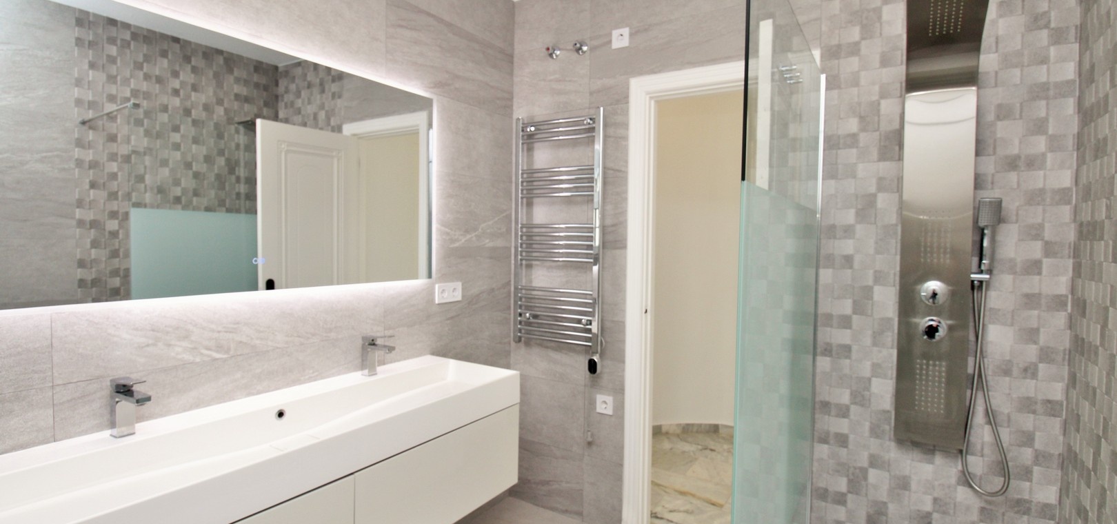 Im Untergeschoss befinden sich das Hauptschlafzimmer mit eigenem Bad und direktem Zugang zur Terrasse und zum Garten sowie zwei weitere geräumige Doppelschlafzimmer und ein modernes Familienbad. Alle Schlafzimmer sind mit Einbauschränken ausgestattet.