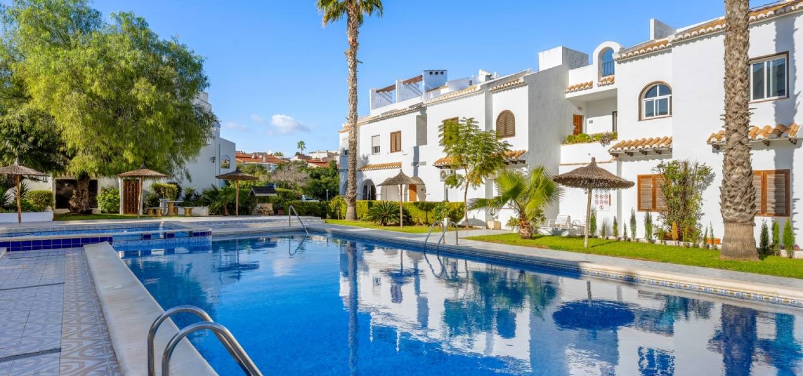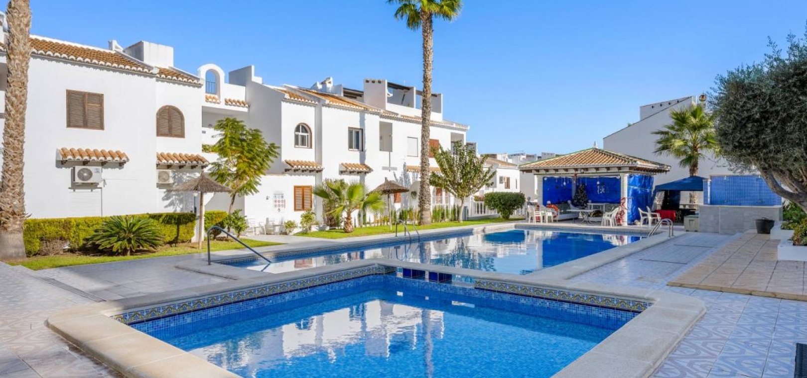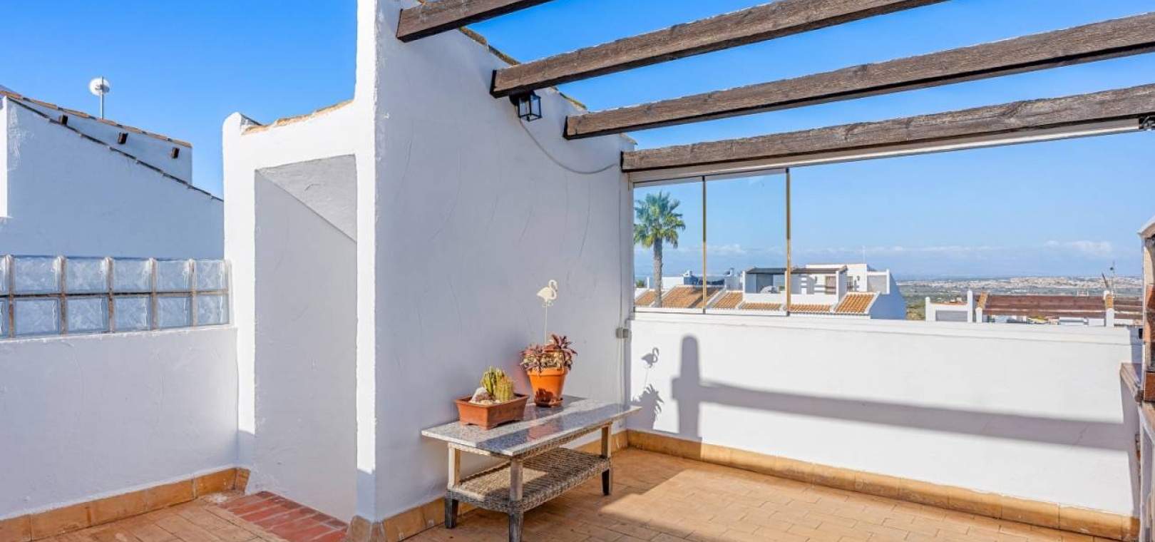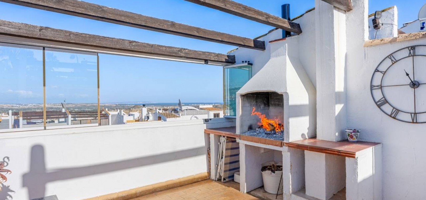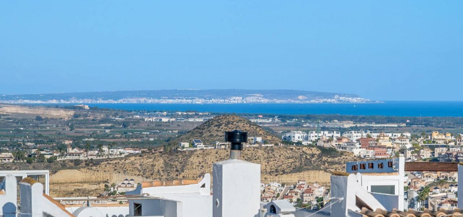 Renoviertes Reihenendhaus mit 2 Schlafzimmern, Solarium, Pool und Meerblick in Ciudad Quesada. Dieses wunderschön renovierte Reihenendhaus mit zwei Schlafzimmern in Ciudad Quesada befindet sich in idealer Lage nahe dem Stadtzentrum, in einer der begehrtesten Wohngegenden der Costa Blanca. Die Immobilie bietet eine perfekte Kombination aus traditionellem spanischem Charme und modernem Komfort und eignet sich ideal als Hauptwohnsitz, Ferienhaus oder Kapitalanlage. Das Reihenhaus genießt eine erhöhte Lage mit einem privaten Solarium und atemberaubendem Meerblick und bietet somit eine herausragende Gelegenheit für mediterranes Wohnen. Den Bewohnern steht außerdem ein gepflegter Gemeinschaftspool zur Verfügung, der zum Entspannen und geselligen Beisammensein einlädt. Im Inneren besticht die Immobilie durch einen hellen und gut durchdachten Grundriss, der Raum und Tageslicht optimal nutzt. Es gibt zwei geräumige Schlafzimmer, einen stilvollen Wohn- und Essbereich sowie eine voll ausgestattete, moderne Küche mit hochwertiger Ausstattung. Moderne Ausstattungsmerkmale steigern Komfort und Funktionalität, während der fließende Übergang zwischen Innen- und Außenbereich das Haus ideal zum Entspannen und für gesellige Stunden macht. Das sonnendurchflutete Solarium bietet Panoramablick und ganzjährigen Sonnenschein und ist der perfekte Ort zum Essen im Freien, Sonnenbaden oder einfach nur, um die Küstenlandschaft zu genießen. Die Immobilie befindet sich in fußläufiger Entfernung zu Geschäften, Cafés, Restaurants und allen wichtigen Einrichtungen und bietet somit Komfort für den Alltag. Dank seiner erstklassigen Lage, des Meerblicks und der hohen Attraktivität als Mietobjekt ist dieses Reihenhaus eine hervorragende Gelegenheit, den Lebensstil der Costa Blanca zu genießen oder eine solide Investition in einer gefragten Gegend zu tätigen. Hauptmerkmale: Renoviertes Reihenendhaus mit 2 Schlafzimmern in Ciudad Quesada; Erstklassige Lage in der Nähe des Stadtzentrums; Gemeinschaftspool und großzügige Außenbereiche; Privates Solarium mit Meerblick; Modernes Interieur mit hochwertiger Ausstattung; Helle, offene Wohn- und Essbereiche; Ideal als Hauptwohnsitz, Ferienhaus oder Mietobjekt; Geschäfte, Cafés und Gemeinschaftseinrichtungen in Gehweite.