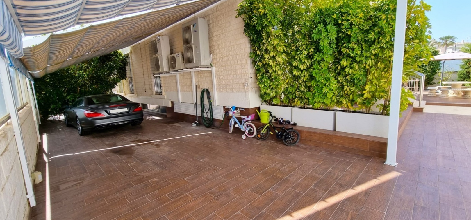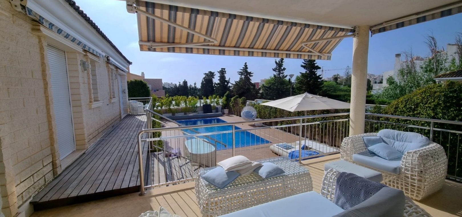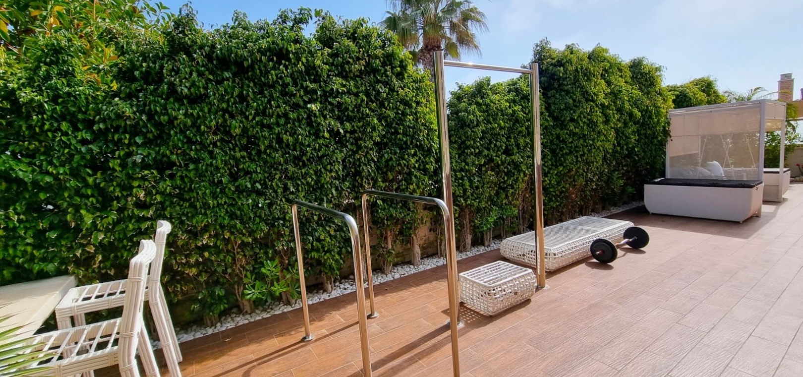 Diese außergewöhnliche Villa bietet die seltene Gelegenheit, ein geräumiges und elegantes Zuhause in einer der begehrtesten Lagen von Torrevieja zu erwerben. Das Anwesen erstreckt sich über drei Ebenen und besticht durch großzügige Wohnbereiche, Panoramablick und luxuriöse Annehmlichkeiten für Komfort und Entspannung. Grundriss: Hauptgeschoss: Diese Etage umfasst drei Schlafzimmer, zwei Badezimmer, ein Gäste-WC und ein Duschbad. Ein helles und luftiges Wohnzimmer sowie eine voll ausgestattete Küche vervollständigen den Raum. Sowohl der Wohnbereich als auch eines der Schlafzimmer öffnen sich direkt zu einer großen Terrasse – ideal, um die Natur zu genießen. Obergeschoss: Hier befinden sich zwei weitere Schlafzimmer, ein zusätzliches Badezimmer und ein charmanter Balkon mit atemberaubendem Blick auf das Mittelmeer und die Umgebung. Untergeschoss: Im Untergeschoss befinden sich ein geräumiger Gemeinschaftsraum, ein begehbarer Kleiderschrank (der in ein zusätzliches Schlafzimmer umgewandelt werden kann), ein Hauswirtschaftsraum und ein luxuriöser privater Wellnessbereich. Dieser umfasst eine finnische Sauna, ein türkisches Dampfbad und moderne Duschmöglichkeiten. Außenbereich: Auf einem großzügigen Grundstück gelegen, bietet die Villa vielfältige Möglichkeiten zur Entspannung und Unterhaltung im Freien. Ausstattung: Privater Swimmingpool mit sonniger Liegefläche, ausreichend Parkplätze für mehrere Fahrzeuge, Zugang zu einem Gemeinschaftsgarten und Tennisplatz innerhalb der Wohnanlage. Erstklassige Lage: Die Villa befindet sich in einem lebendigen und gut angebundenen Viertel und ist umgeben von einer großen Auswahl an Restaurants, Bars, Geschäften und Einrichtungen des täglichen Bedarfs. Der berühmte Strand La Mata mit seinem goldenen Sand und einladenden Strandbars, wo Sie das mediterrane Lebensgefühl in vollen Zügen genießen können, ist nur wenige Schritte entfernt. Lifestyle & Freizeit: Torrevieja ist eine lebhafte Küstenstadt mit ganzjährigem Unterhaltungs- und Freizeitangebot für alle Altersgruppen, darunter: Go-Kart, Bowling, Kinos und Einkaufszentren, mehrere erstklassige Golfplätze in der Umgebung, eine vielfältige Gastronomieszene mit exzellenten Restaurants und Bars, ein malerischer Hafen und ein dynamisches Stadtzentrum. Ihr Traumhaus erwartet Sie: Diese Villa bietet eine gelungene Kombination aus Raum, Stil und erstklassiger Lage und ist die perfekte Wahl für einen dauerhaften Wohnsitz oder einen luxuriösen Urlaub im Herzen von Torrevieja.