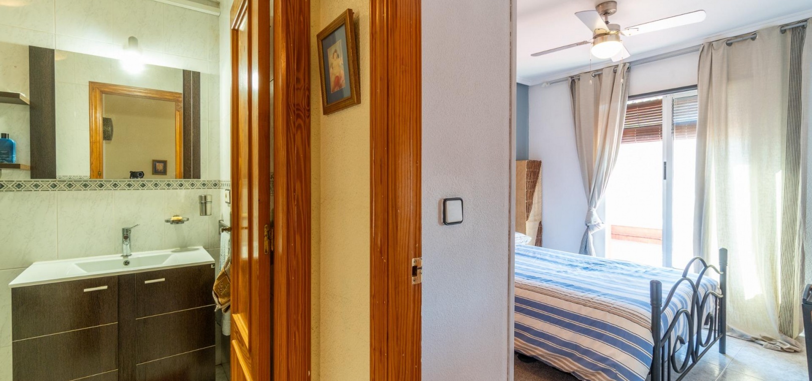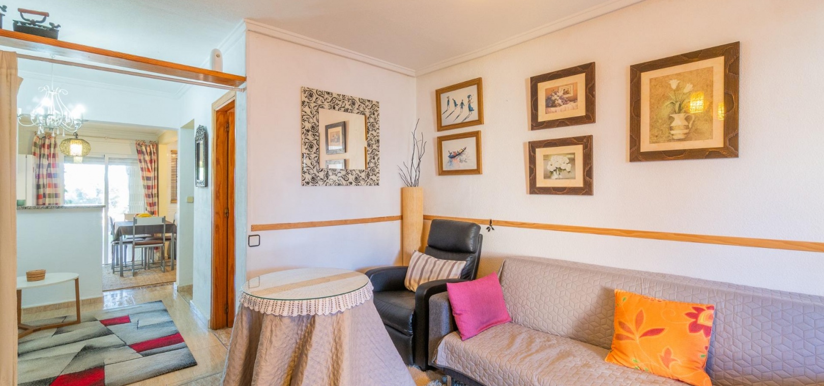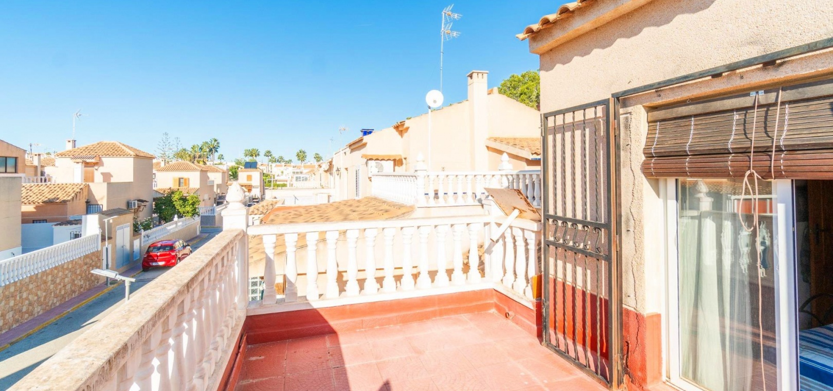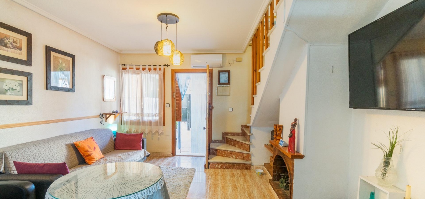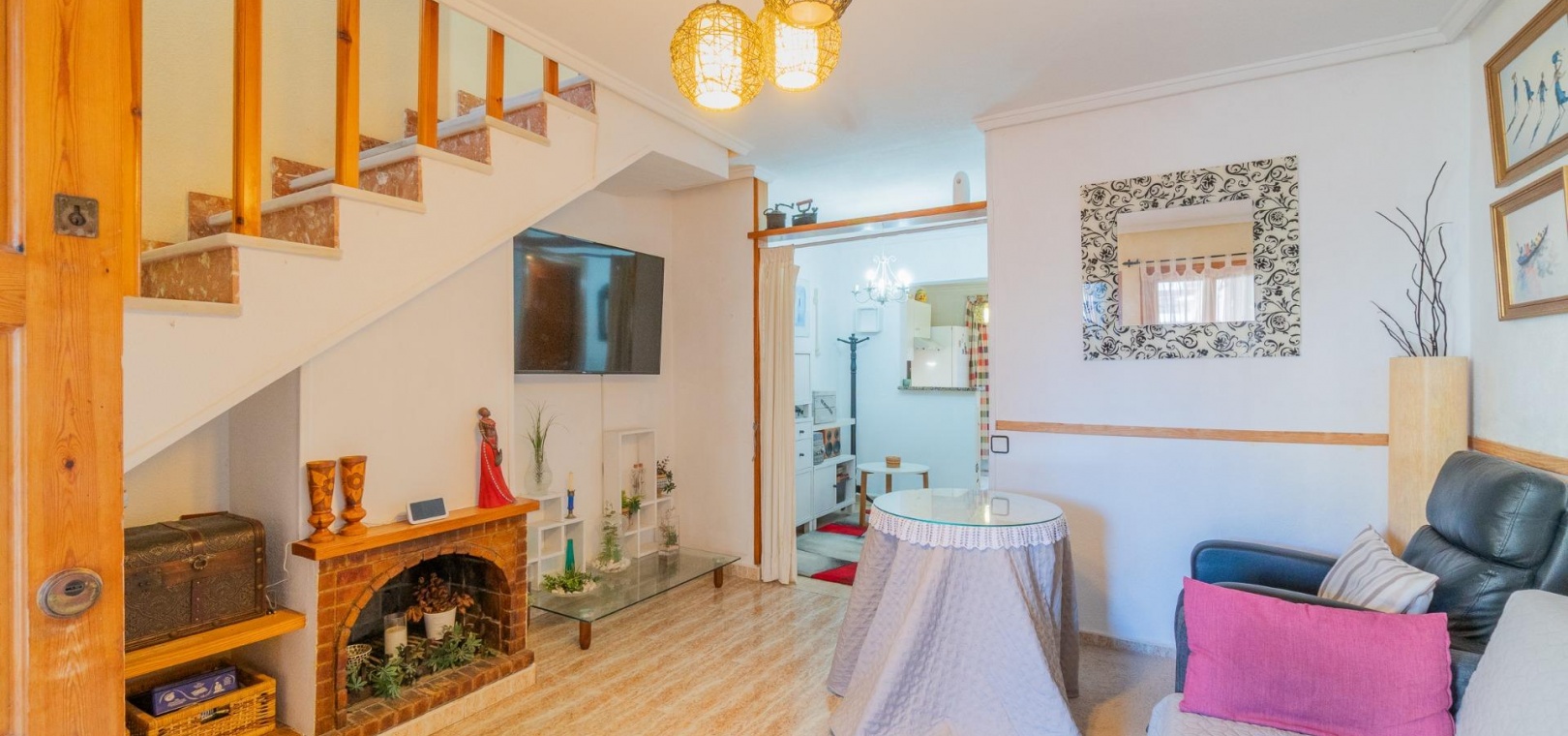 Entdecken Sie dieses charmante Reihenhaus in der begehrten Gegend Los Balcones in Torrevieja. Mit einer Wohnfläche von ca. 60 m2, inklusive der erweiterten Küche, bietet diese Immobilie dank ihrer Südausrichtung optimalen Komfort und sonnige, mediterrane Atmosphäre.~~Sie verfügt über eine großzügige, 30 m2 große private Terrasse, ideal zum Entspannen oder für unvergessliche Momente mit Freunden und Familie.~~Im Erdgeschoss befinden sich ein helles Wohn-Esszimmer, perfekt für gesellige Runden, eine funktionale Küche und ein Gäste-WC.~~Im ersten Stock befinden sich zwei Schlafzimmer, jeweils mit Zugang zu einer eigenen Terrasse, von der aus Sie den Blick auf die Natur genießen können.~~Zusätzlich steht Ihnen ein Gemeinschaftspool zur Verfügung, und Sie können Ihr Auto auf dem Grundstück parken.~~Die strategisch günstige Lage in der Nähe des Meeres (nur 1500 Meter entfernt) sowie wichtiger Einrichtungen wie Schulen, Krankenhäusern und Einkaufszentren bietet Ihnen Ruhe und Komfort zugleich.~~Es ist komplett möbliert und bezugsfertig: Bringen Sie einfach Ihre Koffer mit! Verpassen Sie nicht diese einmalige Gelegenheit, dieses charmante Küstenrefugium zu erwerben.