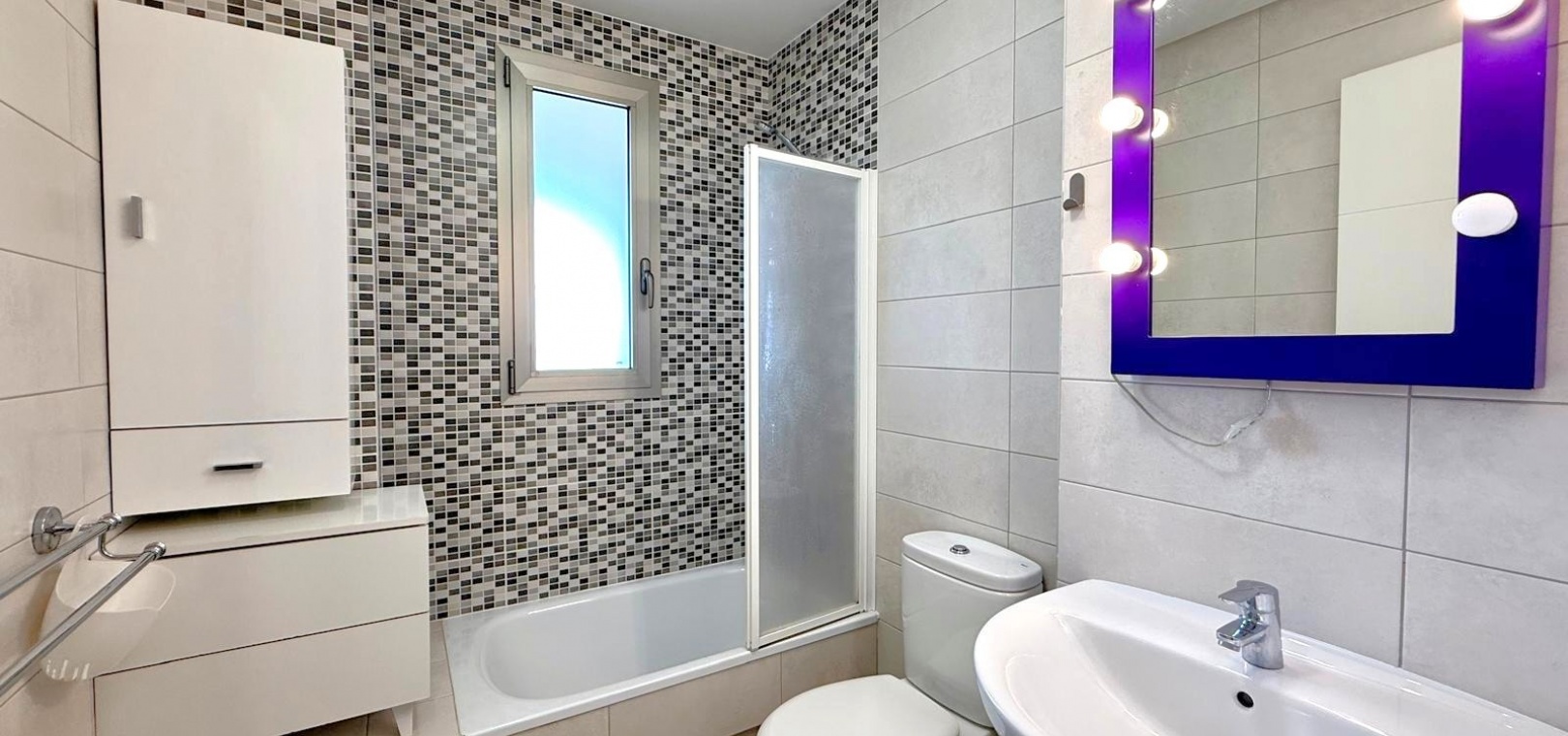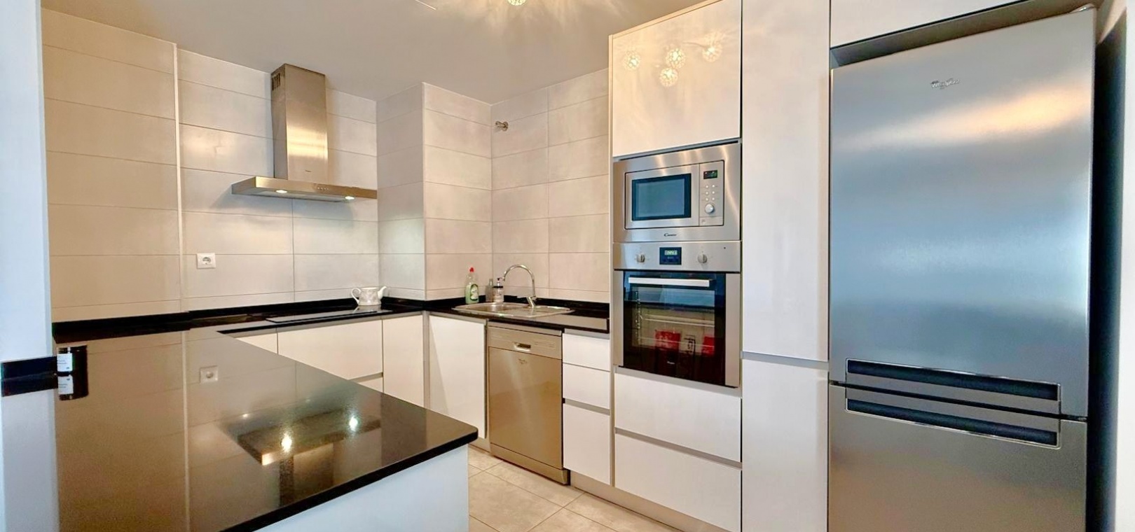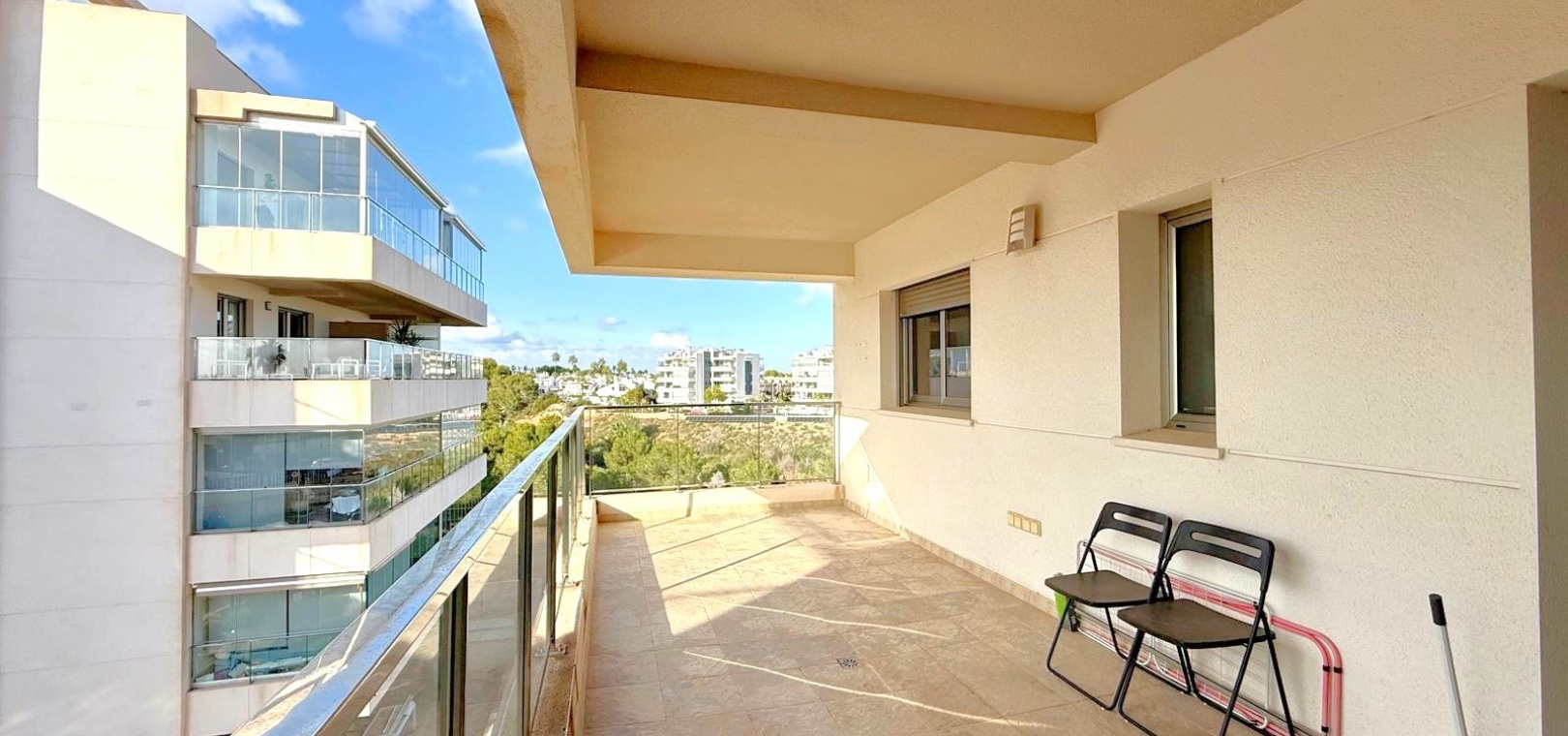 Die Wohnung verfügt über eine große Terrasse (ca. 20 m²) mit herrlichem Blick ins Grüne, die Sie das ganze Jahr über genießen können. Die Wohnung befindet sich im 3. Obergeschoss und ist bequem mit dem Aufzug erreichbar. Sie bietet einen hellen, offenen Wohn-, Ess- und Küchenbereich, zwei Doppelschlafzimmer und zwei Badezimmer. Die Immobilie wird möbliert (Inventarprüfung vorbehalten) inklusive Haushaltsgeräten und Klimaanlage verkauft. Zur Ausstattung gehören außerdem ein Gemeinschaftspool, ein Spa mit Sauna und Whirlpool, ein Fitnessraum und ein sicherer Parkplatz. Alle Annehmlichkeiten befinden sich in unmittelbarer Nähe. Preis: 235.000 €; jährliche Gemeinschaftsgebühren: ca. 1.080 €; jährliche Grundsteuer: ca. 310 €.