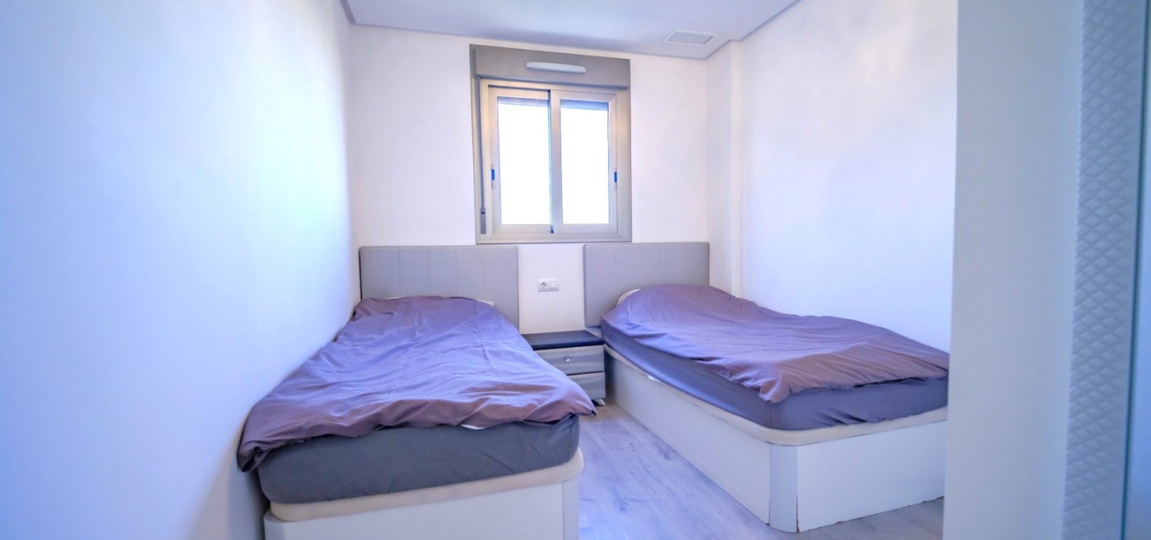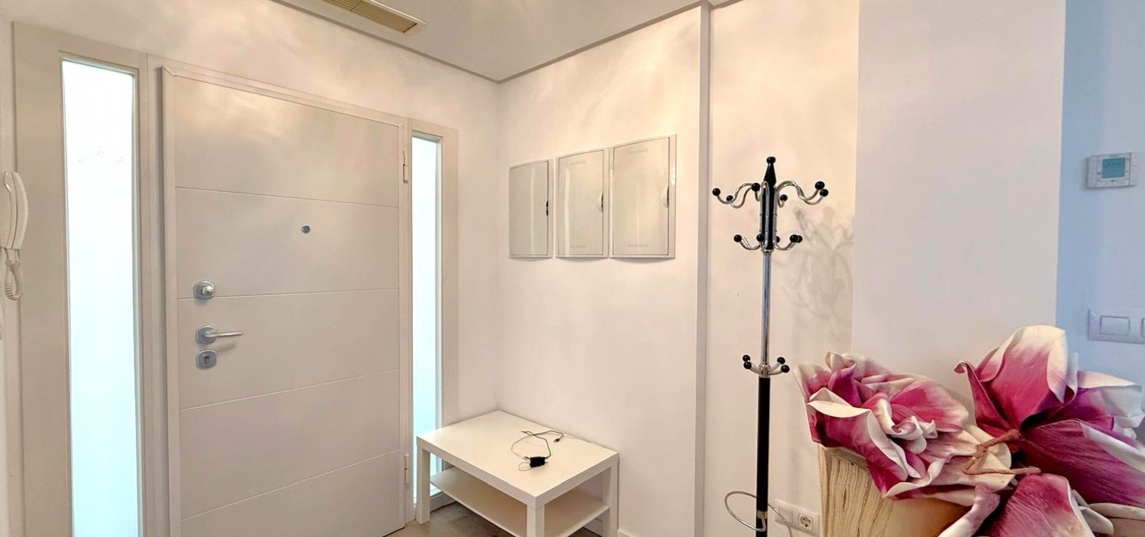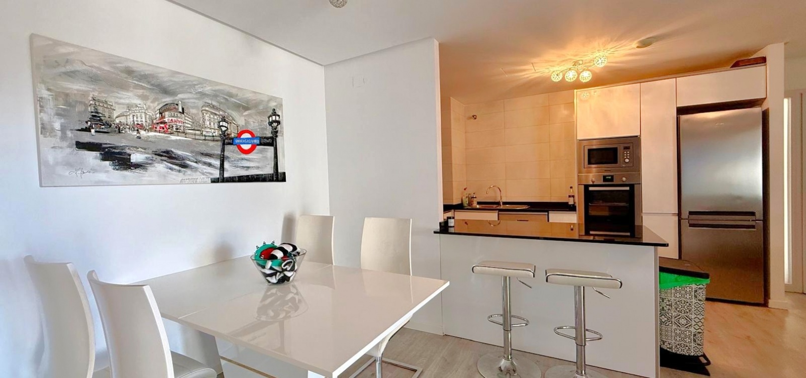 Die Wohnung verfügt über eine große Terrasse (ca. 20 m²) mit herrlichem Blick ins Grüne, die Sie das ganze Jahr über genießen können. Die Wohnung befindet sich im 3. Obergeschoss und ist bequem mit dem Aufzug erreichbar. Sie bietet einen hellen, offenen Wohn-, Ess- und Küchenbereich, zwei Doppelschlafzimmer und zwei Badezimmer. Die Immobilie wird möbliert (Inventarprüfung vorbehalten) inklusive Haushaltsgeräten und Klimaanlage verkauft. Zur Ausstattung gehören außerdem ein Gemeinschaftspool, ein Spa mit Sauna und Whirlpool, ein Fitnessraum und ein sicherer Parkplatz. Alle Annehmlichkeiten befinden sich in unmittelbarer Nähe. Preis: 235.000 €; jährliche Gemeinschaftsgebühren: ca. 1.080 €; jährliche Grundsteuer: ca. 310 €.