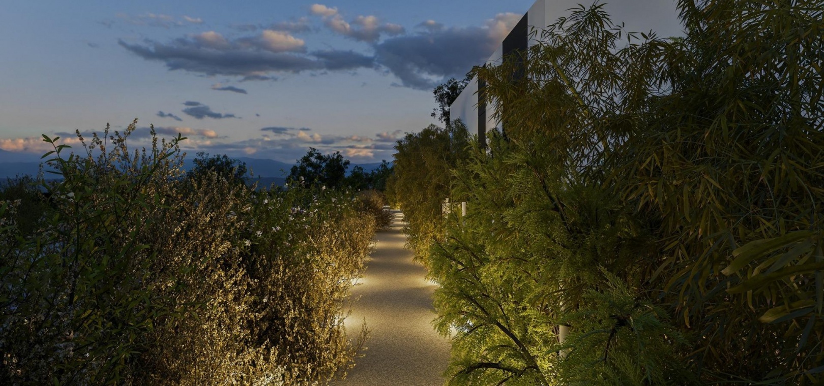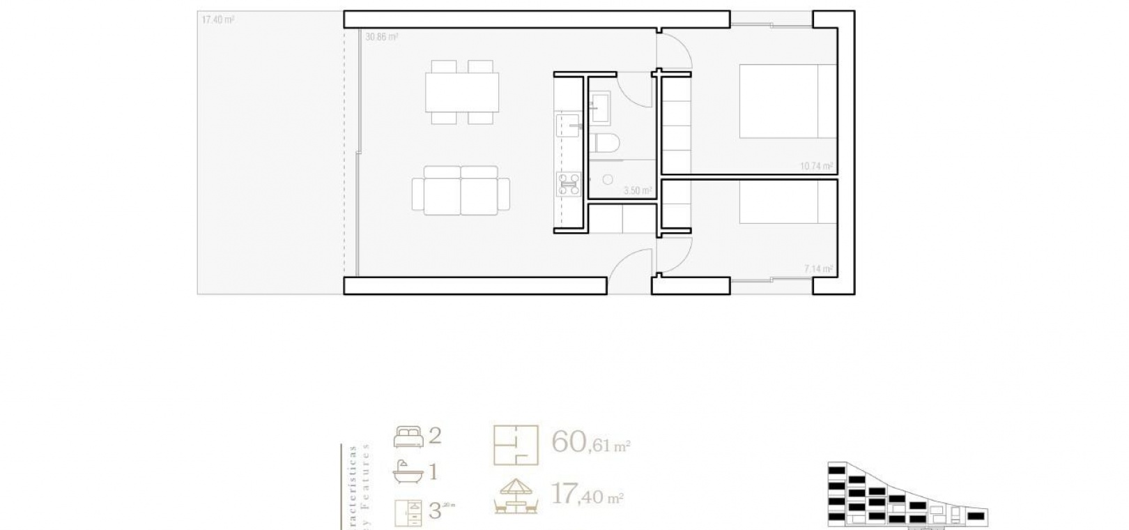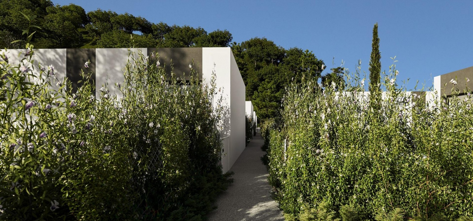 Die Villen sind auf einer Ebene verteilt und bieten ein oder zwei Schlafzimmer mit einem Badezimmer. Jede Wohnung verfügt über ein zeitgemäßes Design mit klaren Linien, großen Fenstern und einem separaten Eingang. Geräumige Terrassen von ca. 17 m² schließen nahtlos an die Wohnbereiche an, während die privaten Gärten zwischen 46 m² und 200 m² groß sind und sich ideal für das Leben im Freien eignen. Alle Wohnungen verfügen über einen privaten Parkplatz, Lagerräume sind optional erhältlich.