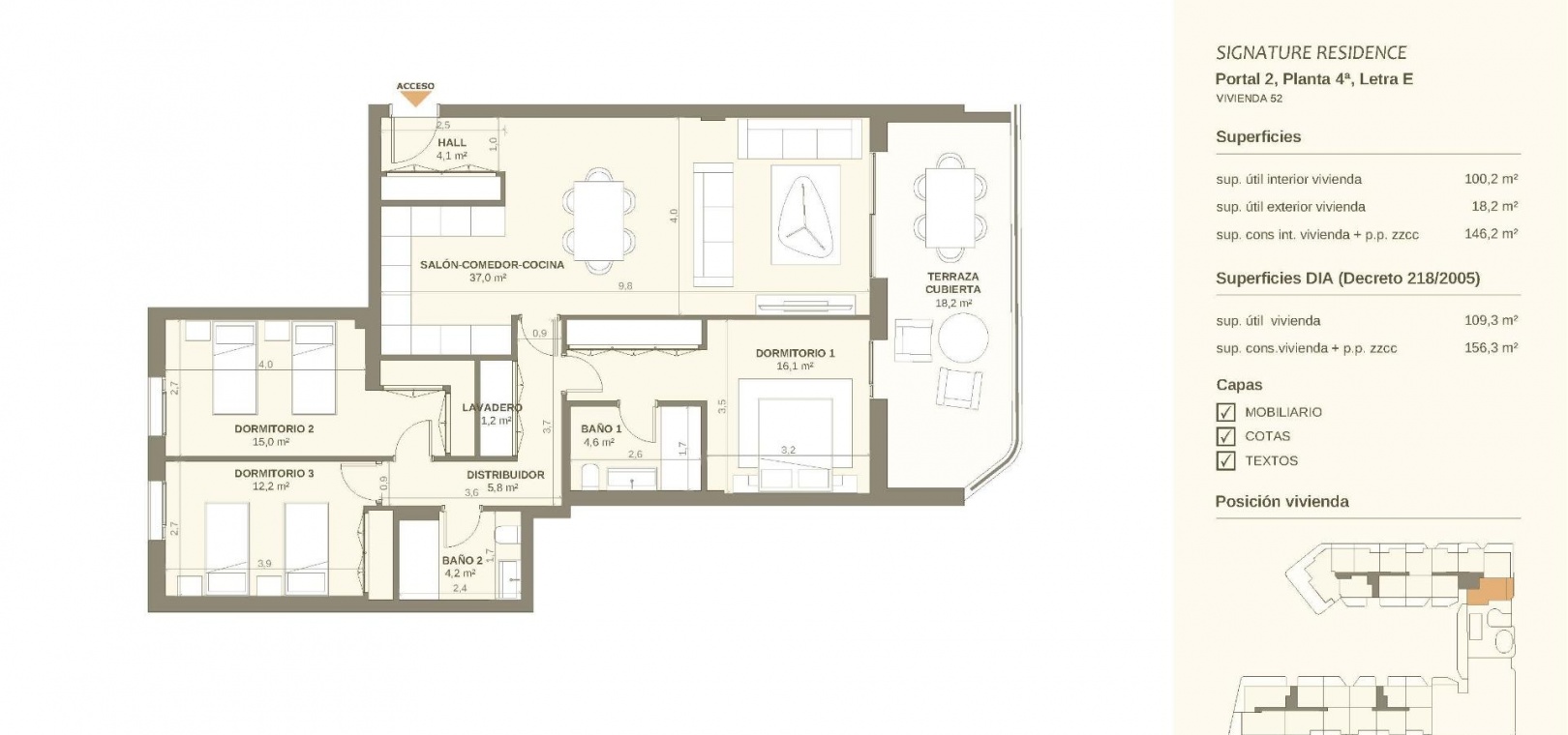 Die Wohnungen sind mit motorisierten Rollläden in den Schlafzimmern, einer vollständig installierten Klimaanlage, aerothermischen Systemen für Energieeffizienz, gepanzerten Eingangstüren und Badezimmern mit Möbeln, Spiegeln und Duschwänden ausgestattet. Die Küchen sind komplett mit hochwertigen Geräten ausgestattet, die Funktionalität und zeitgemäßes Design vereinen.