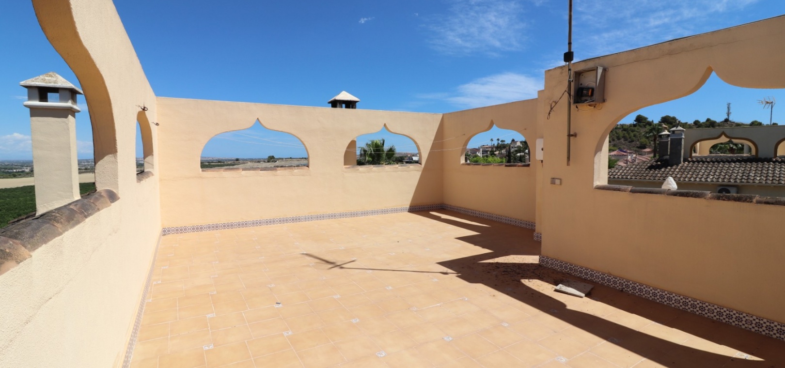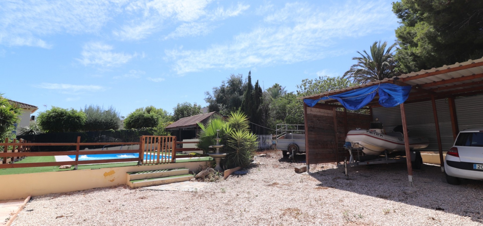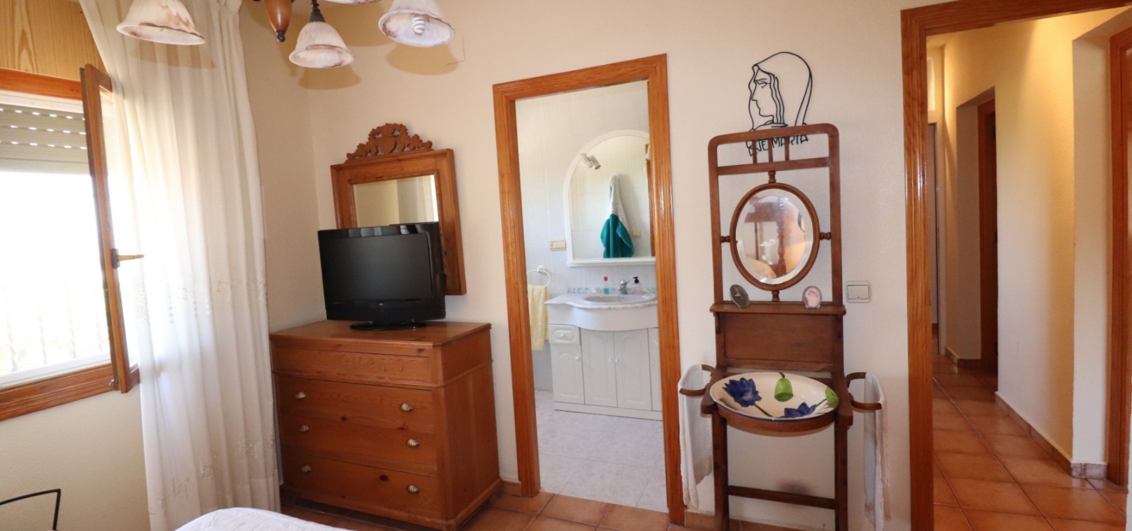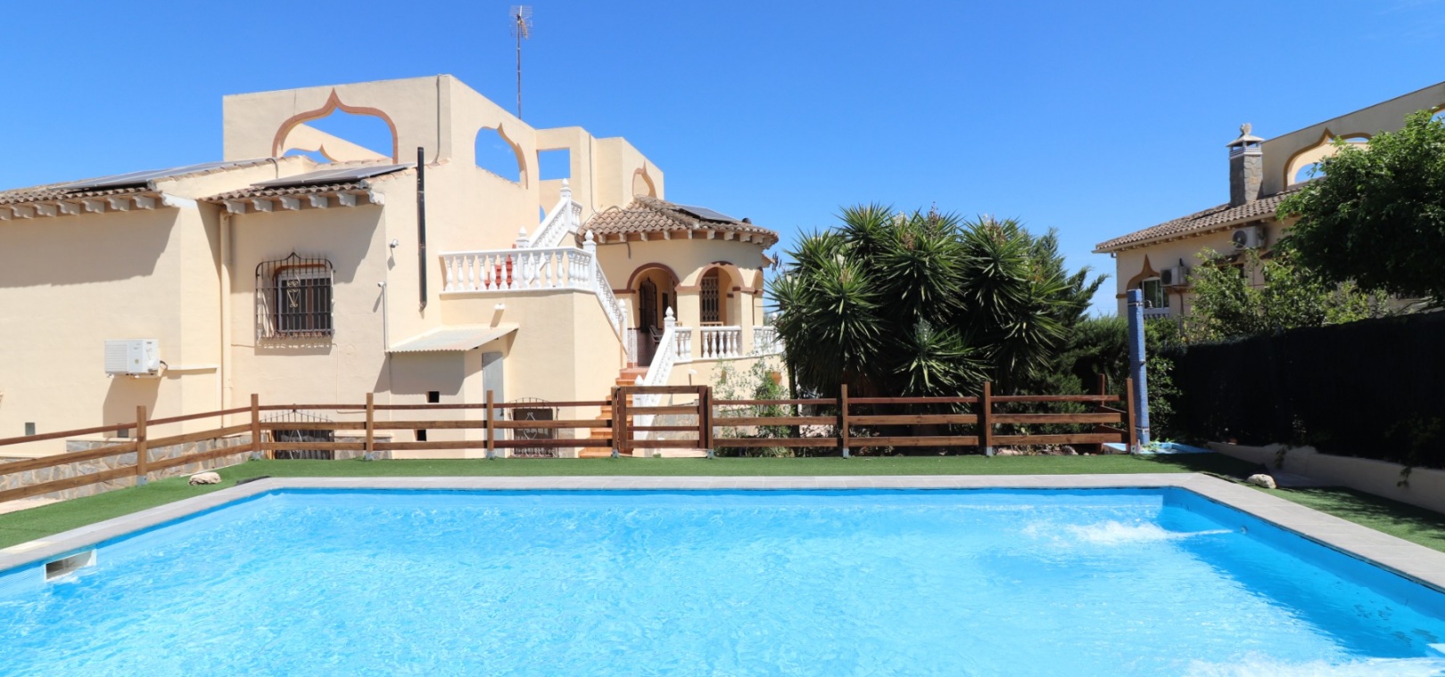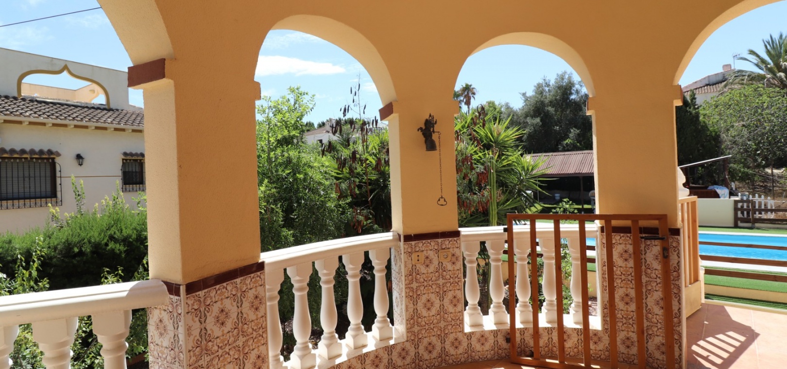 Diese charaktervolle, nach Osten ausgerichtete, freistehende Villa mit drei Schlafzimmern liegt in Lomas de la Juliana, einer renommierten Urbanisation zwischen dem Dorf Algorfa und dem 5-Sterne-Hotel & Spa-Resort La Finca Golf, die nur wenige Autominuten entfernt sind. Hier finden Sie Annehmlichkeiten wie Bars, Restaurants, Geschäfte, Banken, eine Apotheke, ein medizinisches Zentrum... Die Strände von Guardamar oder Orihuela Costa sind mit dem Auto etwa 20 Minuten entfernt. Das Anwesen strotzt vor Charakter, nimmt ein 1140 m² großes Grundstück ein und erstreckt sich über zwei Ebenen. Das Erdgeschoss, das fast durchgehend mit Balken versehen ist, profitiert von einem Wohnzimmer mit Eckkamin; einer geräumigen Einbauküche/Esszimmer mit wunderschönen Bogentüren aus Massivholz, die in einen weiteren Raum führen, den Sie ganz an Ihre eigenen Bedürfnisse anpassen können; einem Doppelzimmer mit Einbauschränken; einem Einzelschlafzimmer mit begehbarem Kleiderschrank und Zugang zu einem weiteren Raum, der als Schlafzimmer genutzt werden könnte; einem Familienduschraum. Eine Treppe führt vom Küchenbereich zum Hauptwohnbereich, der auch über eine Außentreppe zur verglasten Haupteingangsterrasse zugänglich ist, die in den Hauptwohnbereich führt; separate Einbauküche; zwei Doppelschlafzimmer, Hauptschlafzimmer mit eigenem Bad; Einzelschlafzimmer; weiteres Familienbadezimmer. Von der gewölbten, überdachten Terrasse führen Stufen hinunter zum Poolbereich, außerdem gibt es Außentreppen hinauf zum Solarium, wo Sie die schöne Aussicht auf die Landschaft und die Berge genießen können. Der angelegte Garten mit einer Vielzahl von Pflanzen, Bäumen und Sträuchern verfügt außerdem über einen 10 x 5 großen Privatpool, einen Parkplatz abseits der Straße; Nebengebäude, die Aufmerksamkeit erfordern. Sie müssen sich diese eigenwillige Villa einfach ansehen, um zu schätzen, was sie zu bieten hat.