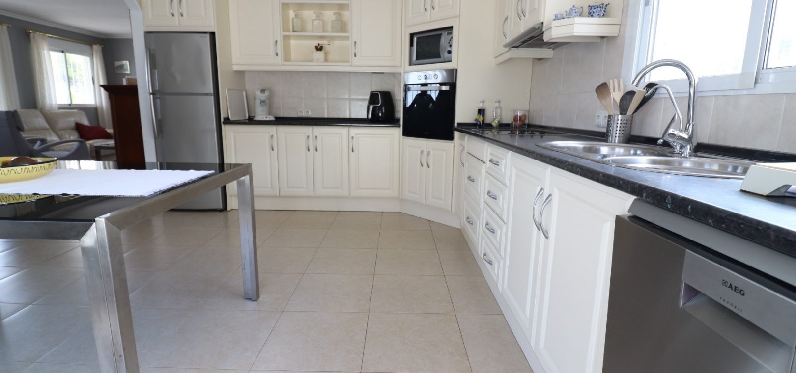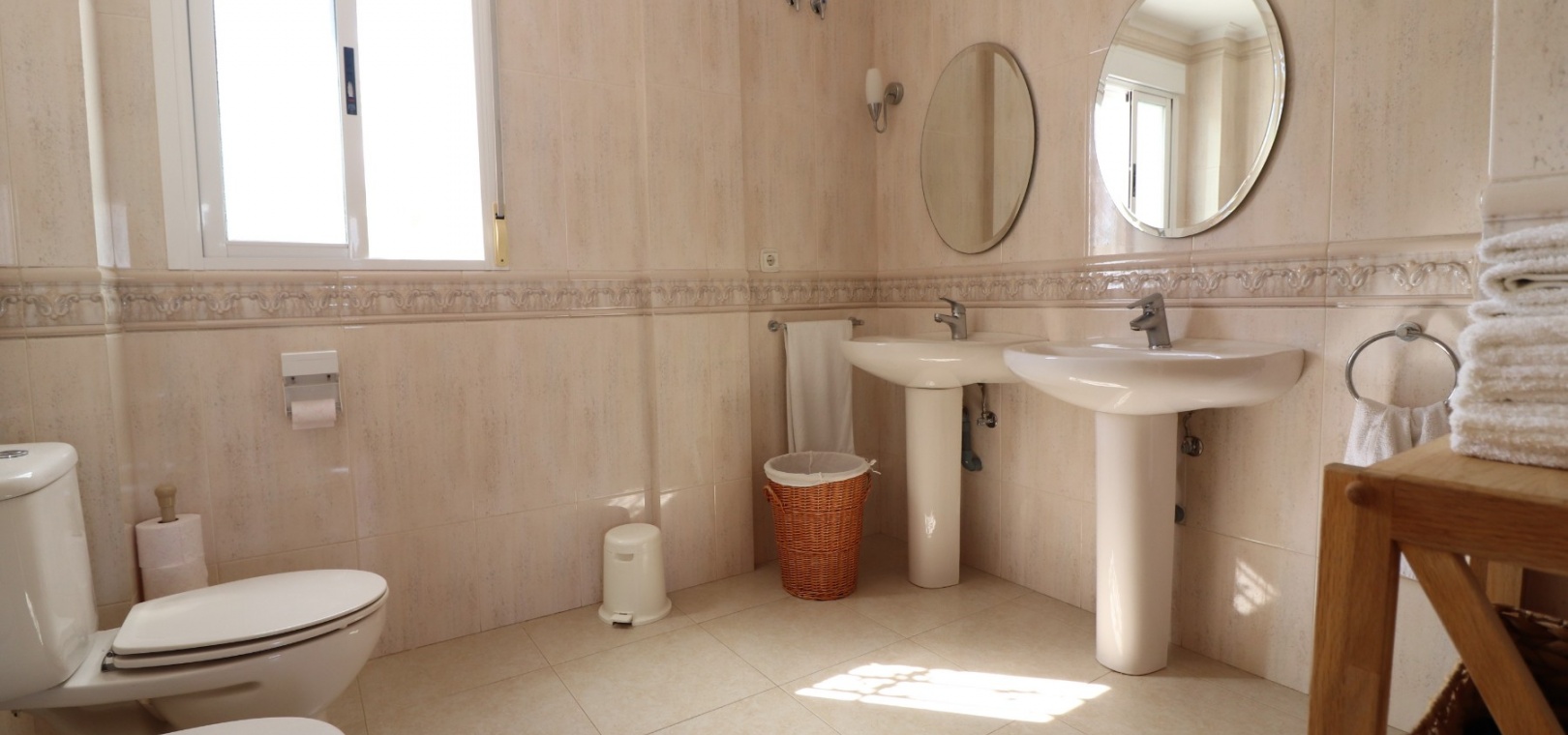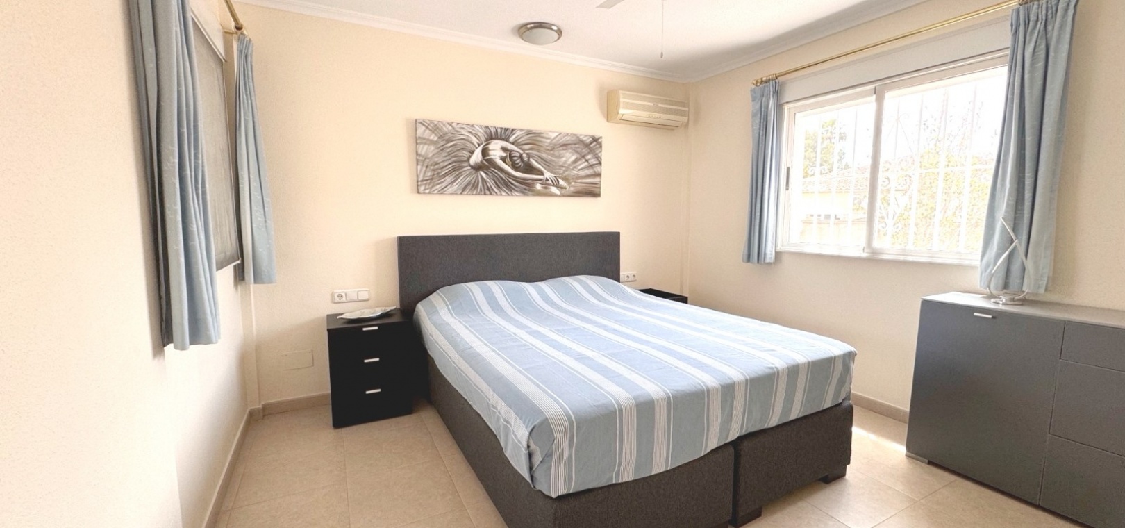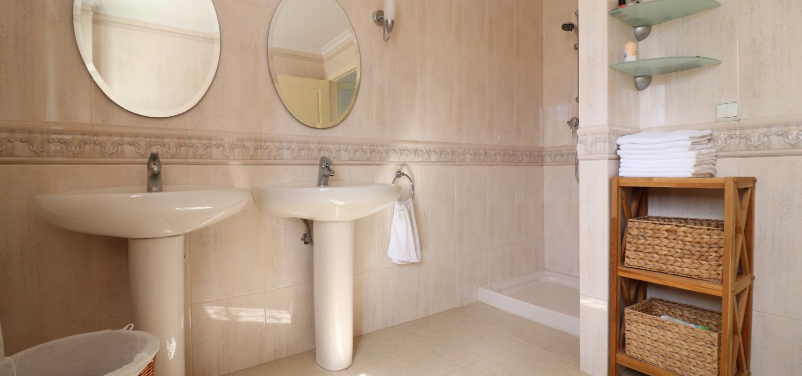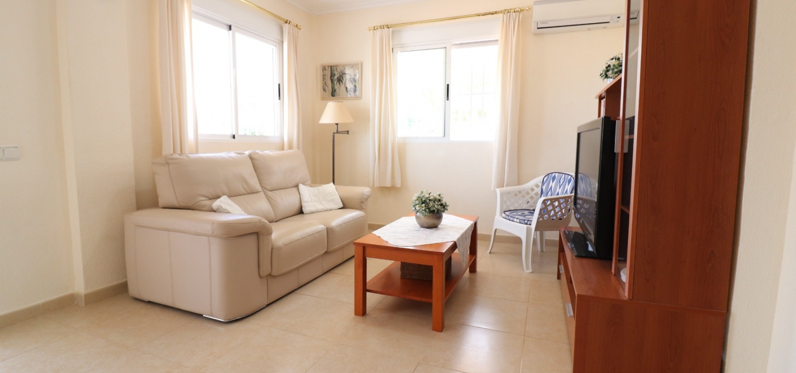 Diese imposante, freistehende Villa mit 216 m², drei Schlafzimmern und einer Wohnfläche von 216 m² befindet sich in Lomas de La Juliana in einer sehr gefragten Wohngegend mit einem Tennisclub am Eingang und dem 5-Sterne-Hotel La Finca, einem Spa und einem Golfplatz direkt vor der Haustür, wo Sie auch eine Vielzahl von Restaurants und Geschäften finden. Die wichtigsten Supermarktketten finden Sie in Almoradi und Benijofar, die nur 5 Autominuten entfernt sind. Die Strände entlang der Küste sind mit dem Auto etwa 20 Minuten entfernt. Dieses außergewöhnliche Haus steht auf einem 1220 m² großen, privaten, landschaftlich gestalteten Grundstück mit der umfassendsten Aussicht, die Sie in der Gegend finden werden. Der Hauptwohnbereich der Villa ist über eine Außentreppe zu einem überdachten Terrassenbereich in L-Form zugänglich, von dem aus Sie in den schönen, hellen Wohnbereich gelangen, der über Schiebetüren und drei Fenstersätze, einen offenen Kamin, eine unglaubliche Einbauküche/Frühstücksraum, ein Doppelschlafzimmer und ein Familienduschbad verfügt. Das Erdgeschoss des Anwesens ist von außen zugänglich und besteht aus einem Wohnzimmer, einem Torbogen zur Einbauküche, einem Badezimmer und zwei Doppelschlafzimmern. Der Garten ist mit Kieselsteinen und Fliesen ausgelegt und hat eine lange Auffahrt, die zu einer Garage und einem Carport führt. Der Poolbereich ist gefliest und von vielen ausgewachsenen Bäumen, Büschen und Palmen umgeben. Zu den Extras gehören Fußbodenheizung im gesamten Erdgeschoss, Klimaanlage, Einbauschränke in allen Schlafzimmern und ein Bewässerungssystem.