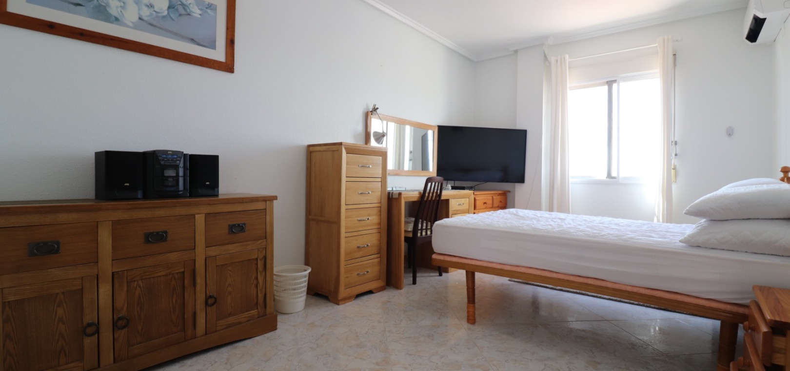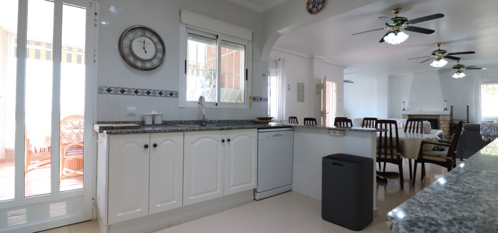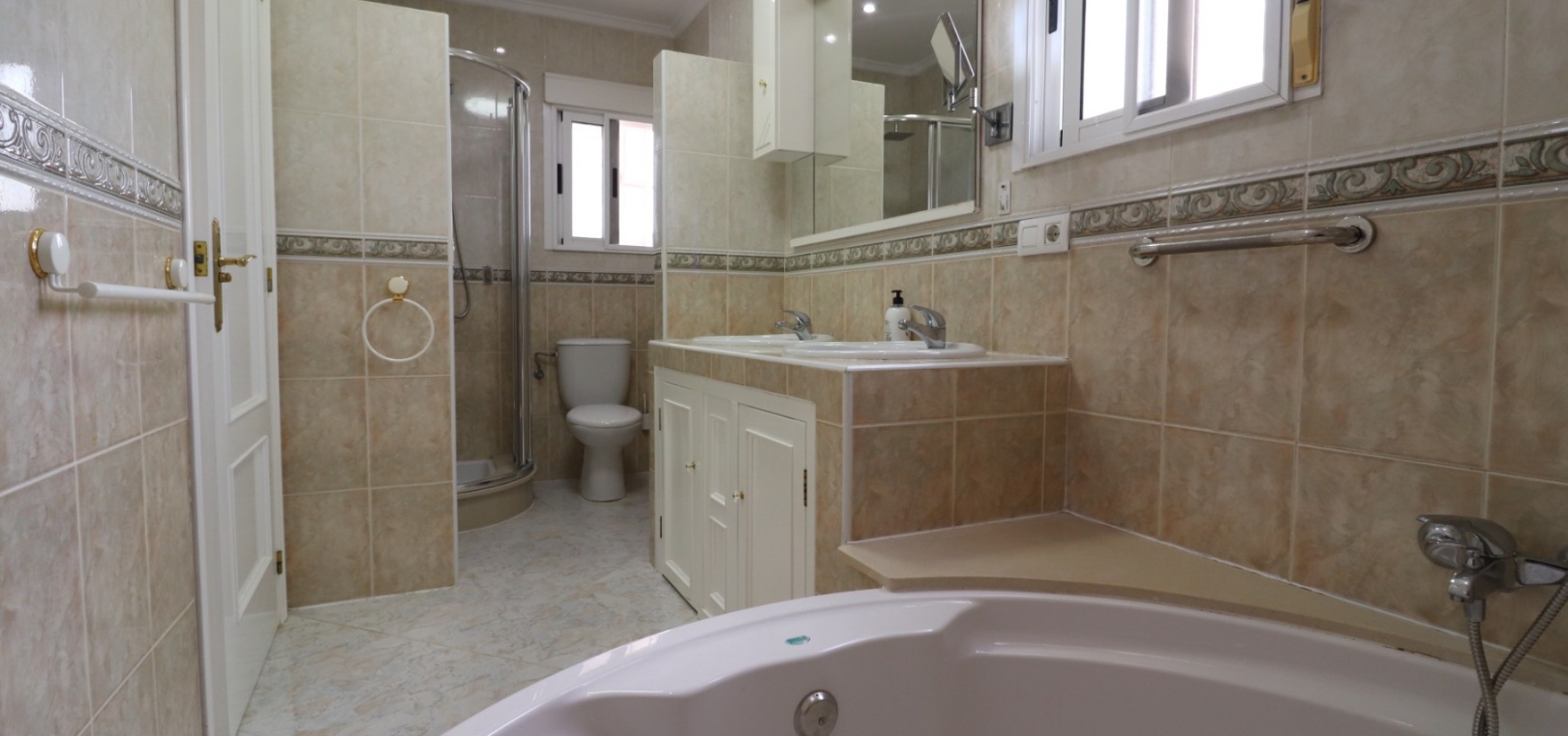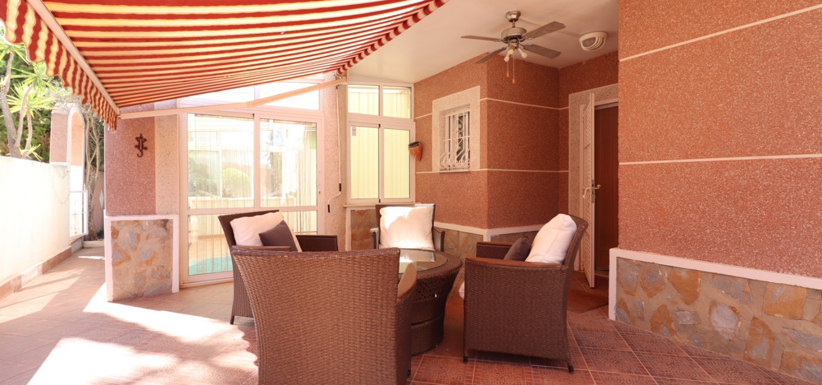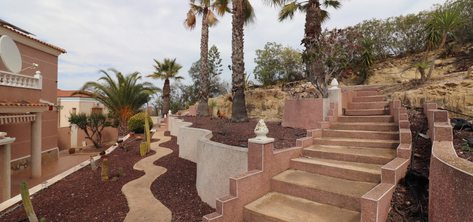 Diese äußerst geräumige, nach Westen ausgerichtete, freistehende Villa mit vier Schlafzimmern in Lomas de La Juliana befindet sich in einer prestigeträchtigen Urbanisation zwischen Algorfa Village und La Finca Golf Resort auf einem großzügigen Grundstück von 1251 m². Dieses atemberaubende Anwesen verfügt über vier Schlafzimmer und drei Badezimmer, darunter ein luxuriöses Hauptschlafzimmer mit eigenem Badezimmer, das über eine Eckbadewanne und eine Dusche verfügt. Sowohl das Hauptschlafzimmer als auch das vierte Schlafzimmer haben direkten Zugang zur Terrasse im ersten Stock. Darüber hinaus gibt es eine Toilette, einen Parkplatz abseits der Straße, einen Carport und eine Garage. Die Villa bietet eine verglaste Terrasse an der Vorderseite, von der Sie einen atemberaubenden Panoramablick auf die Landschaft, die Berge und den Sonnenuntergang genießen können. Der Wintergarten an der Rückseite bietet zusätzlichen Wohnraum, während die offene, voll ausgestattete Küche mit einem angrenzenden Hauswirtschaftsraum für zusätzlichen Komfort ausgestattet ist. Der geräumige Wohnbereich ist durchgehend mit Klimaanlage, Grills, einem Kamin und Einbauschränken für reichlich Stauraum ausgestattet. Das Äußere des Anwesens ist ebenso beeindruckend und verfügt über einen privaten beheizten Swimmingpool und einen festen Pavillon für schattige Mahlzeiten im Freien, perfekt für die Unterhaltung von Gästen. Es gibt auch einen Grillplatz und einen wunderschön angelegten Garten hinter dem Haus mit Terrassen, Bäumen, Sträuchern und Pflanzen. Das Anwesen verfügt über 8 Sonnenkollektoren und 1 Solar-Wasserkollektor, was zu seiner Energieeffizienz beiträgt. Sicherheit hat Priorität, da CCTV und ein Alarmsystem installiert sind. Die Lage dieser Villa bietet das Beste aus beiden Welten – eine ruhige Umgebung mit einem Tennisclub am Anfang der Urbanisation, aber nur 5 Autominuten von den nächsten Geschäften und Annehmlichkeiten und 15 Autominuten von den nächsten Stränden entfernt. Dieses Anwesen repräsentiert wahrhaftig einen luxuriösen Lebensstil im Herzen der Costa Blanca Süd. 412 m2 Baufläche, einfach Wow!!!