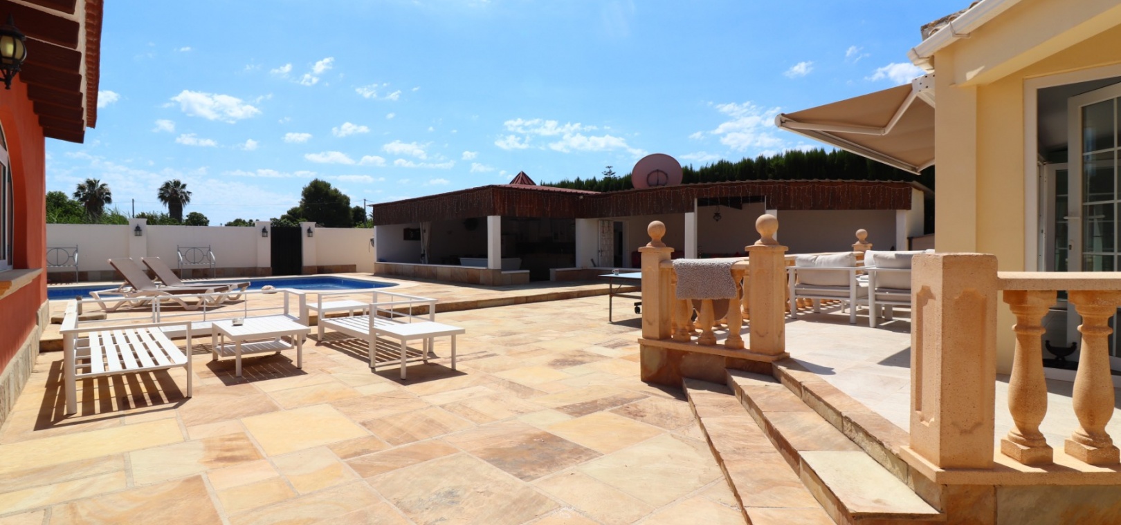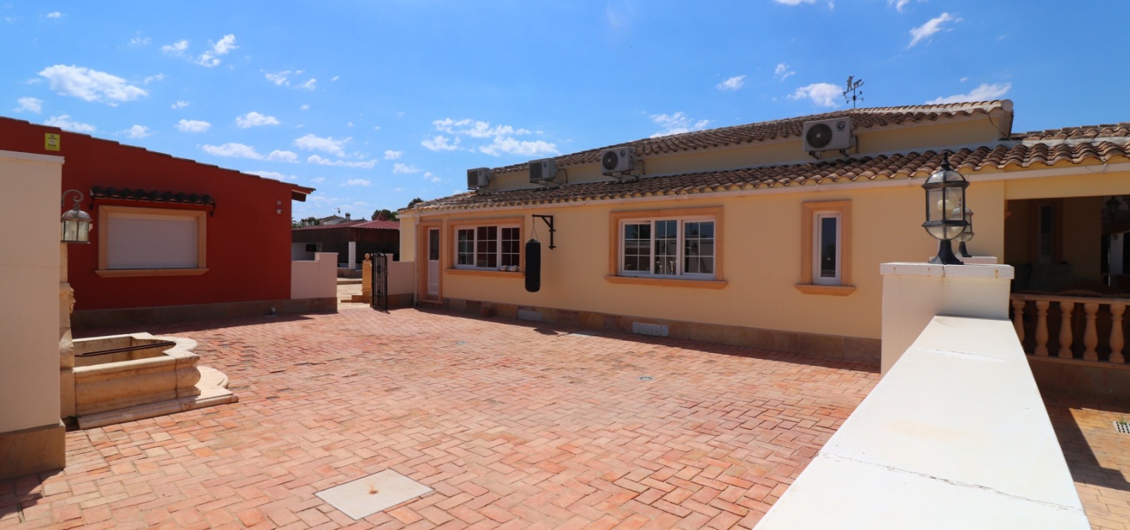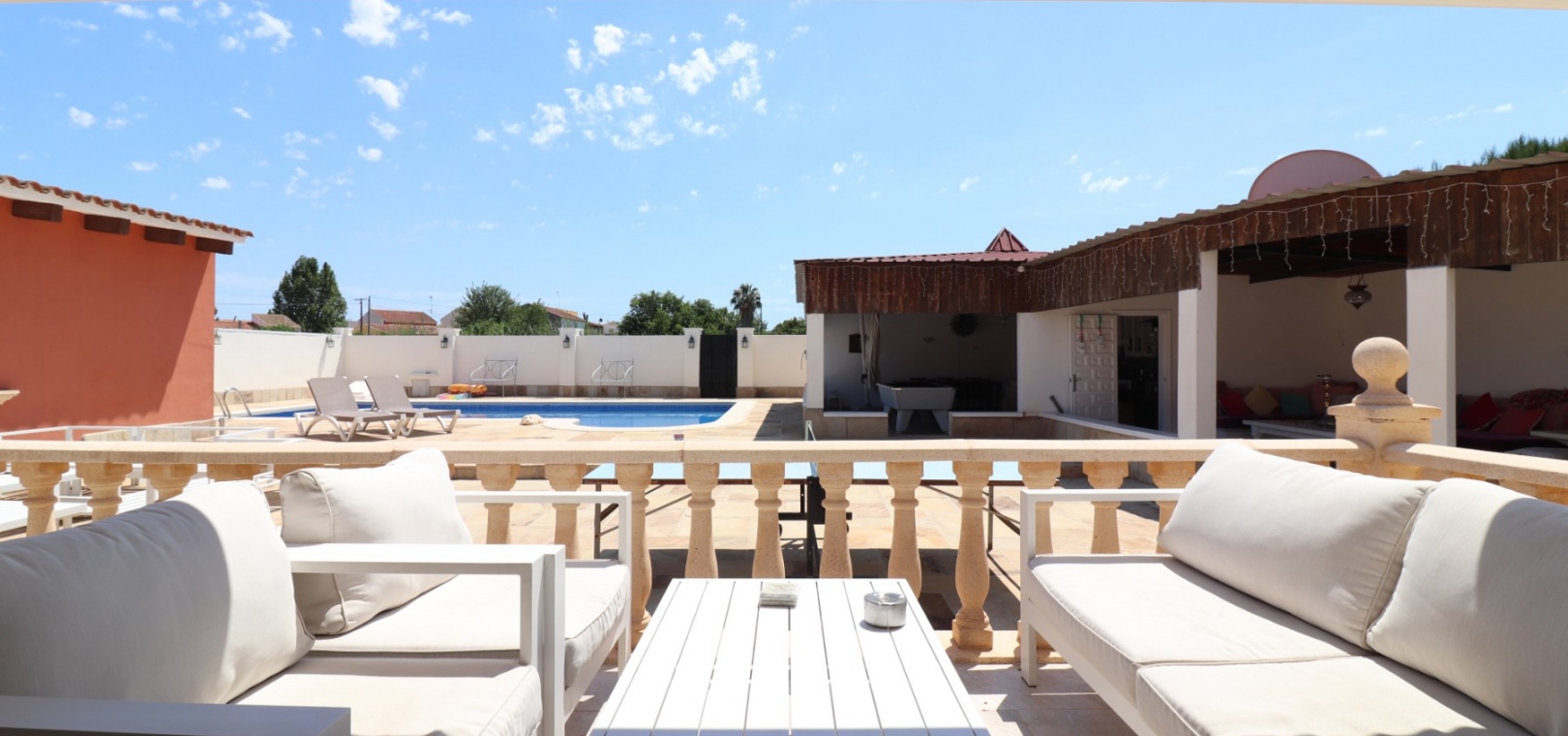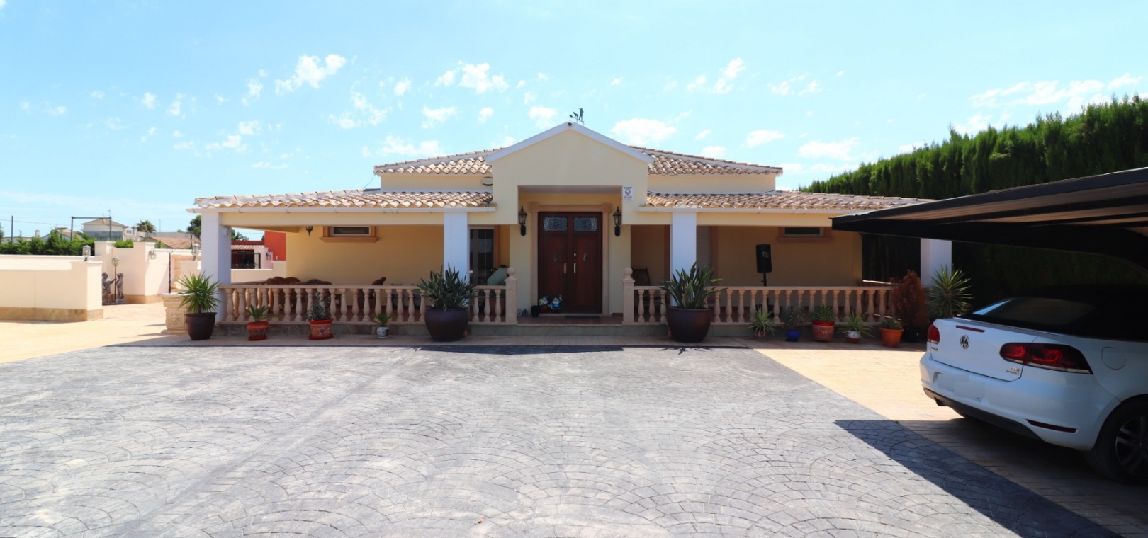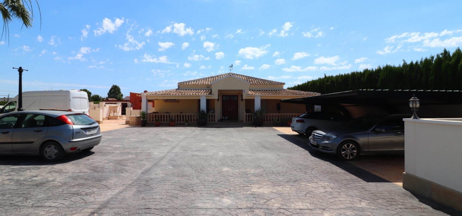 Diese wirklich begehrenswerte, nach Osten und Westen ausgerichtete, freistehende Landvilla mit vier/sechs Schlafzimmern, Ställen und Koppel steht auf einem 2000 m² großen Grundstück in Las Heredades zwischen Formentera del Segura und Almoradi in malerischer Umgebung, nur 6–7 Gehminuten von dem charmanten spanischen Dorf und nur 5 Autominuten von Formentera del Segura, Rojales und Benijofar entfernt. Die atemberaubenden Strände und die beliebte Promenade von Guardamar sind nur 15 Autominuten entfernt. Die Hauptvilla verfügt über 4 Schlafzimmer und 3 Badezimmer sowie 1 Garderobe. Eines der Schlafzimmer wird derzeit als Golfsimulatorraum genutzt, während das Hauptschlafzimmer über einen begehbaren Kleiderschrank und ein atemberaubendes Bad mit Badewanne und Dusche verfügt. Zwei der übrigen Schlafzimmer haben auch ein eigenes Bad. Die Villa umfasst eine fabelhafte, moderne Küche im Landhausstil mit fantastischen Türen, die vom Essbereich auf eine Außenterrasse mit Aussicht auf den privaten Pool führen. Der Außenbereich eignet sich perfekt für die Unterhaltung mit einer Außenküche, einem Grill und einem Unterhaltungsbereich. Die separate Gästeunterkunft bietet zwei zusätzliche Schlafzimmer, einen Nassraum, eine Küche und ein Wohnzimmer und ist somit perfekt für Besucher oder die Großfamilie. Das Anwesen umfasst Ställe und eine Koppel, ein Büro im Wohnzimmer der Hauptvilla, Klimaanlage im gesamten Gebäude, Heizpaneele, Einbauschränke und einen separaten Hauswirtschaftsraum. Der Außenbereich verfügt über atemberaubende Fliesen rund um den Swimmingpool, ausreichend Parkplätze abseits der Straße unter dem Carport und einen Springbrunnen. Diese Villa verbindet meisterhaft moderne und traditionelle Elemente und ist damit ein wirklich einzigartiges und begehrenswertes Zuhause an der Costa Blanca Süd.