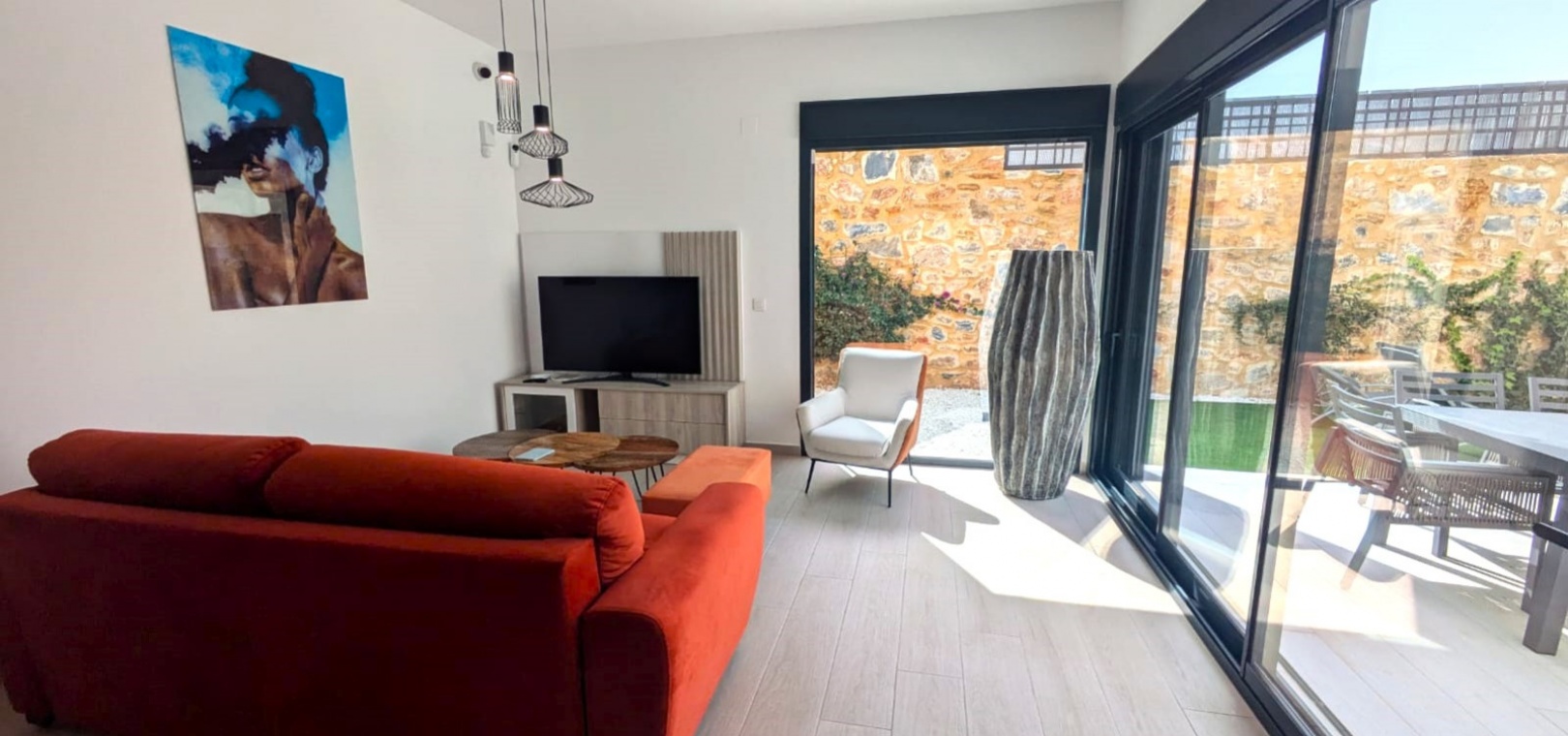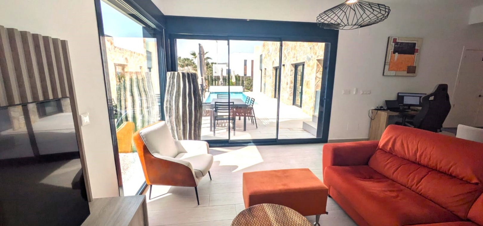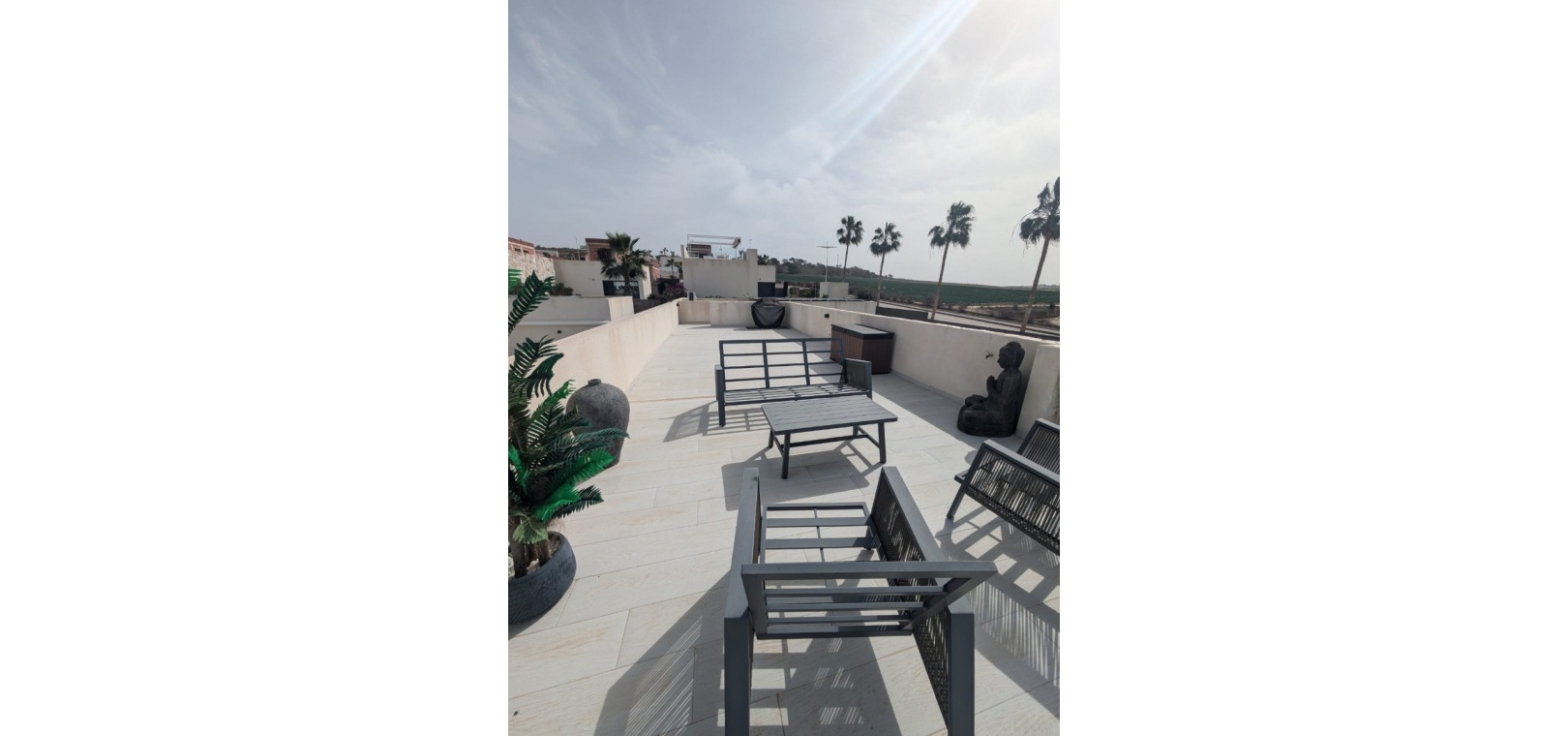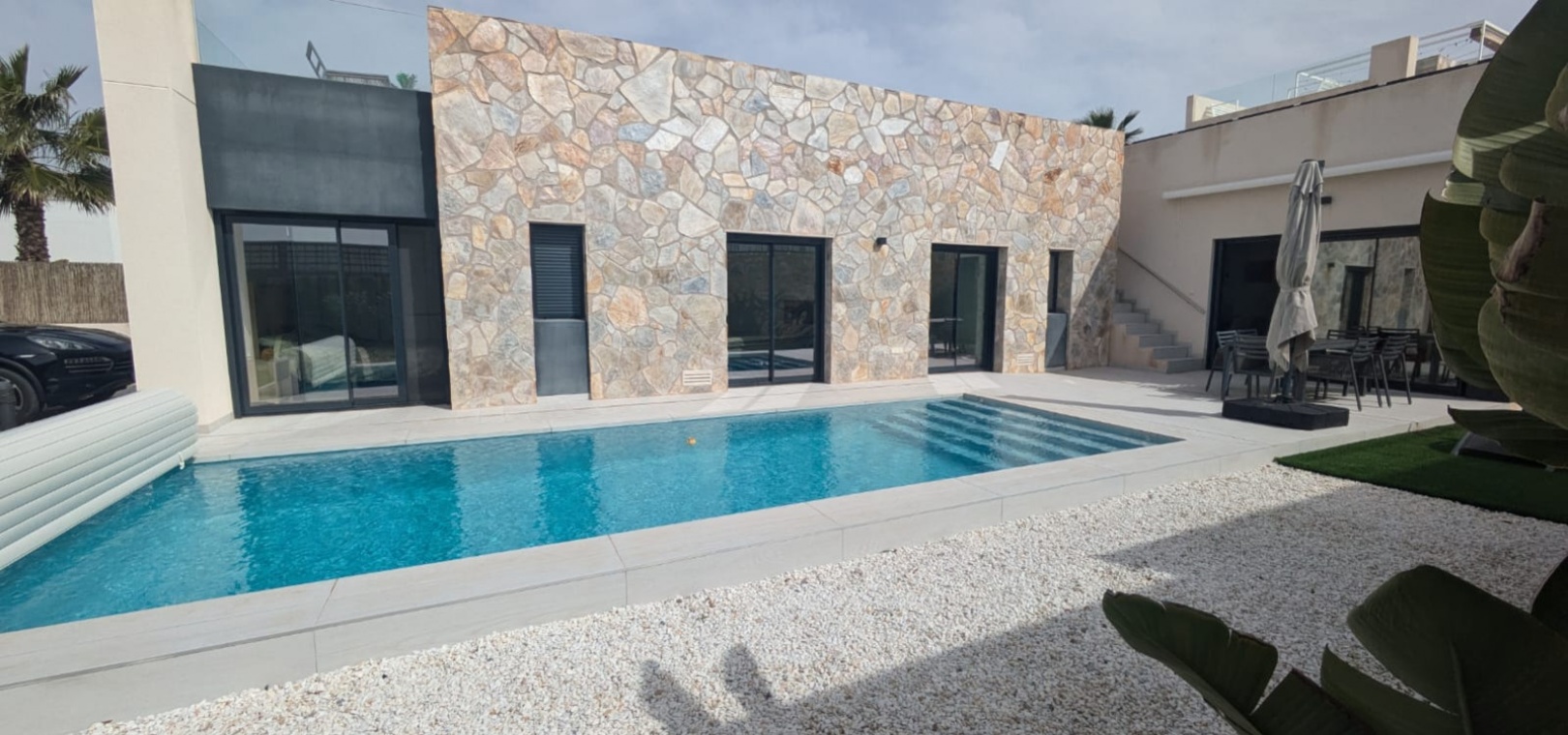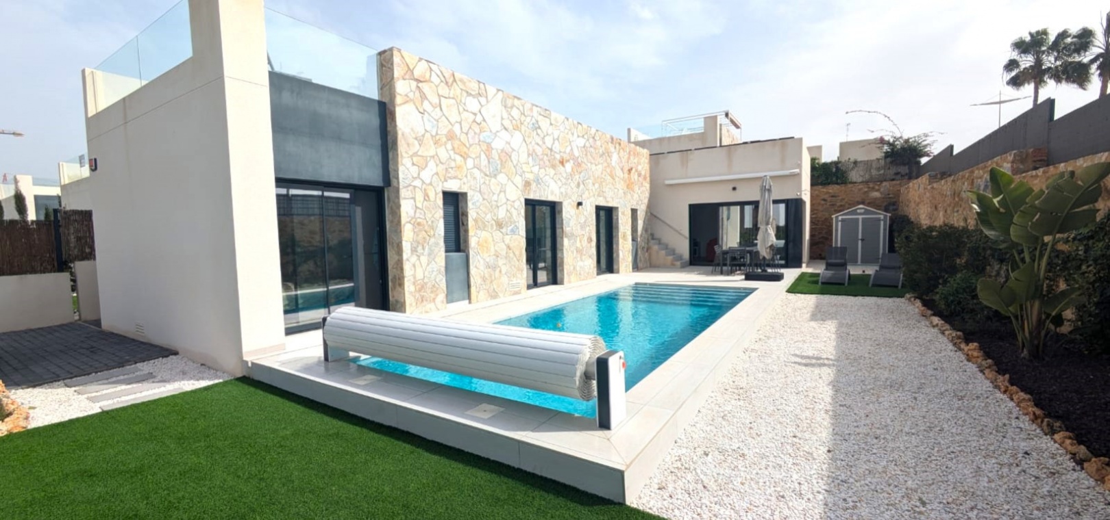 Das Anwesen verfügt über zahlreiche Außenbereiche, darunter einen großen, pflegeleichten Garten mit Ess- und Entspannungsmöglichkeiten in der Sonne. Außerdem gibt es eine große Sonnenterrasse mit herrlichem Blick auf den Golfplatz La Finca.