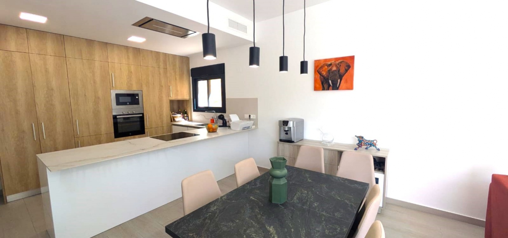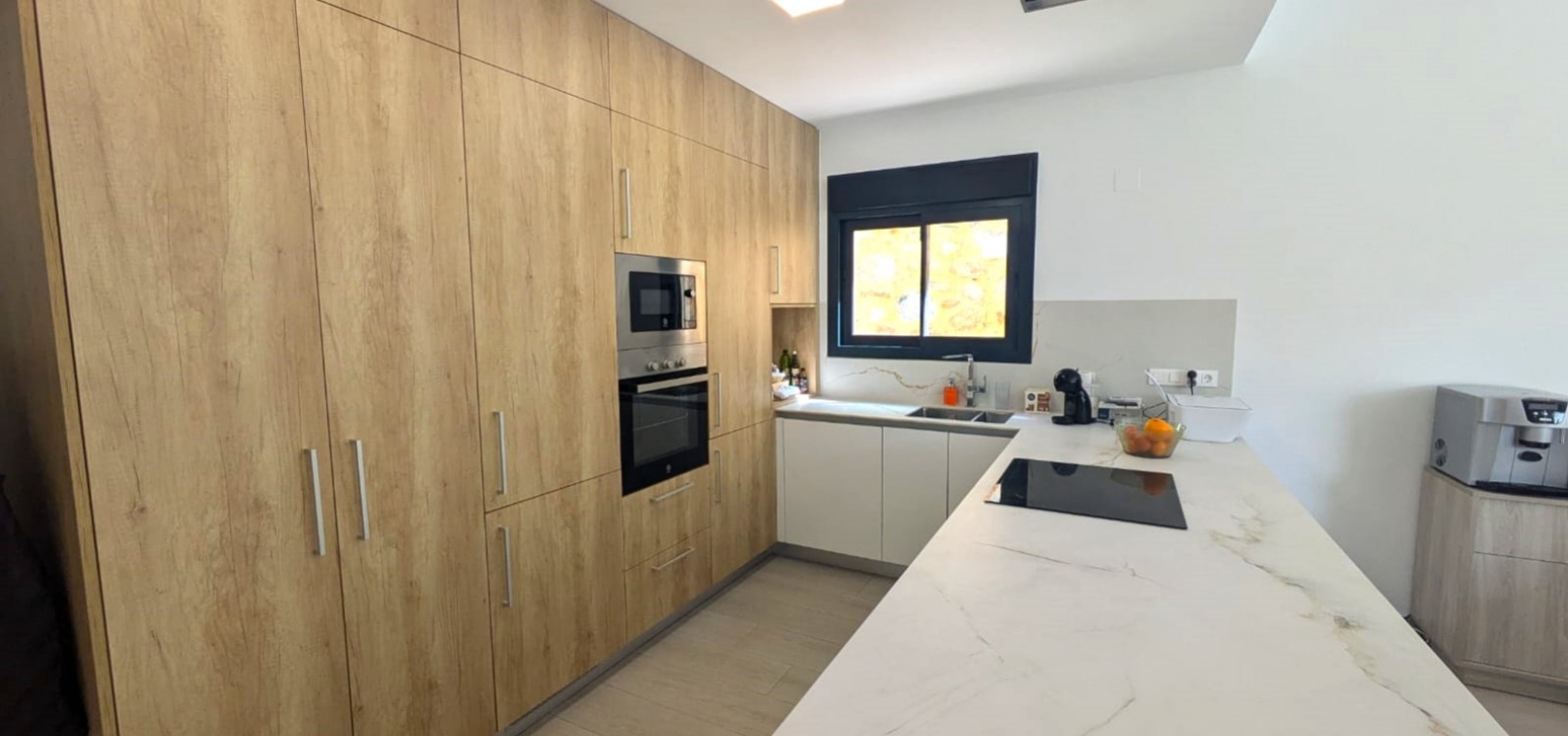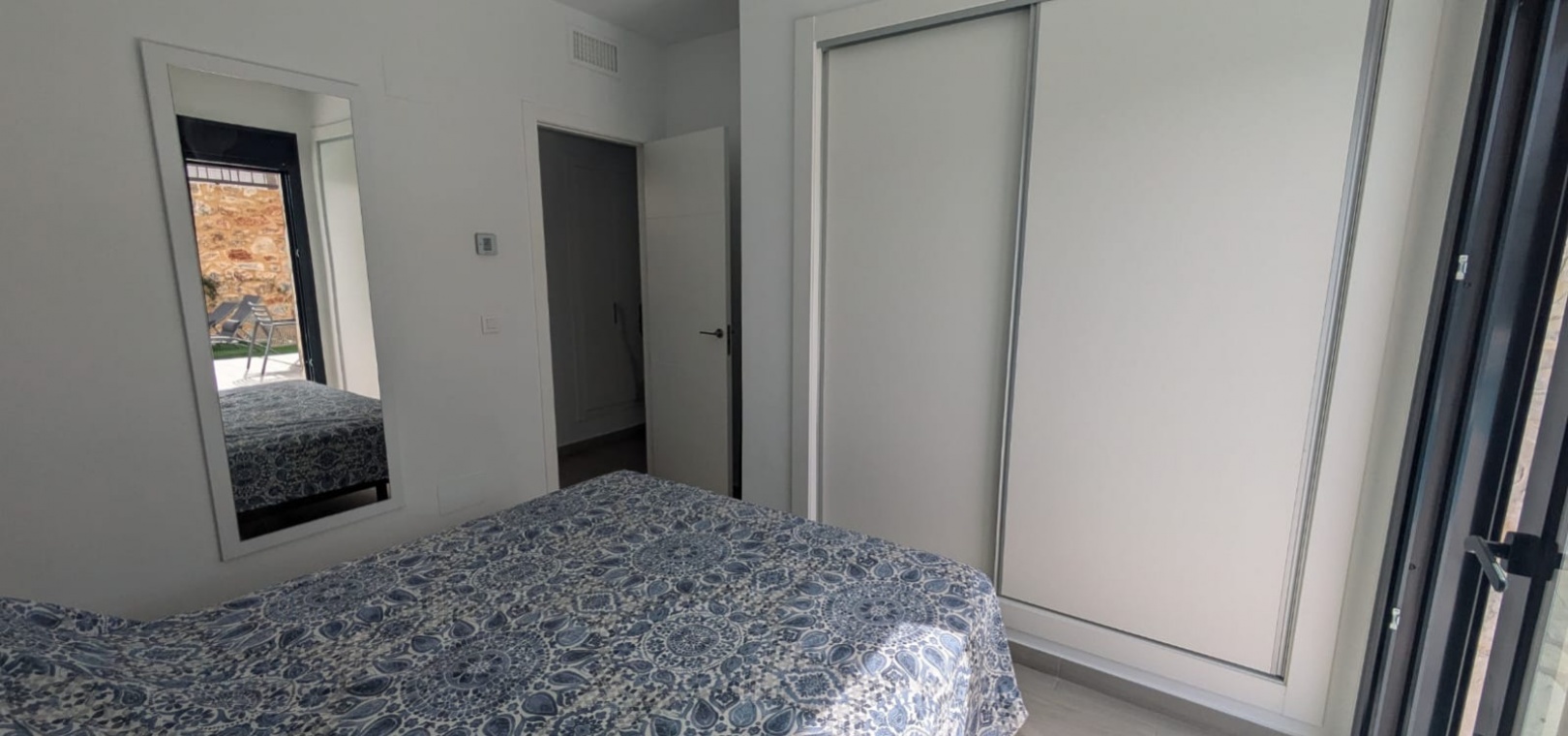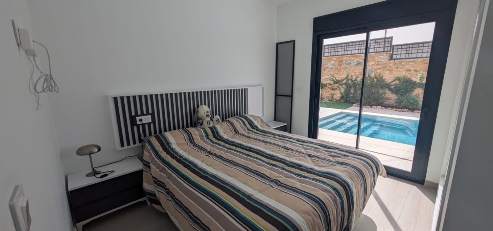 Die geräumige, 120 m² große Villa erstreckt sich über eine Ebene und verfügt über drei Schlafzimmer, zwei Badezimmer (eines davon ensuite), ein geräumiges Wohn-/Esszimmer, eine moderne offene Küche und einen Abstellraum. Ein weiterer Vorteil dieser Immobilie ist der Blick auf den Garten und den Pool von jedem Zimmer der Villa aus.