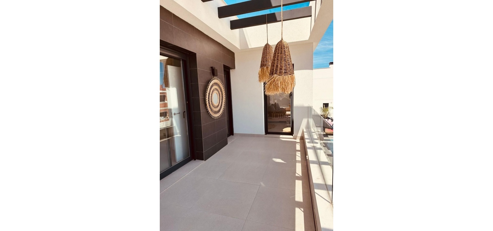 Das Solarium verfügt über ein Sonnendach, das in den heißesten Monaten dringend benötigten Schatten spendet. Von hier aus bietet sich ein weiter Blick auf die Küste und die Berge.