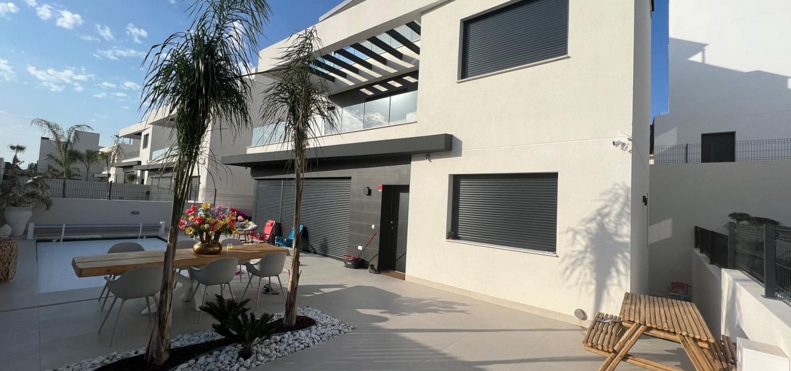 Das Anwesen befindet sich nur wenige Gehminuten von einem lebhaften Geschäftszentrum mit Bars und Restaurants entfernt. Der berühmte Golfplatz La Finca Golf ist nur wenige Autominuten entfernt. La Finca Golf ist ein Luxusresort mit viel Platz zum Wandern und Radfahren in der Umgebung. Es bietet absolute Ruhe und dank der nahegelegenen Dörfer gibt es zahlreiche Möglichkeiten, alle Annehmlichkeiten zu nutzen.