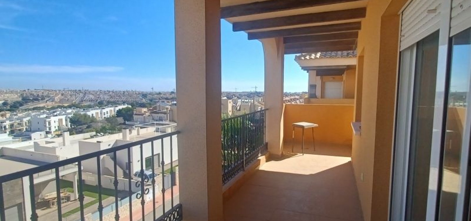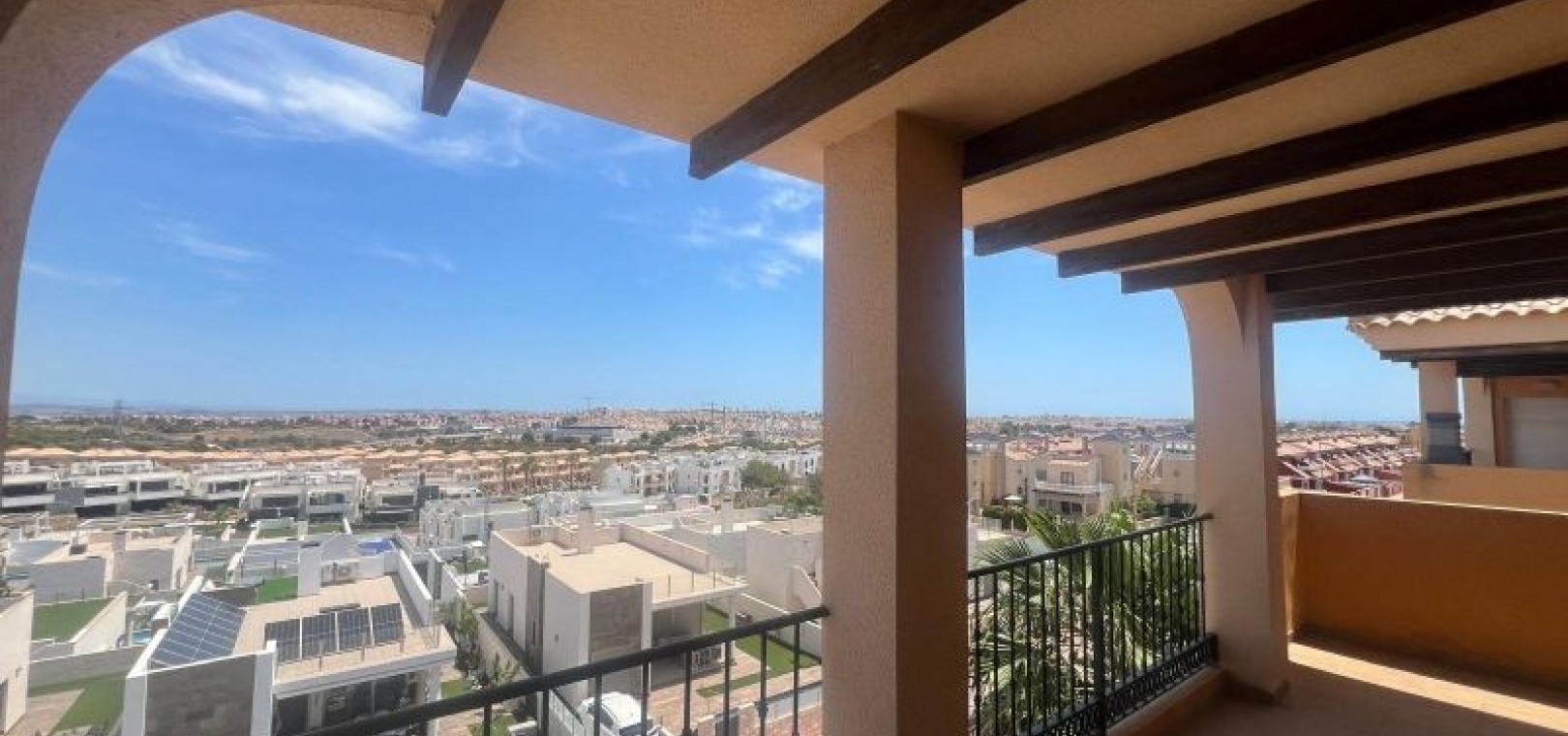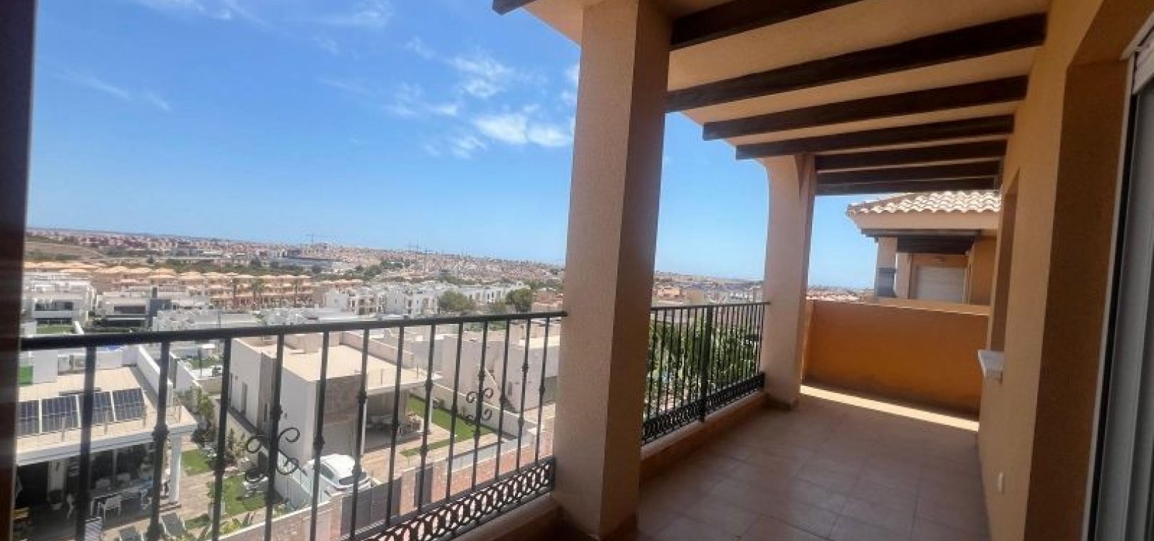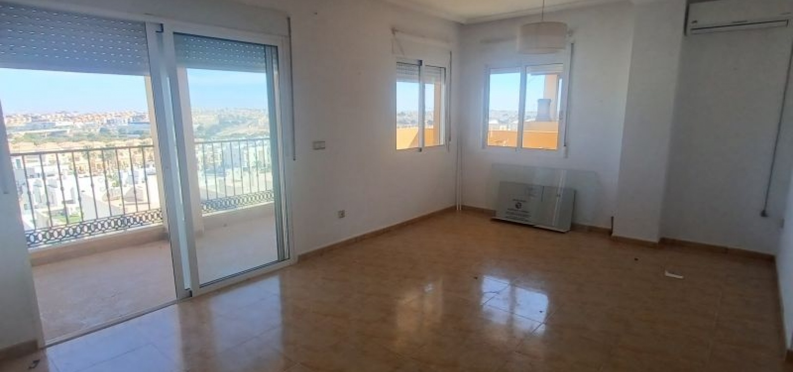 GERÄUMIGES PENTHOUSE MIT TERRASSE UND PRIVATEM SOLARIUM MIT AUSSICHT UND POOL EINFACHE MÖGLICHKEIT ZUR ERWEITERUNG AUF 3 SCHLAFZIMMER Das Hotel liegt in einer ruhigen Wohngegend, neben einer geschützten Grünfläche, 1 km von Dienstleistungen wie Bushaltestelle, Supermärkten wie ALDI, Consum, ..., 2 km vom Golfplatz Villamartin und 5 km von den Stränden von Orihuela Costa, wie Punta Prima, Playa Flamenca, La Zenia, ... entfernt. Das Haus ist ein Penthouse im dritten Stock und verfügt über einen Aufzug. Das geräumige, quadratisch gestaltete Wohnzimmer bietet Zugang zu einer Terrasse mit freiem Blick auf das Meer und die Grünflächen. Es verfügt über ein zusätzliches Zimmer, das leicht in ein drittes Schlafzimmer oder ein separates Arbeitszimmer umgewandelt werden kann. Gemeinschaftspool. Sehr wenig genutzt.