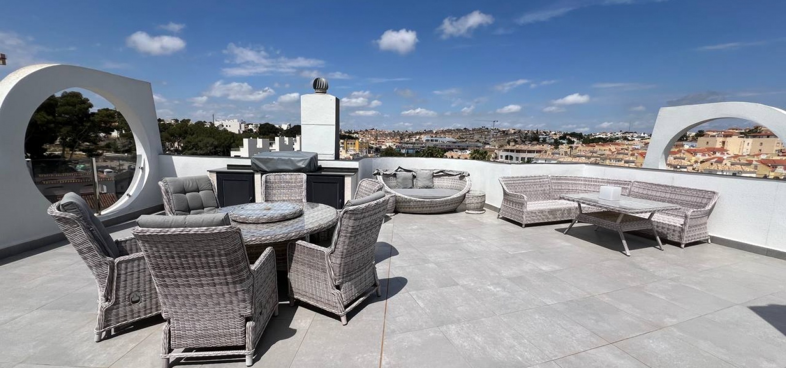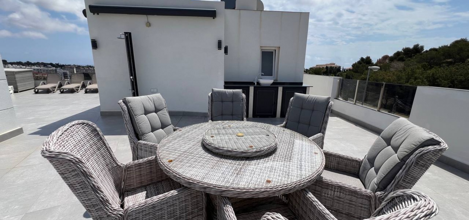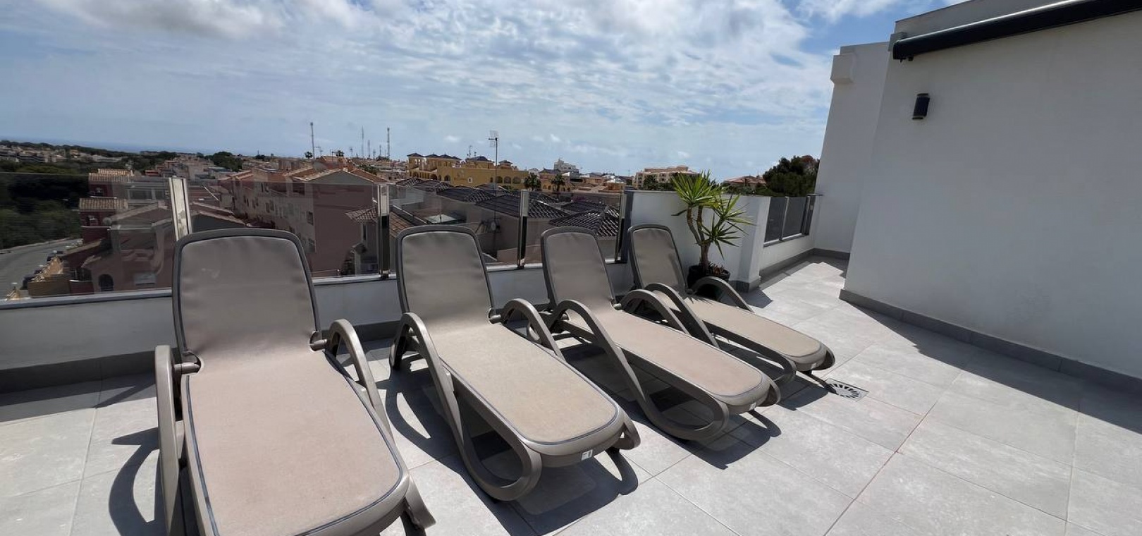Eine Dachgeschosswohnung mit 4 Schlafzimmern und 3 Bädern und einem riesigen privaten Solarium auf dem Dach in Las Filipinas, Villamartin, Costa Blanca.