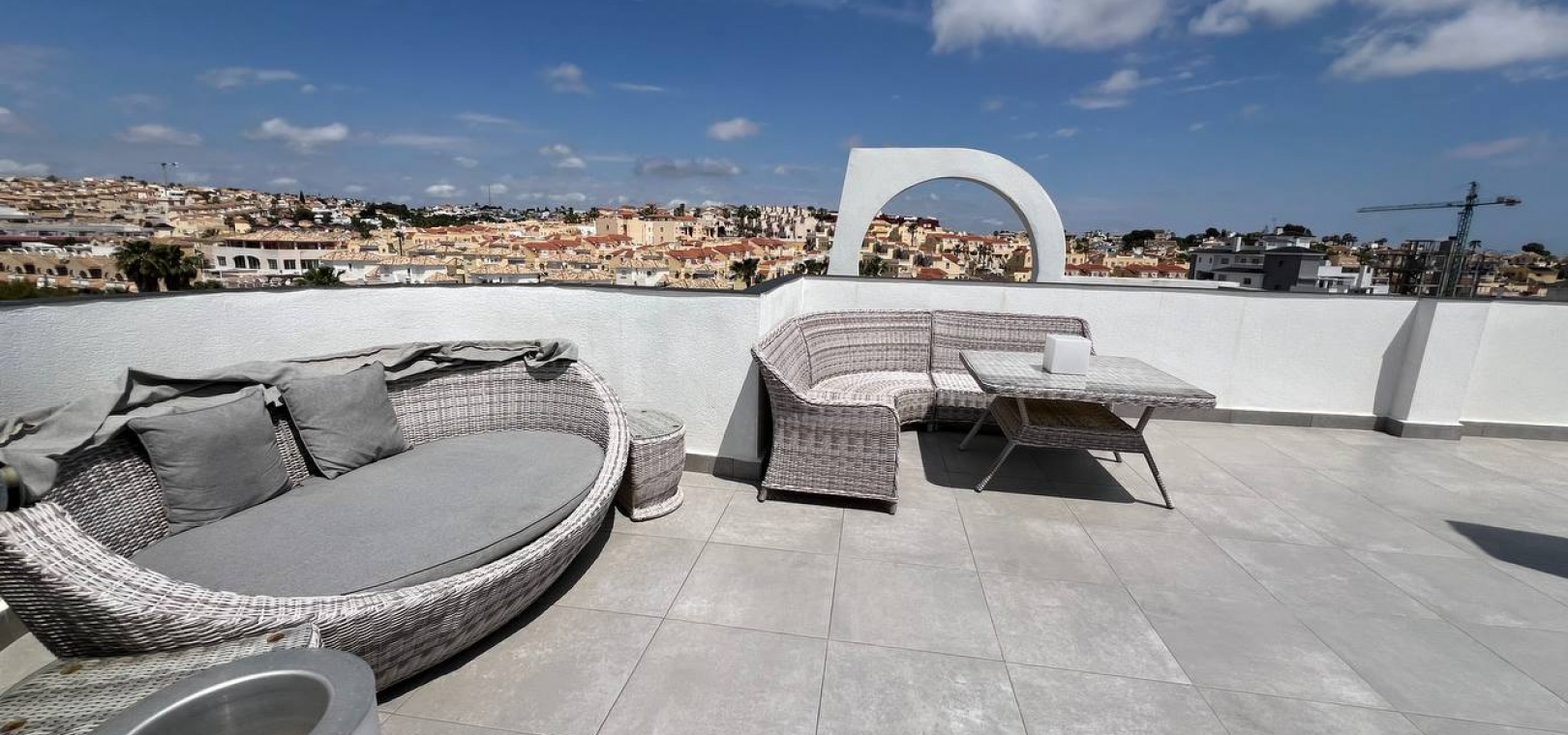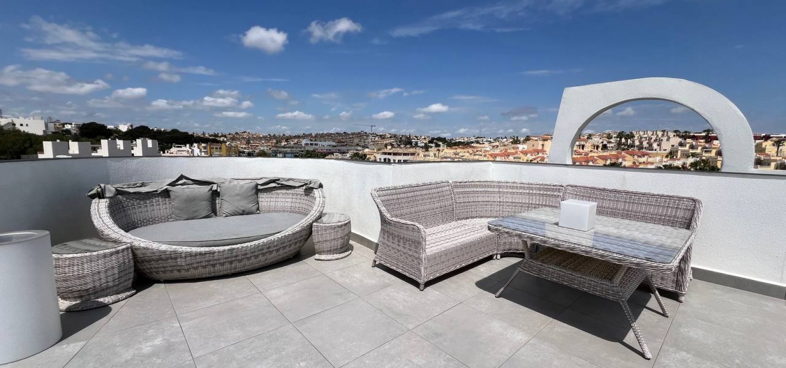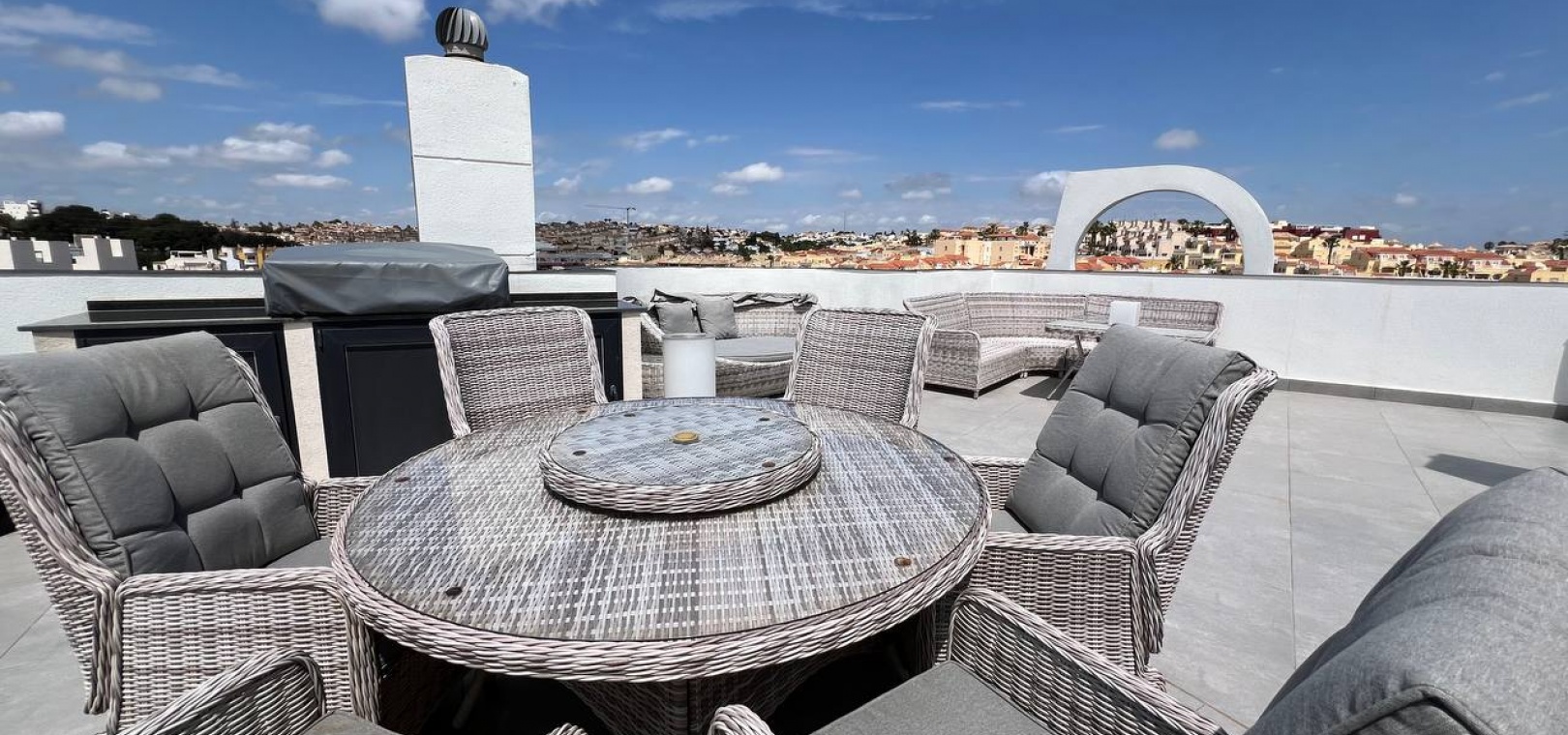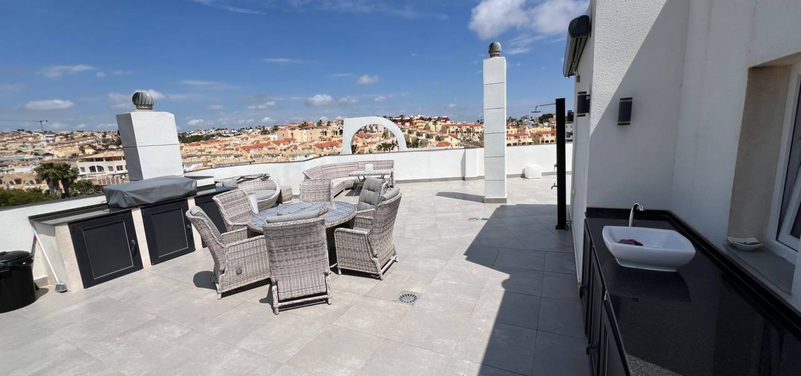 Eine Dachgeschosswohnung mit 4 Schlafzimmern und 3 Bädern und einem riesigen privaten Solarium auf dem Dach in Las Filipinas, Villamartin, Costa Blanca.