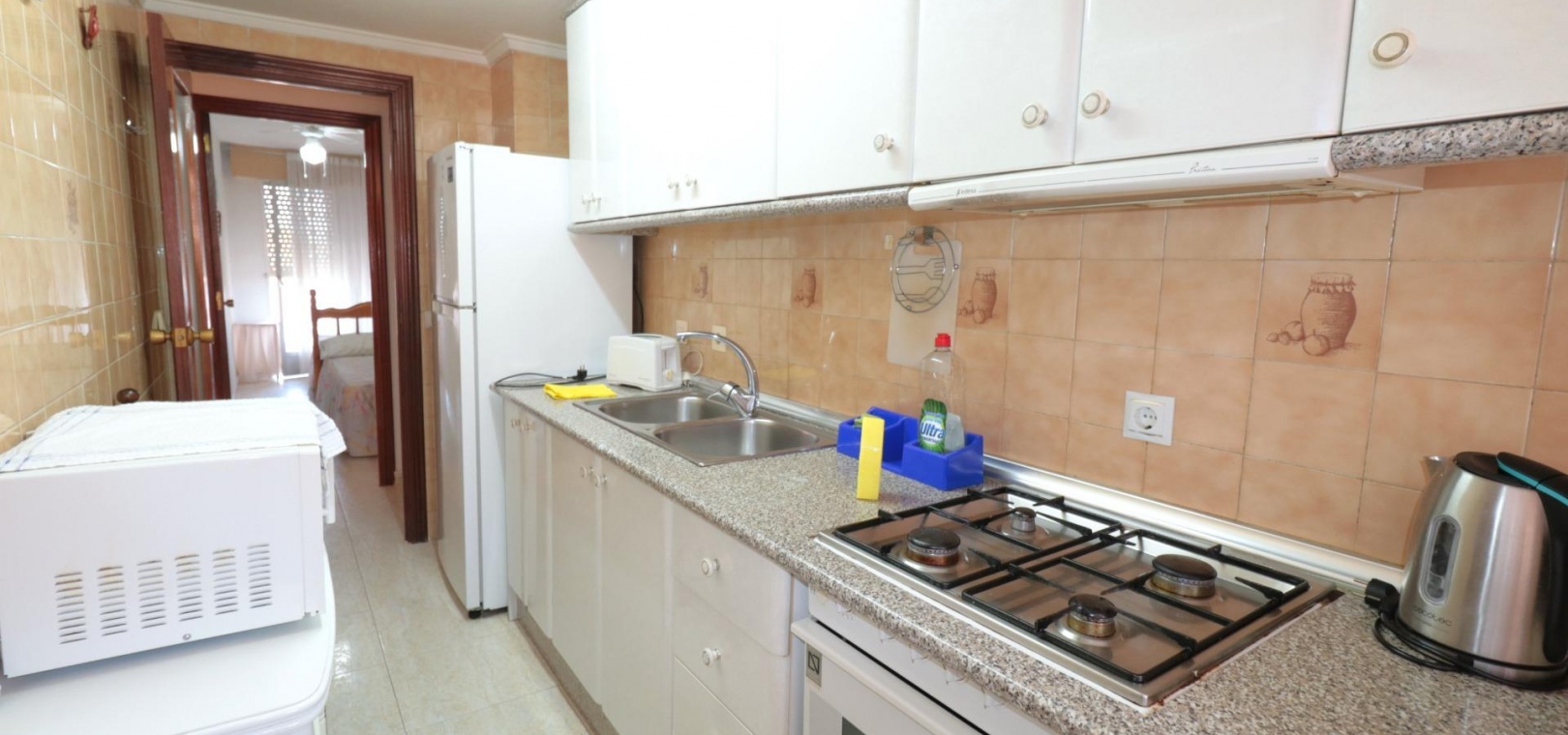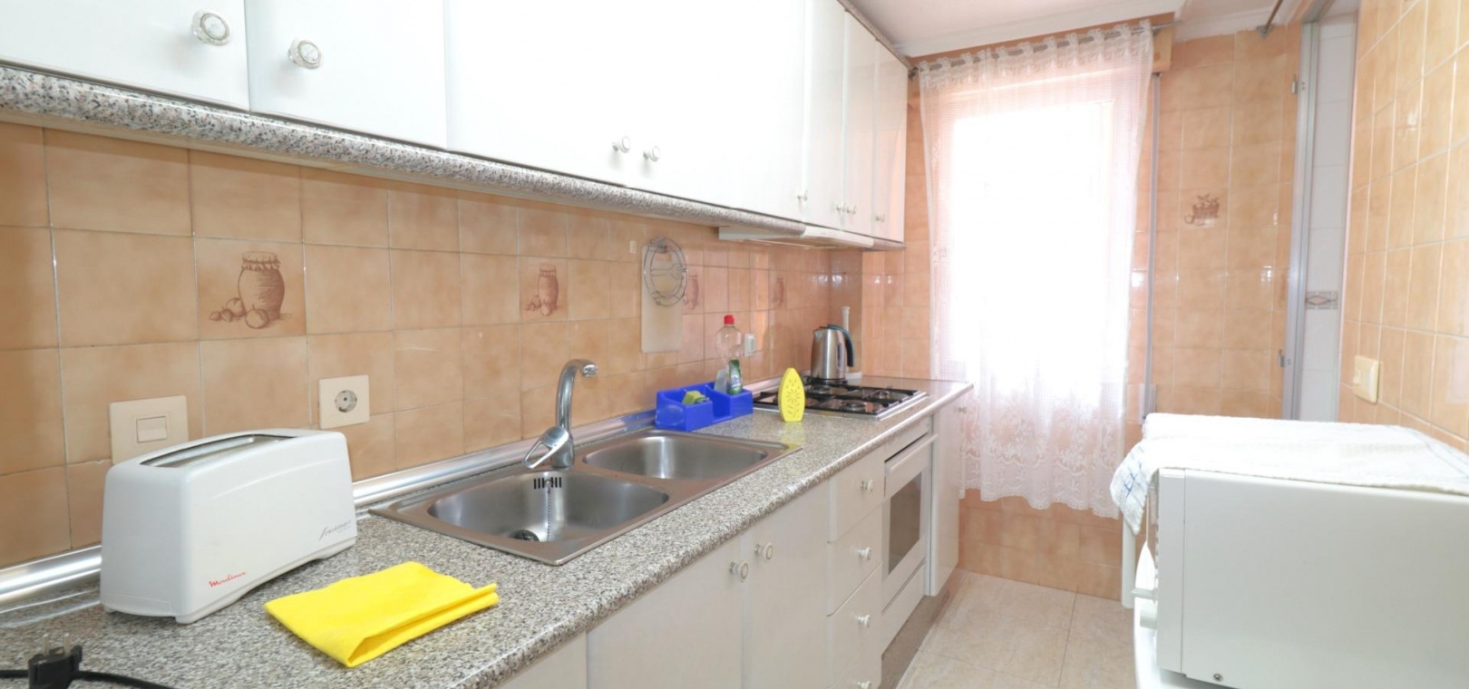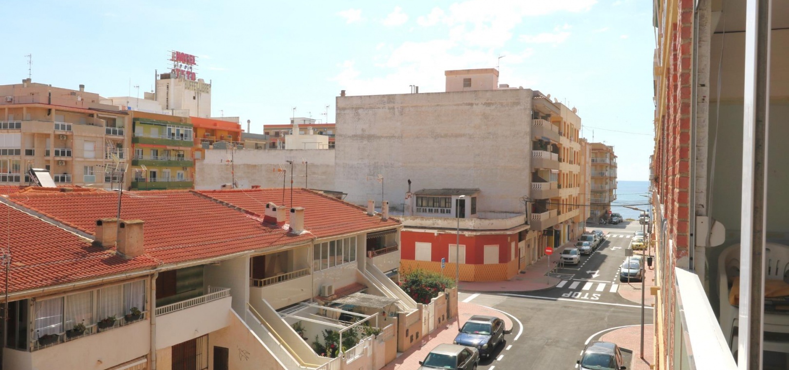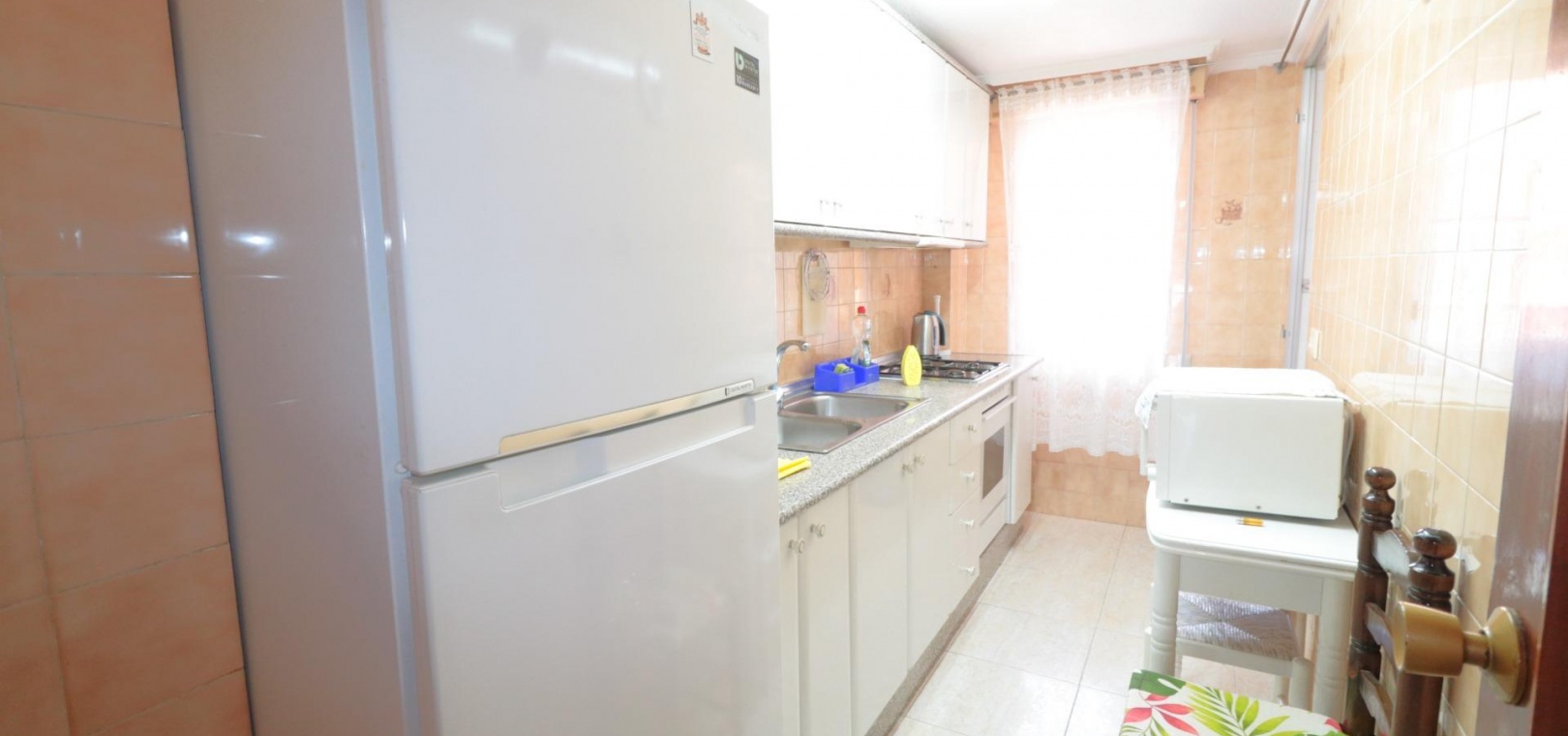In Torrevieja, Playa de los Naufragos, 88 m² Wohnfläche, 10 m² Terrasse, 300 m² vom Strand entfernt, 3 Doppelschlafzimmer, ein Badezimmer, Immobilie in gutem Zustand, ausgestattete Küche, Ostlage. ~ Extras: Behindertengerechter Zugang, Einbauschränke, Aufzug, Balkon, Galerie, Möbel, Gemeinschaftspool, Terrasse, Busse, Einkaufszentren, Küste, Parks, Supermärkte, Urbanisation, Meerblick ~