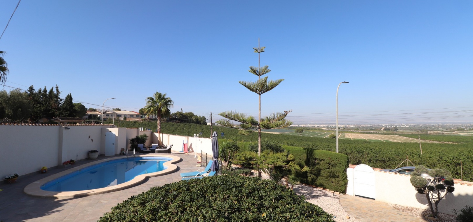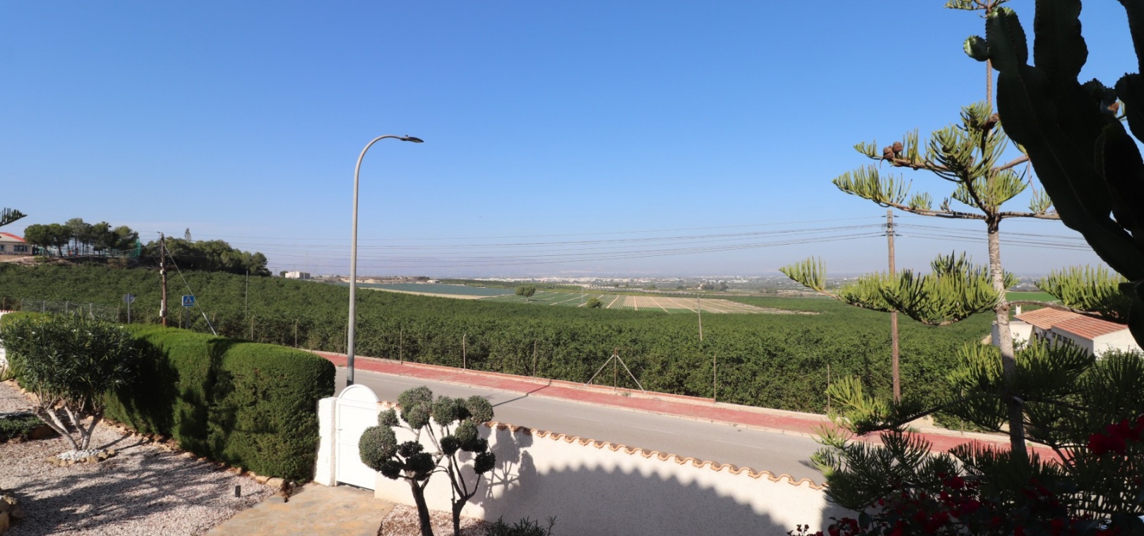 Diese bemerkenswerte freistehende Villa mit fünf Schlafzimmern in Lomas de La Juliana befindet sich in erhöhter und begehrter Lage an der Costa Blanca Süd und bietet luxuriöses Wohnen mit atemberaubendem Panoramablick. Offiziell unter Almoradi, aber näher am charmanten Dorf Algorfa und dem renommierten La Finca Golf, Hotel & Spa Resort , befindet sich diese nach Westen ausgerichtete Eckgrundstücksvilla in idealer Lage, nur wenige Minuten von den wichtigsten Annehmlichkeiten und nur 15 Minuten von den mit der Blauen Flagge ausgezeichneten Stränden von Guardamar del Segura entfernt.
