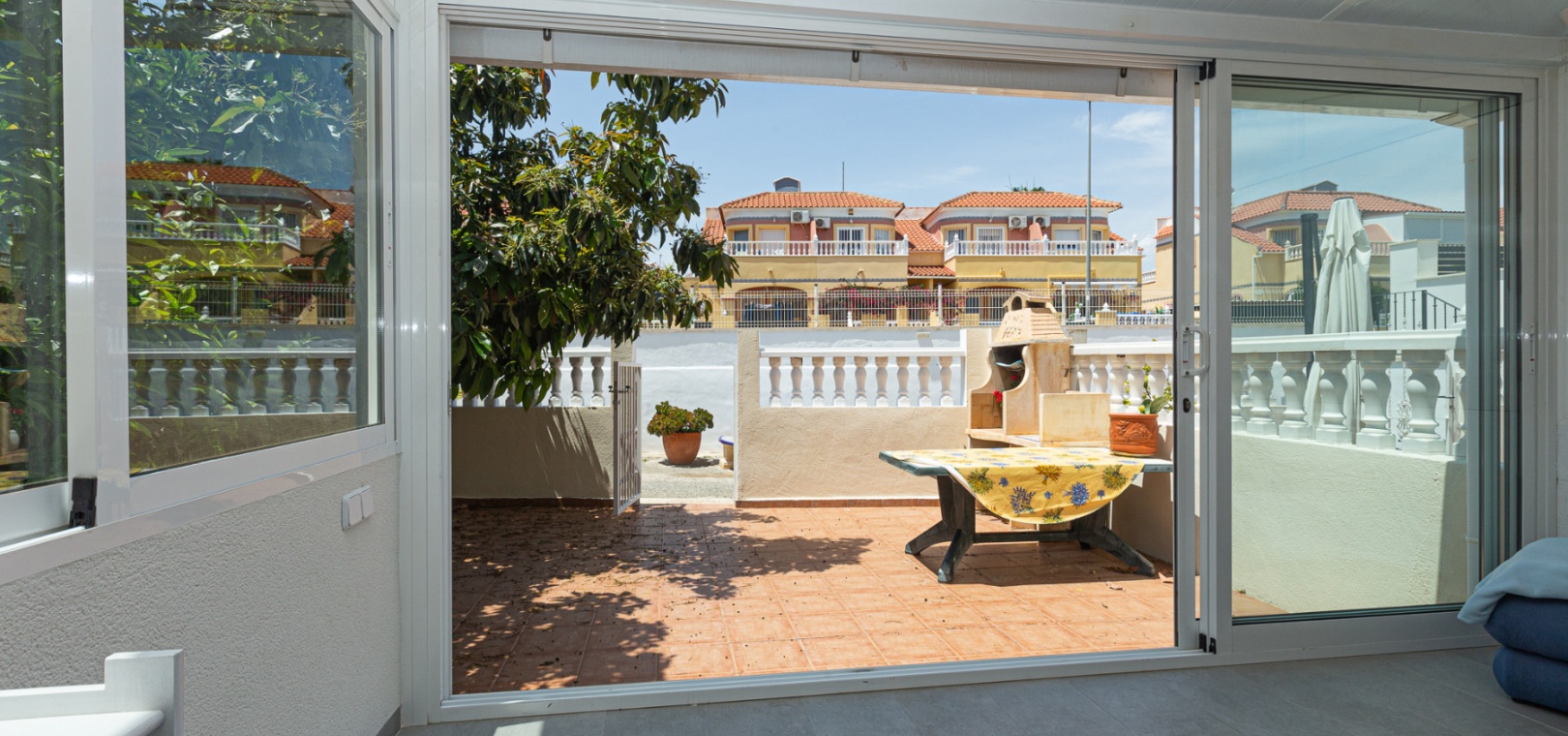 Genießen Sie die Vorteile einer verglasten Terrasse, die zu jeder Jahreszeit komfortabel genutzt werden kann. Das Anwesen verfügt außerdem über einen Vor- und Seitengarten mit Mandarinen- und Avocadobaum, der eine ruhige Oase zum Entspannen oder für gesellige Zusammenkünfte schafft. Ein Abstellraum sorgt für zusätzlichen Komfort.