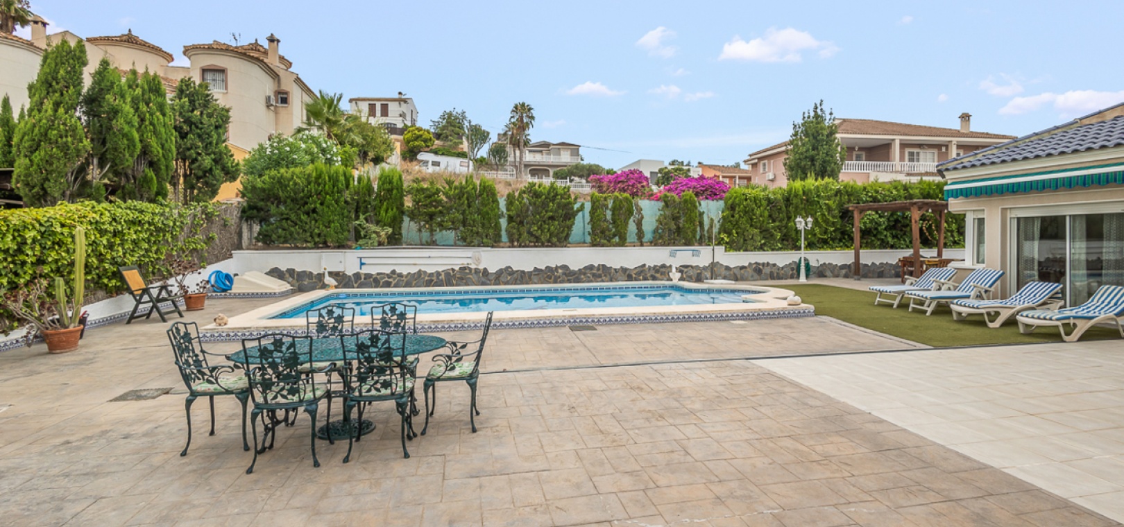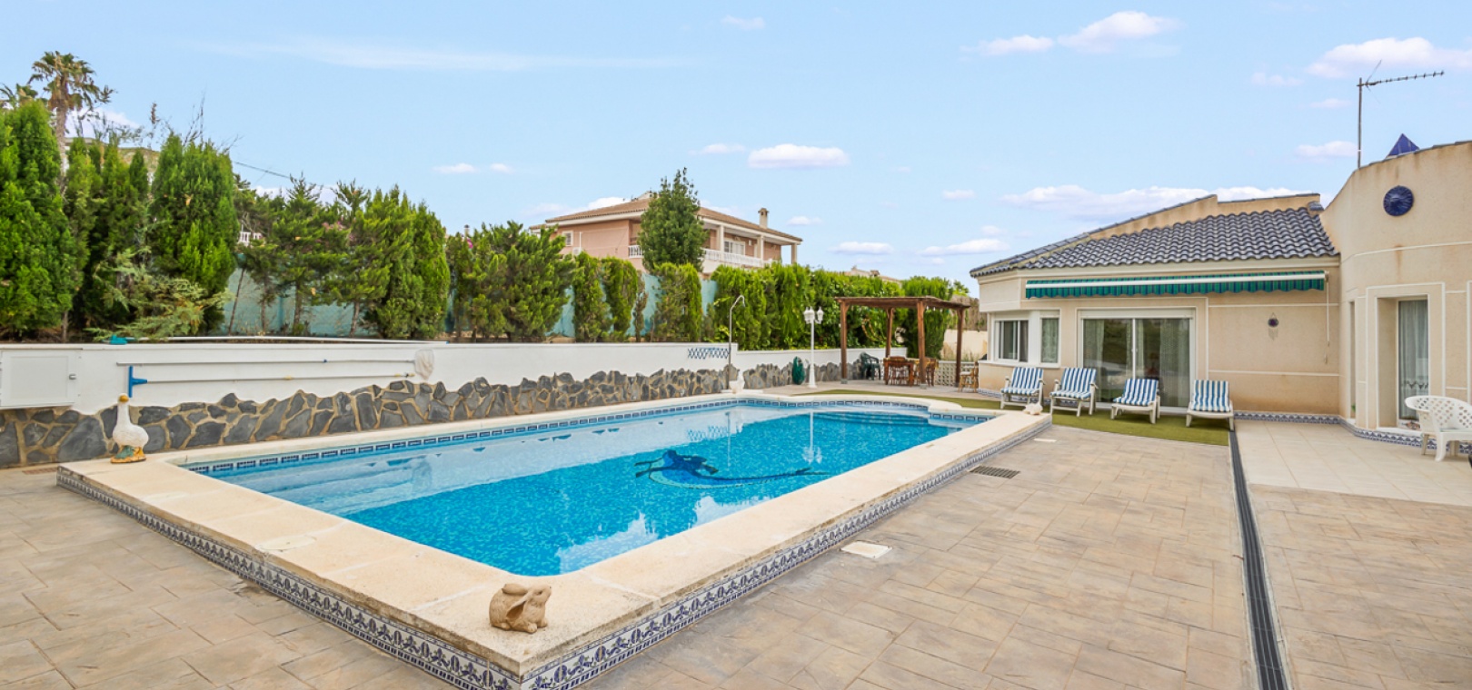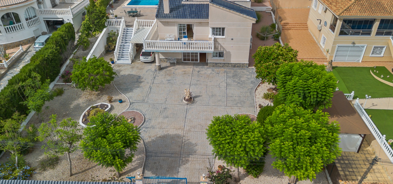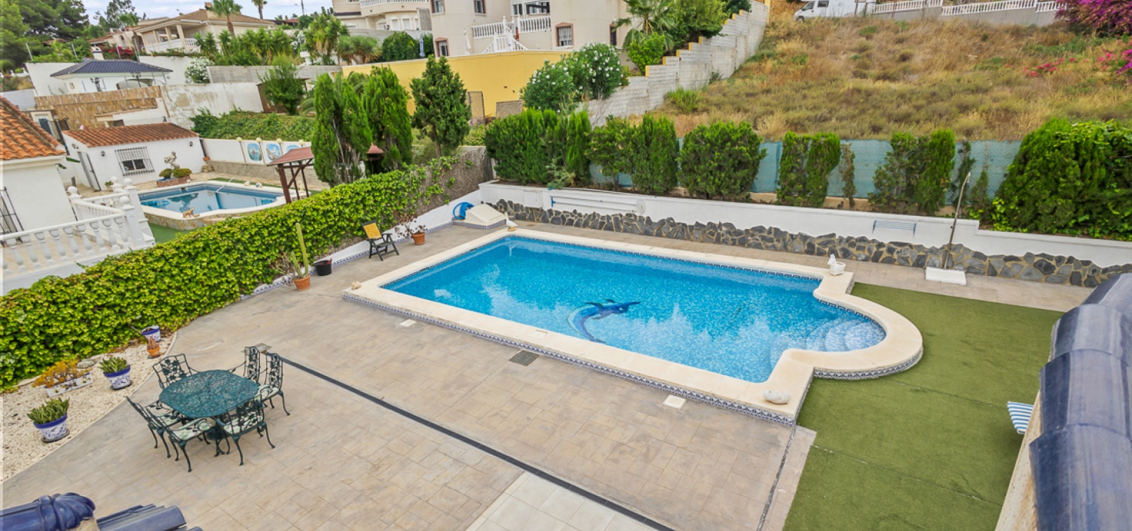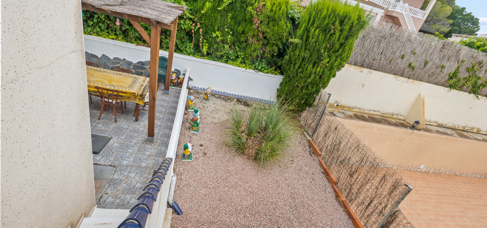 4 geräumige Schlafzimmer (2 auf jeder Ebene) 3 Badezimmer , darunter ein modernes Familienbad Abgeschlossene untere Ebene mit eigenem Wohnbereich, Küchenzeile und zwei Schlafzimmern – ideal für Gäste, die Großfamilie oder zur potenziellen Vermietung Heller und offener Hauptwohnbereich Moderne Küche mit hochwertiger Ausstattung Privater Pool Sonnendurchflutetes Solarium mit Weitblick Pflegeleichter Garten Carport und ausreichend Parkplätze abseits der Straße Klimaanlage, Moskitonetze und Deckenventilatoren in allen Schlafzimmern