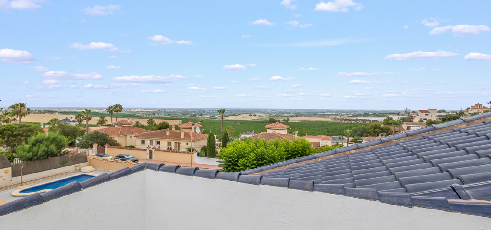 Diese wunderschön gestaltete, freistehende Villa in der renommierten Urbanisation Lomas de La Juliana bietet eine einzigartige Kombination aus Luxus, Platz und einer unschlagbaren Lage. Genießen Sie von Ihrem privaten Solarium aus einen atemberaubenden Panoramablick auf die umliegende Landschaft und die Küste. Der Elite- Tennisclub und das renommierte La Finca Golf Resort sind nur wenige Schritte entfernt.
