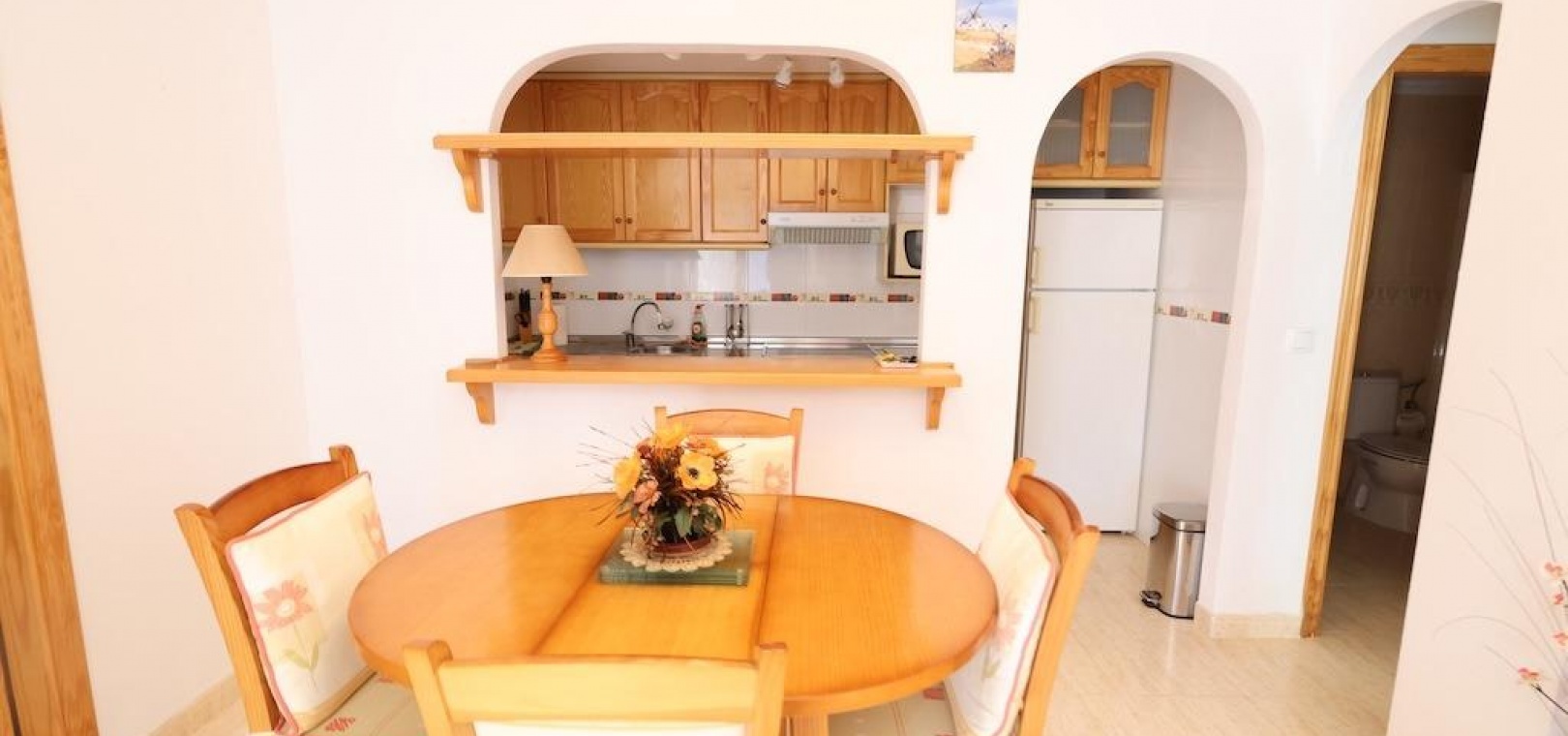 Den Bewohnern steht ein wunderschön gepflegter Gemeinschaftspool inmitten angelegter Gärten zur Verfügung, der eine ruhige Atmosphäre bietet. Dank der idealen Lage in der Nähe von Supermärkten, Restaurants und nur wenige Minuten von den Stränden von Orihuela Costa entfernt eignet sich diese Wohnung ideal als Dauerwohnsitz oder Feriendomizil.
