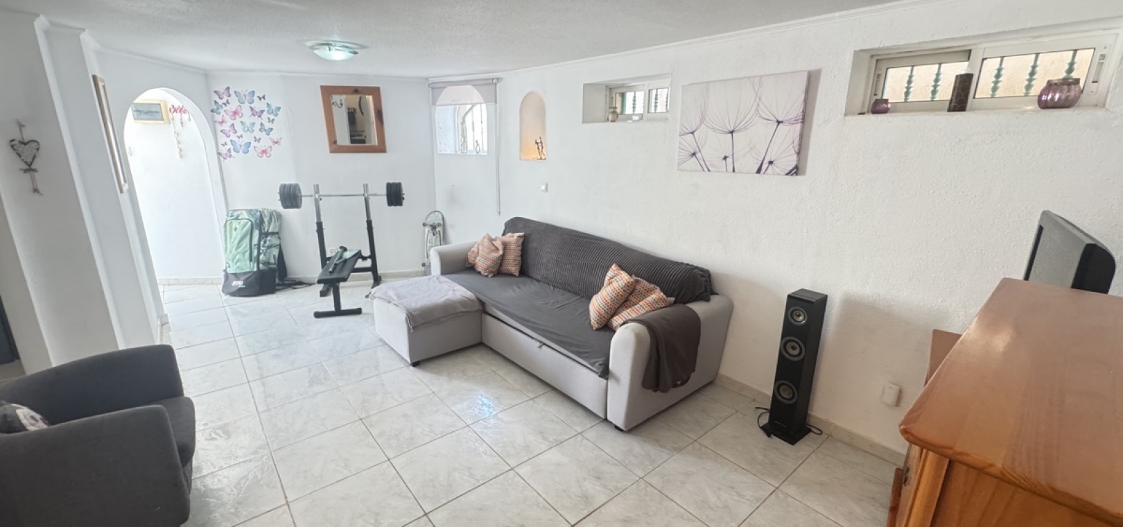 Entdecken Sie die perfekte Mischung aus Komfort und Vielseitigkeit in dieser freistehenden Villa mit 4 Schlafzimmern und 2 Badezimmern im begehrten Viertel El Galan von Villamartin.
