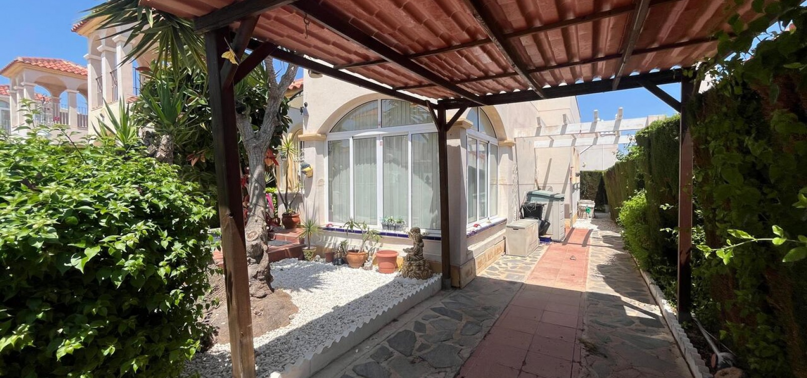 Diese wunderschön gestaltete, freistehende Villa mit 3 Schlafzimmern und 2 Bädern liegt in der äußerst begehrten Urbanisation Lo Crispin und bietet die perfekte Kombination aus Komfort, Platz und Bequemlichkeit – alles auf einer Ebene.
